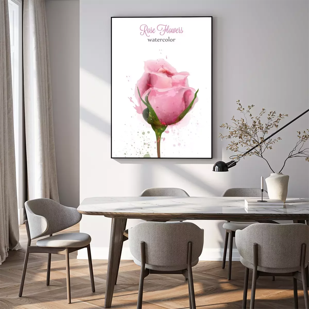 Poster : Rose aquarelle éclaboussée d'éclaboussures de peinture