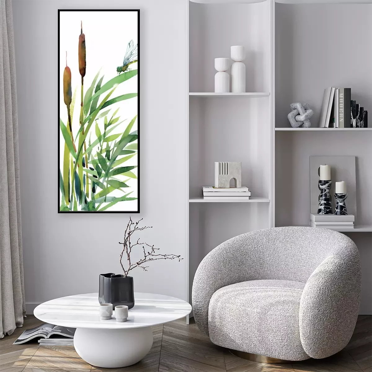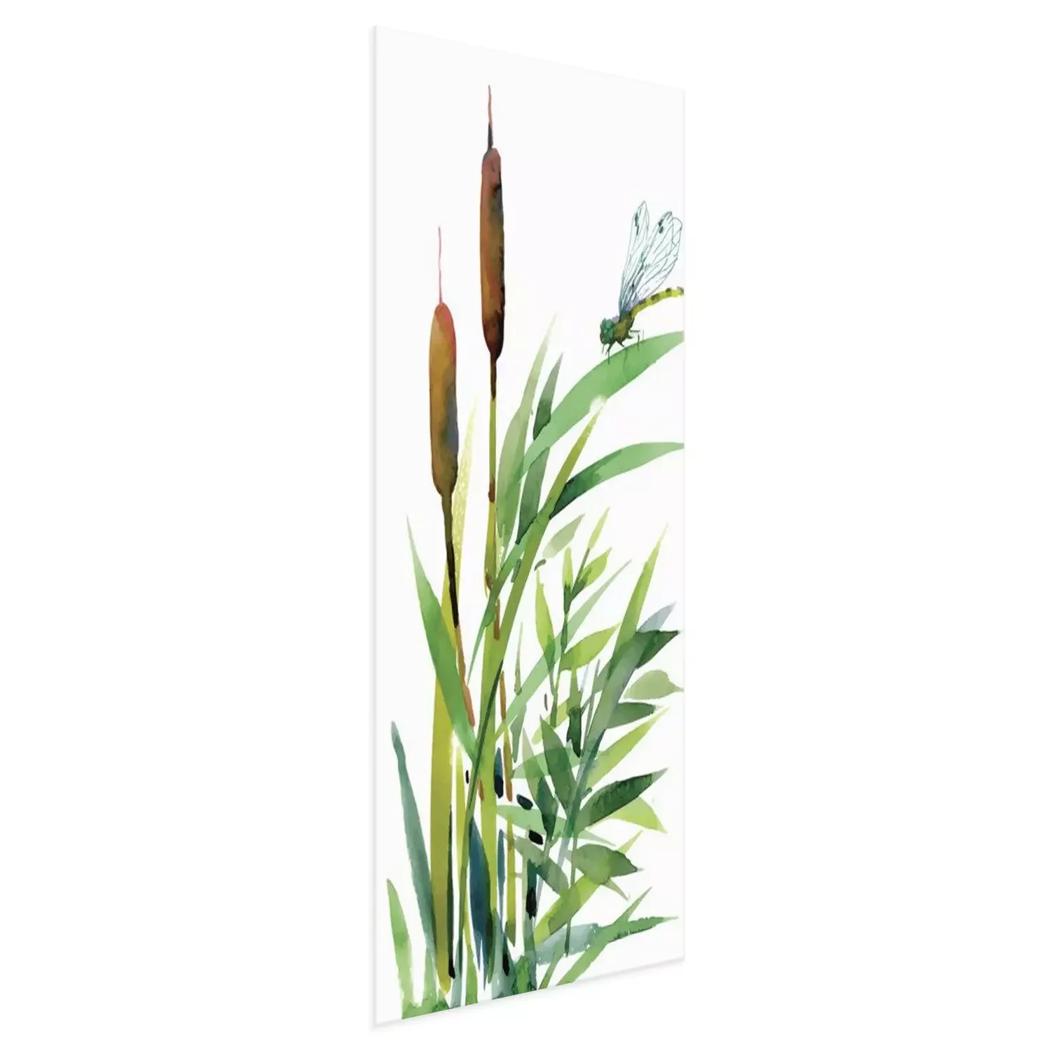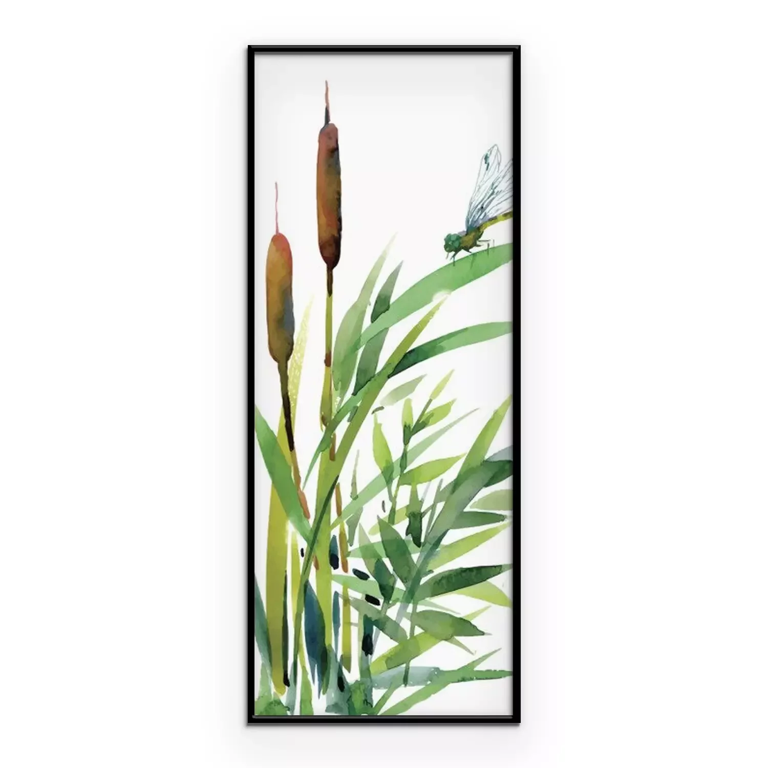 Poster  Roseaux Aquarelle avec des feuilles closeup, isolé, blanc