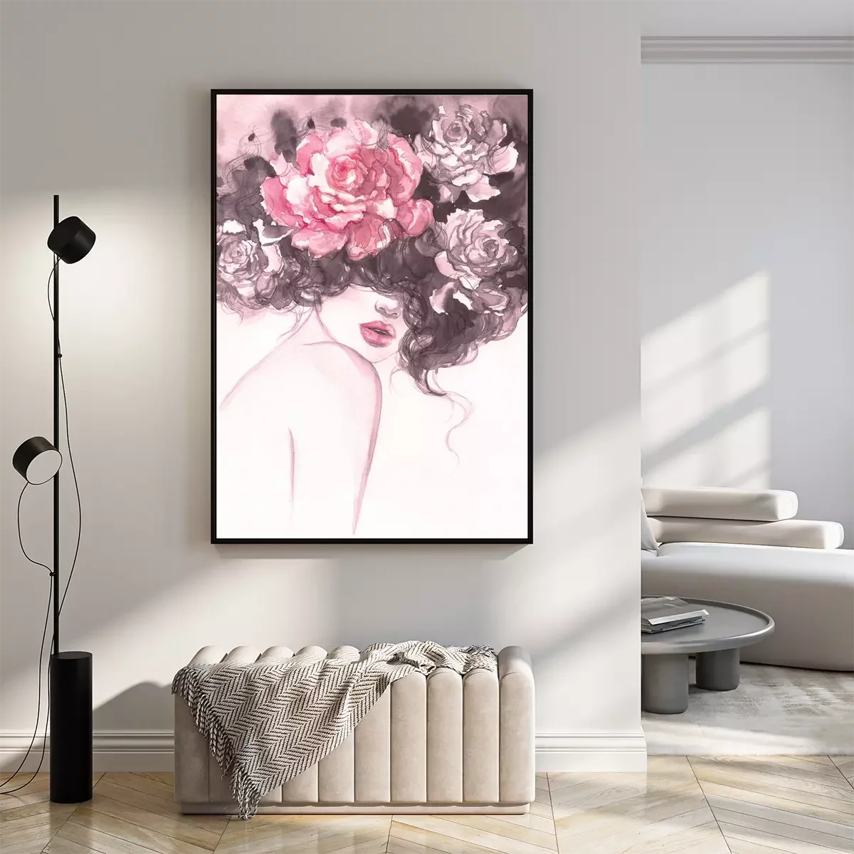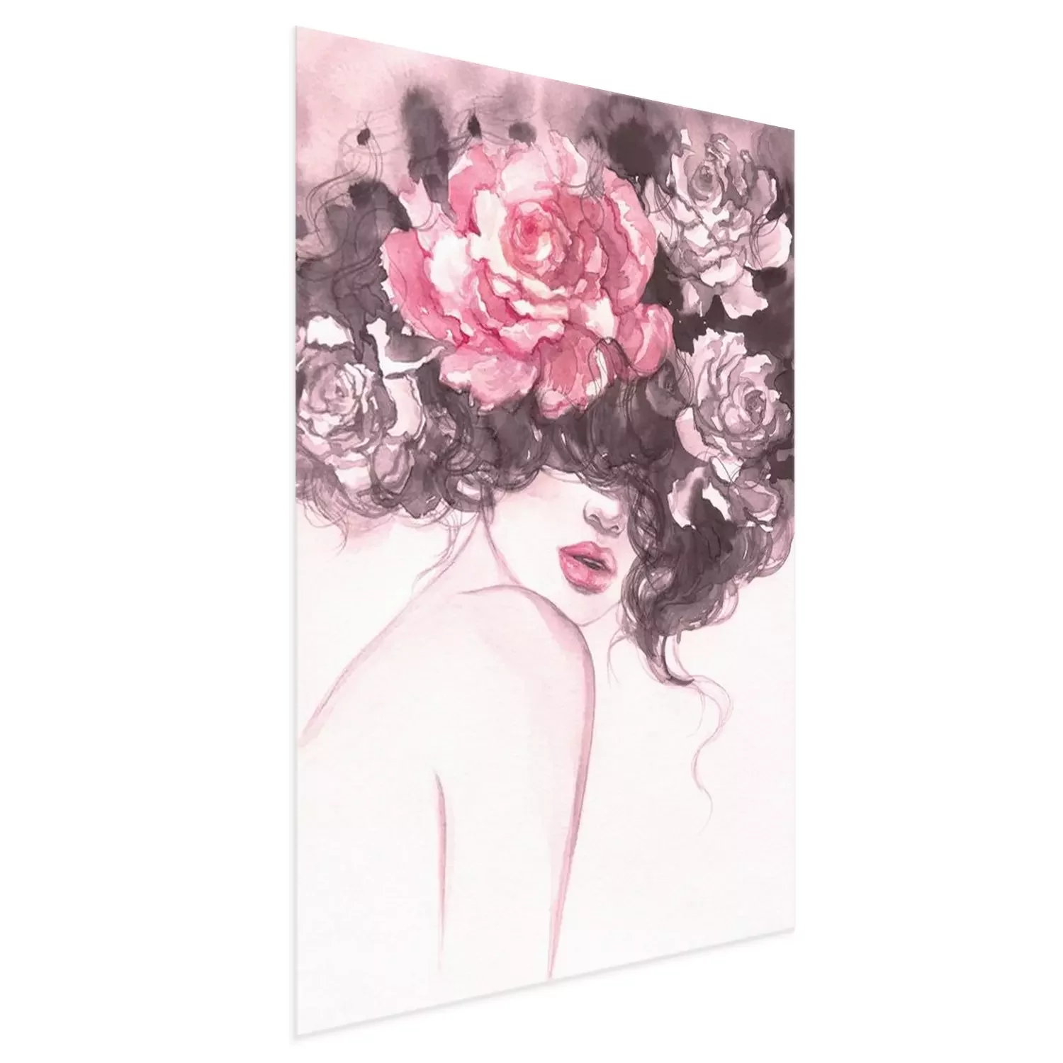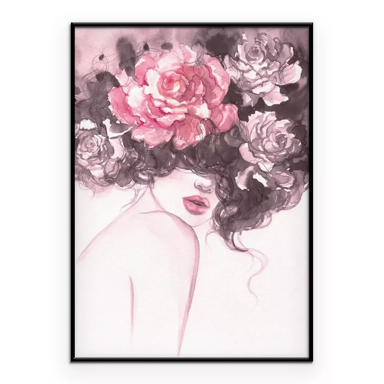 Poster  Roses aquarelles sensuelles dans les cheveux