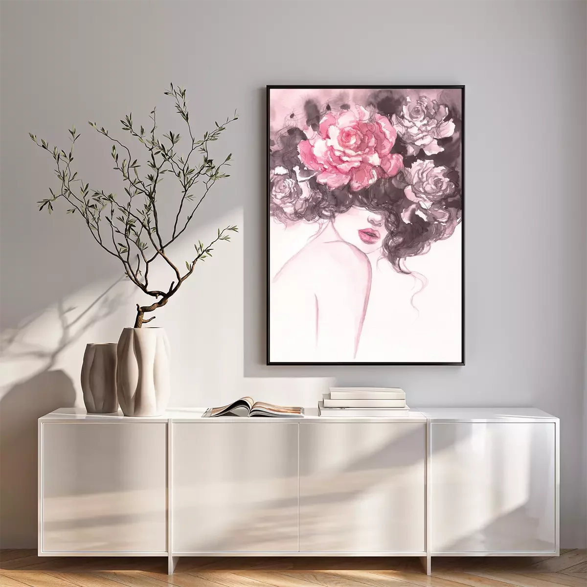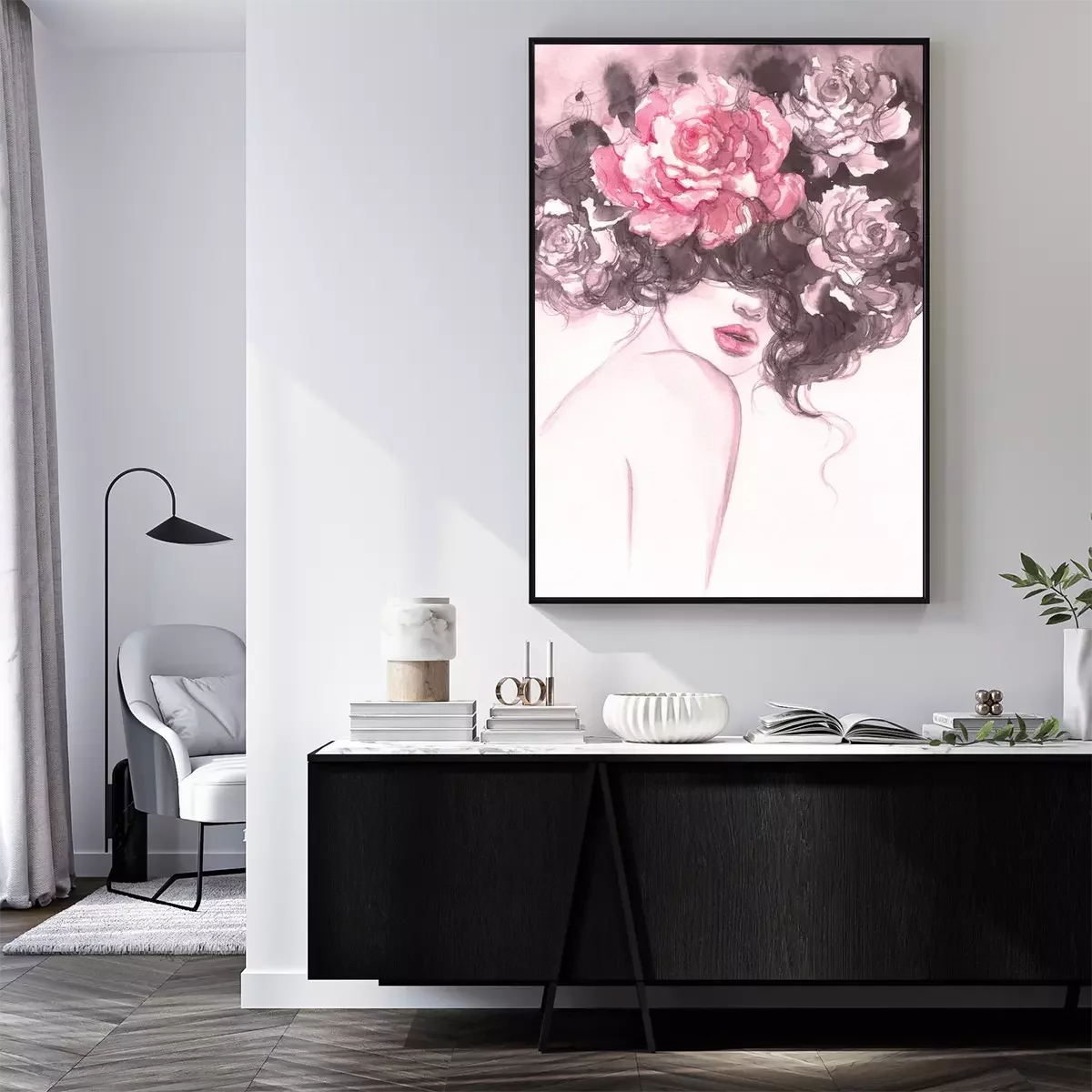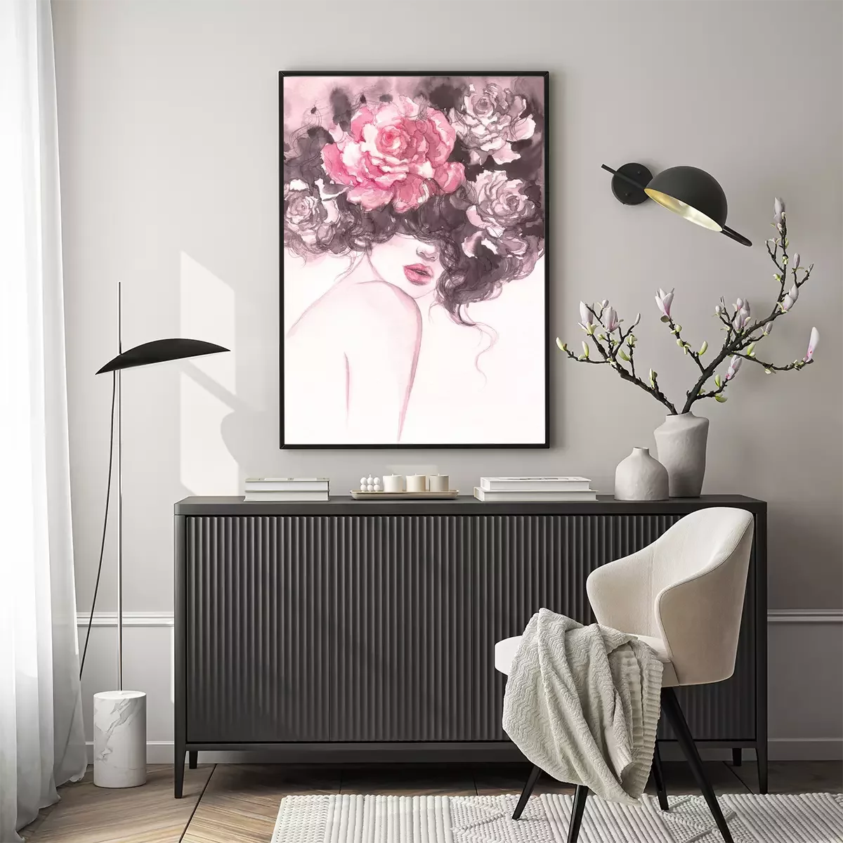 Poster  Roses aquarelles sensuelles dans les cheveux
