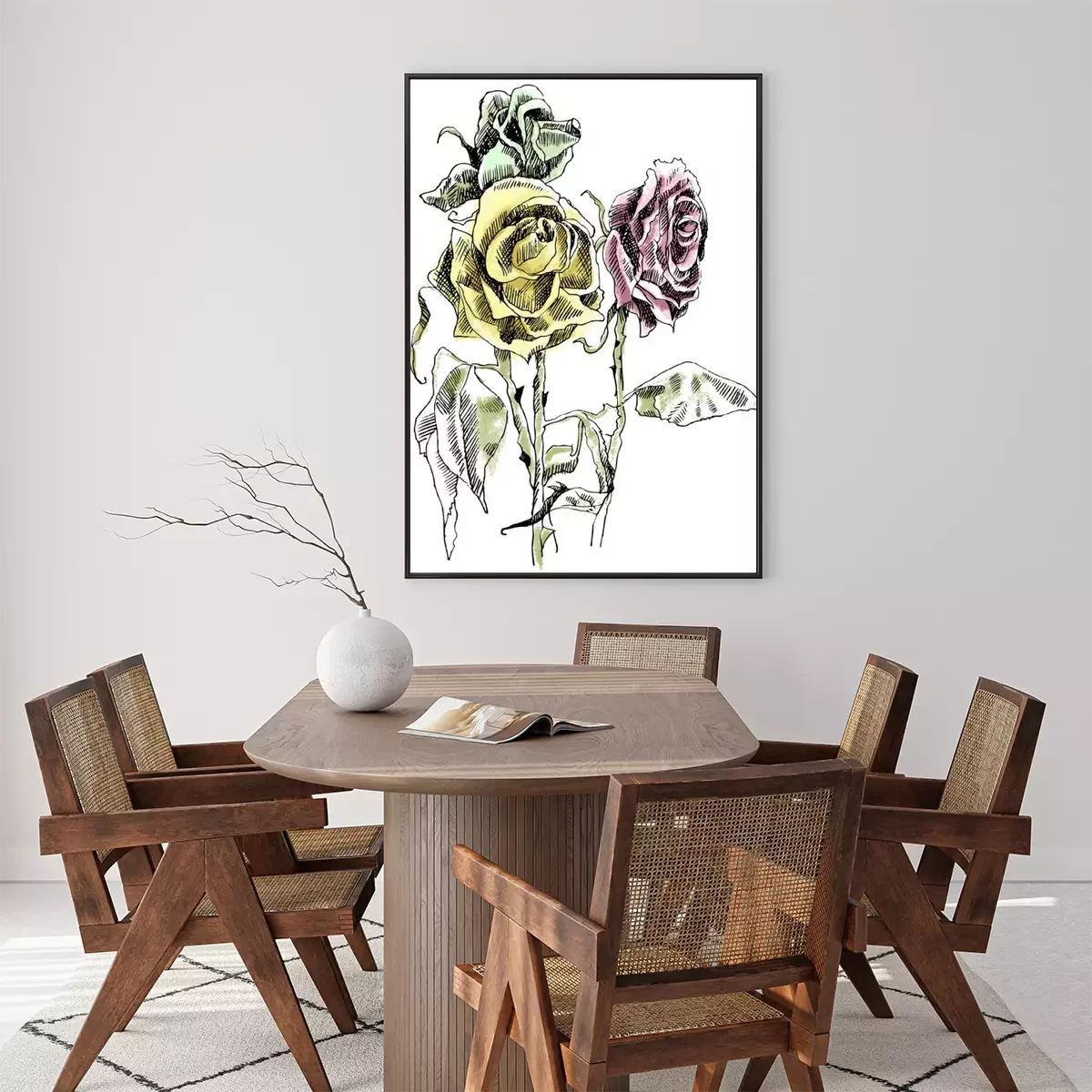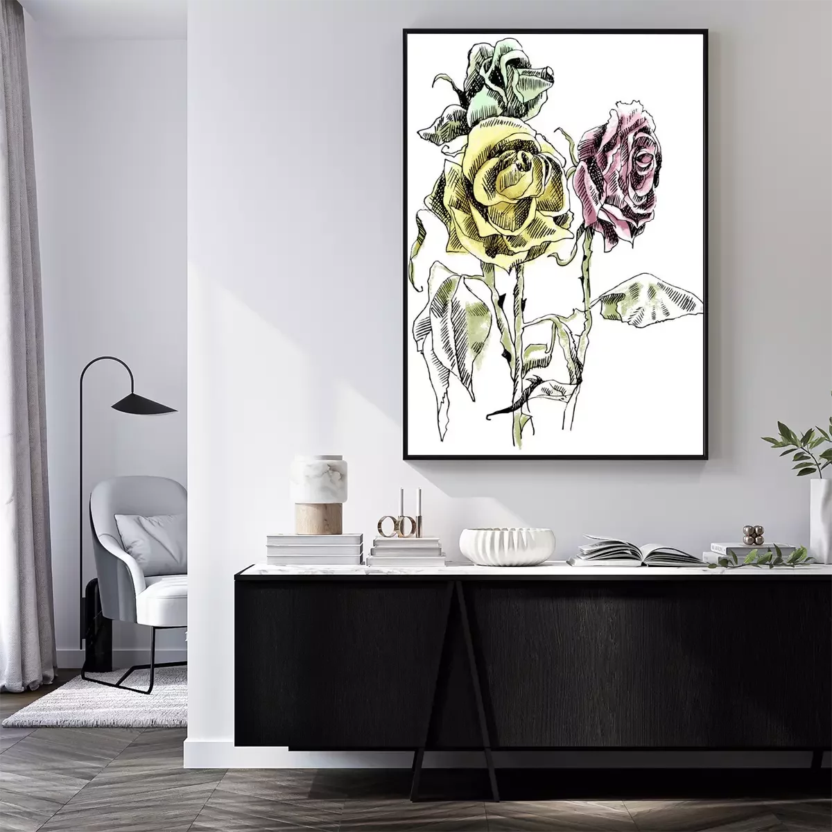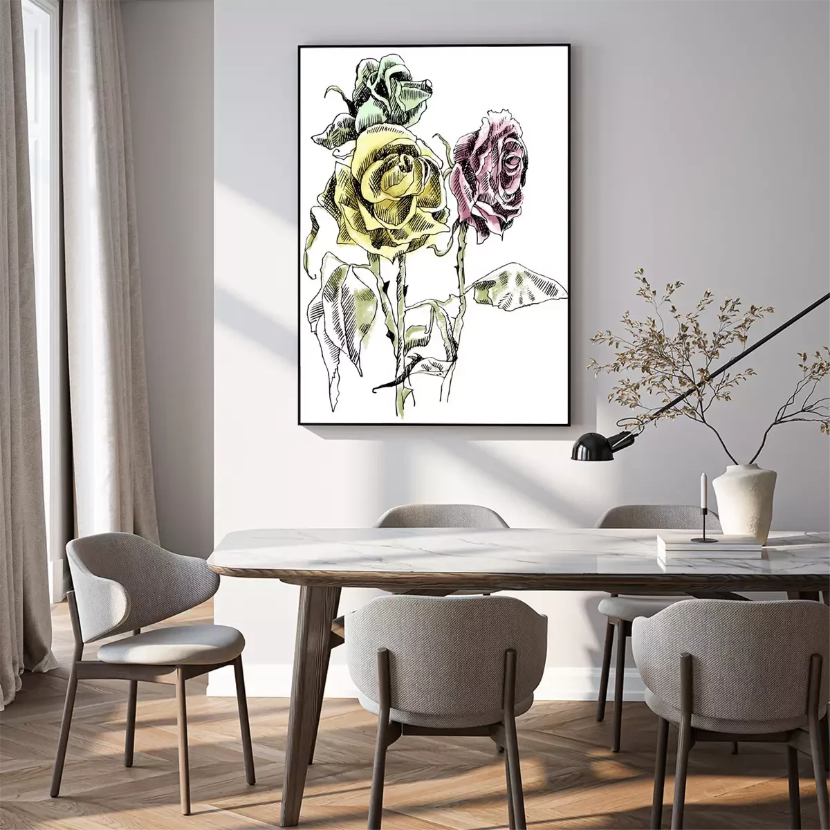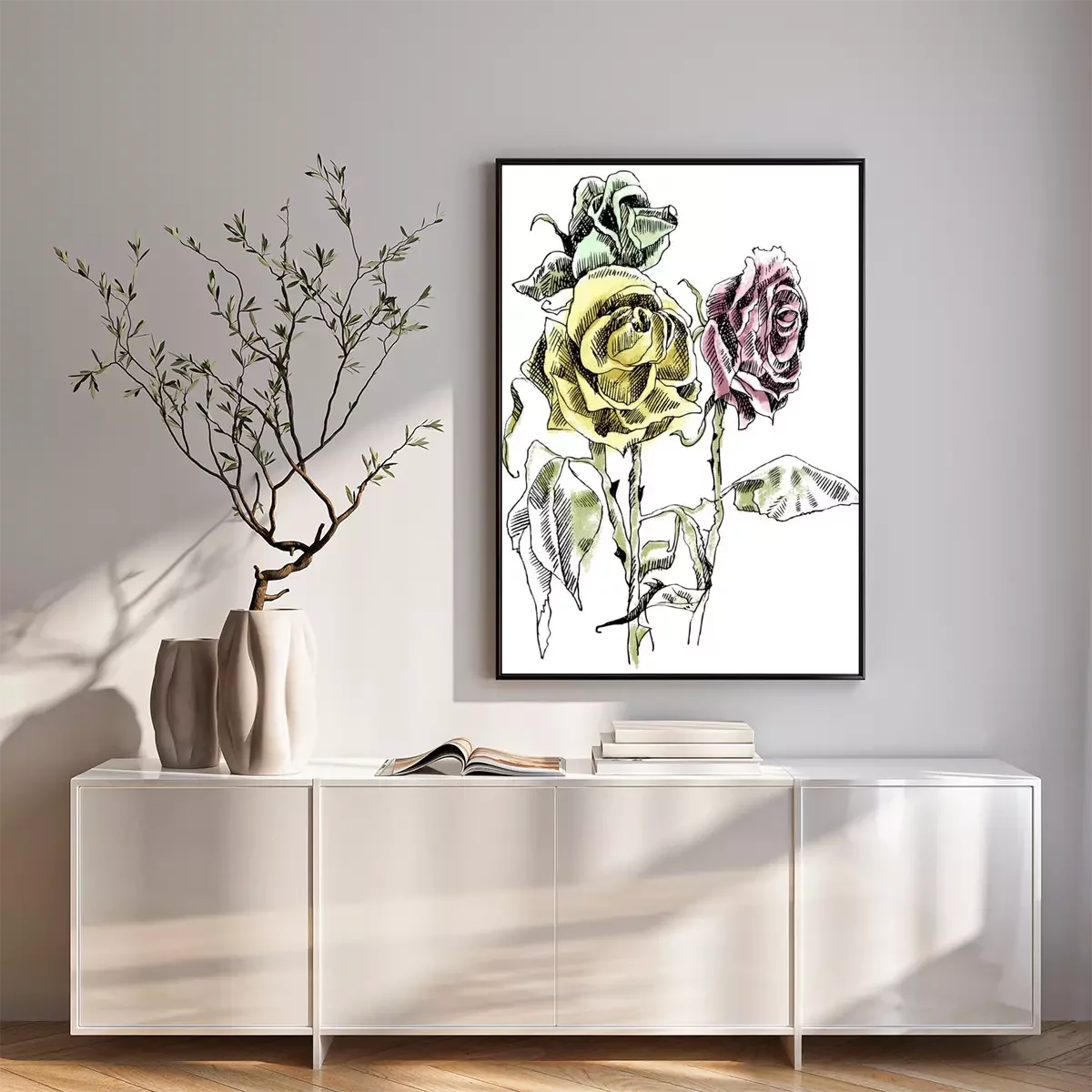 Poster : Roses d'art en ligne avec des bourgeons tombés