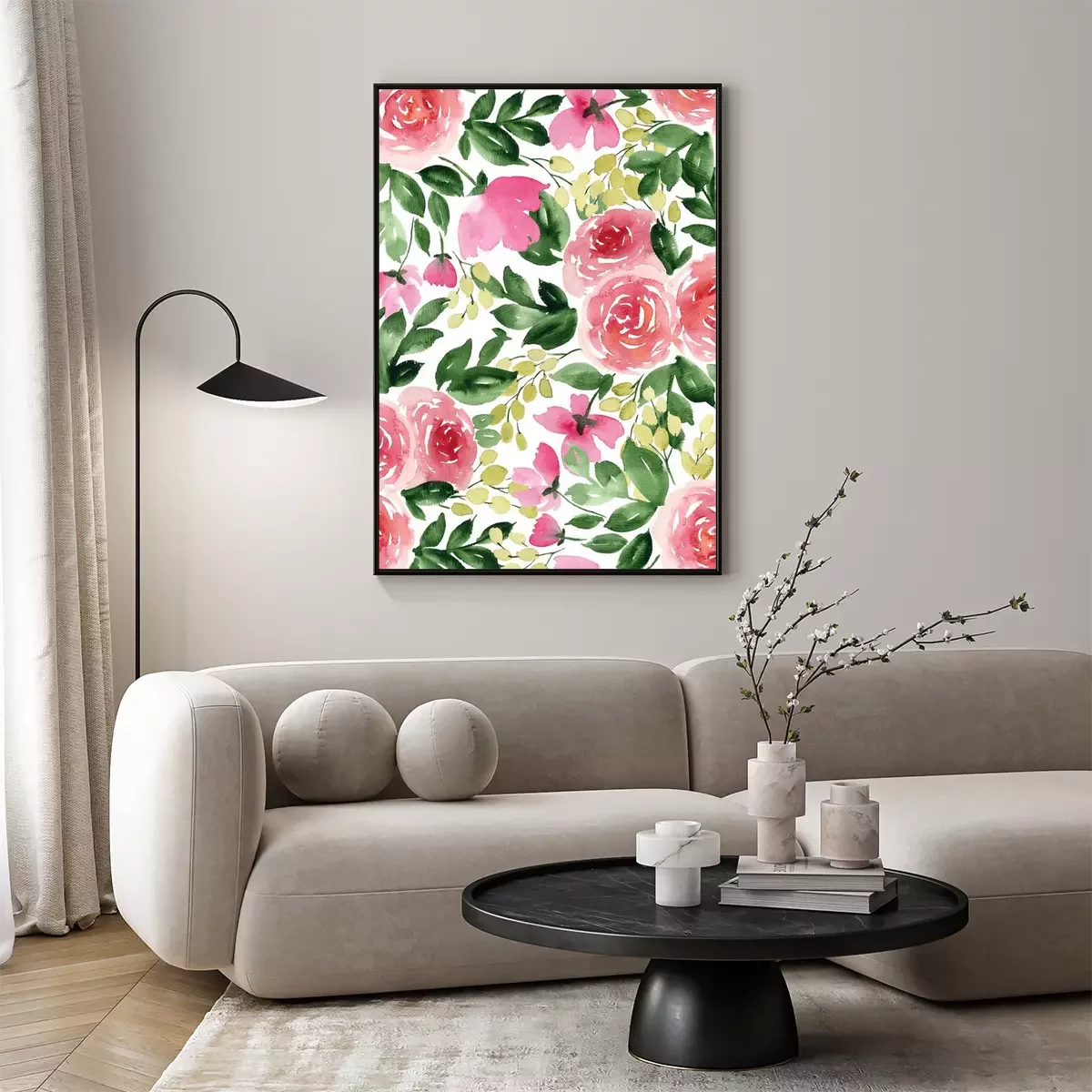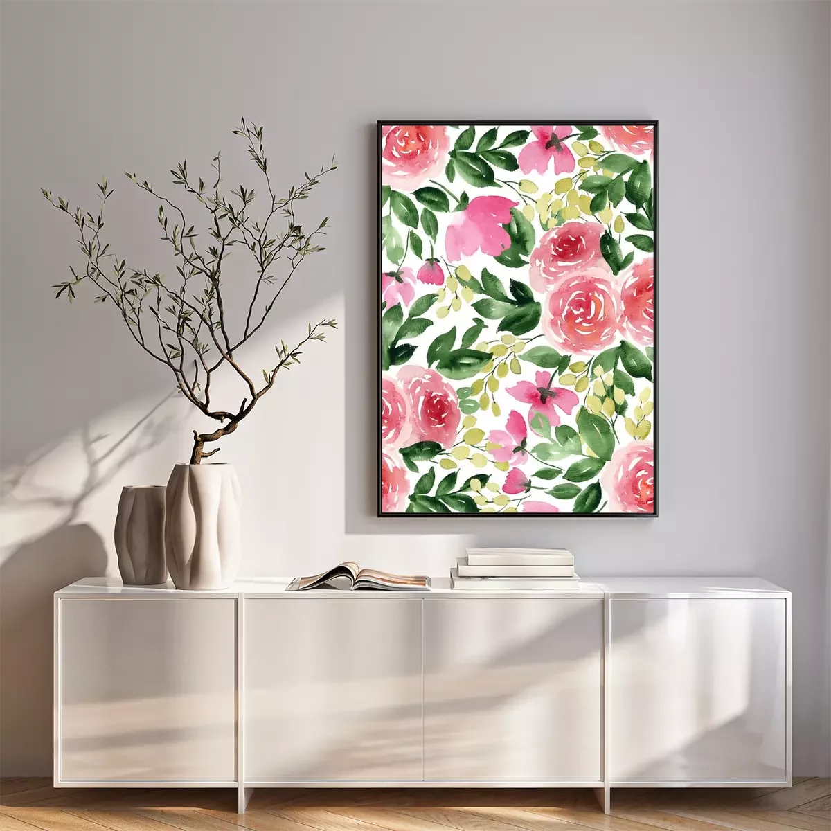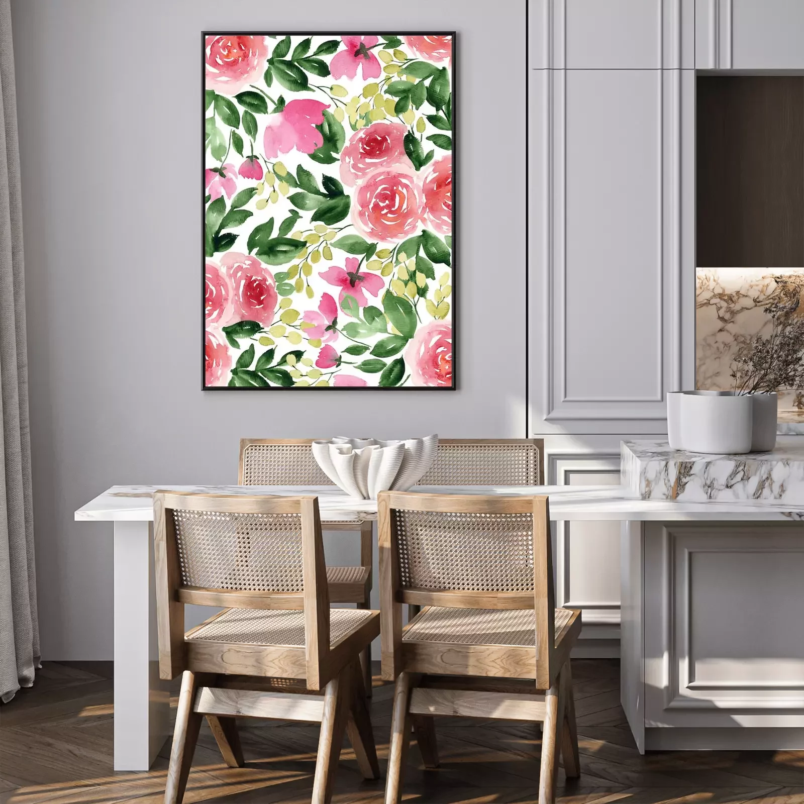 Poster  Roses sur un ornement peint