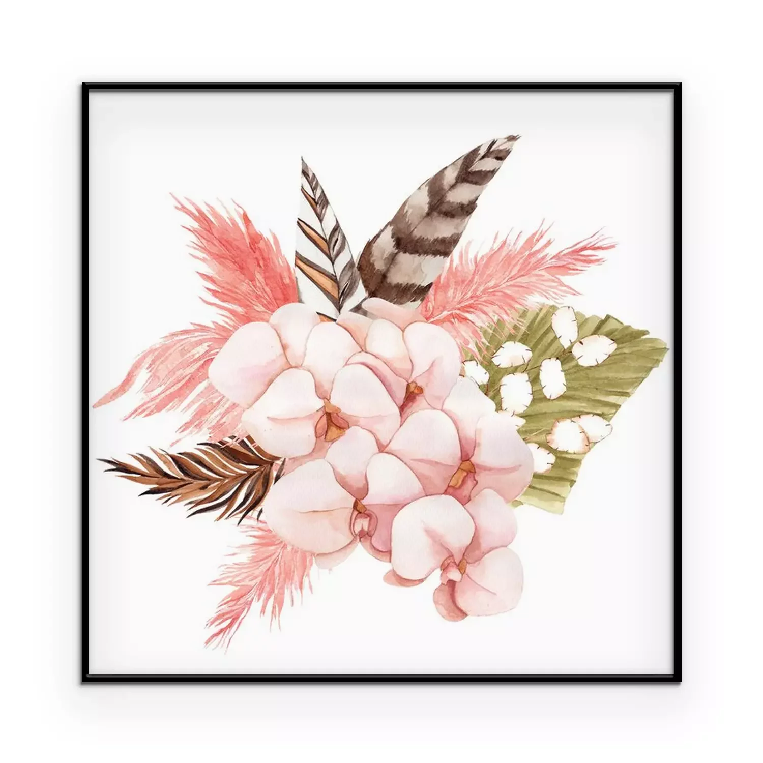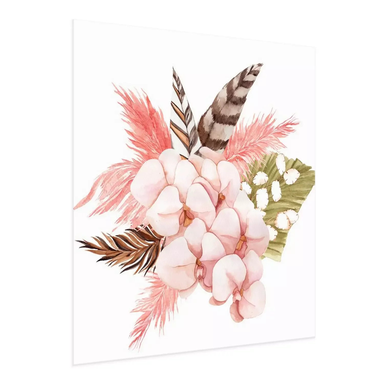 Poster : Roze orchidee en boho-veren