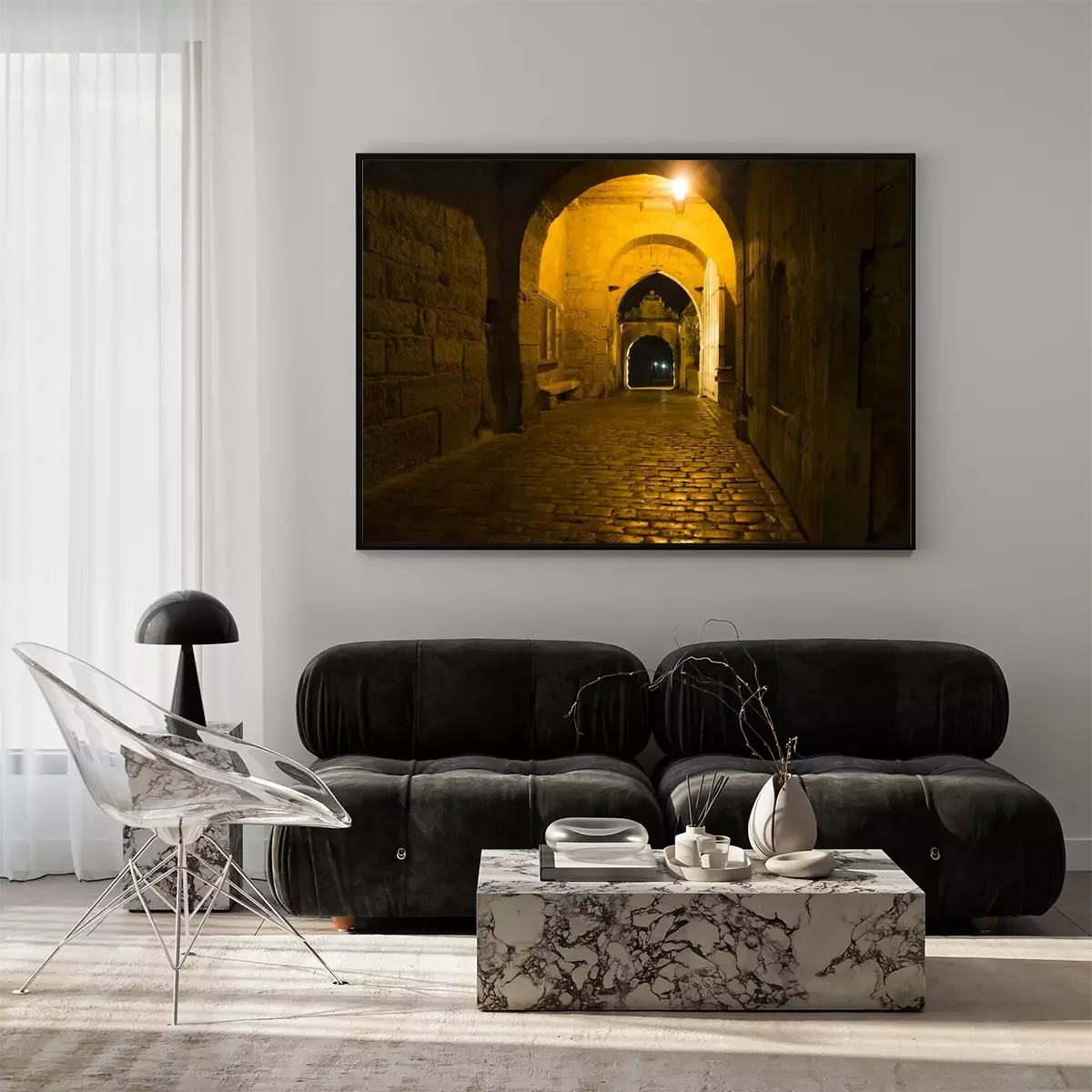 Poster : Rue à travers le tunnel la nuit