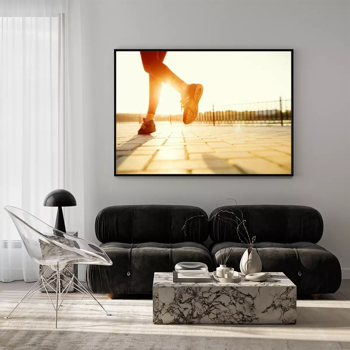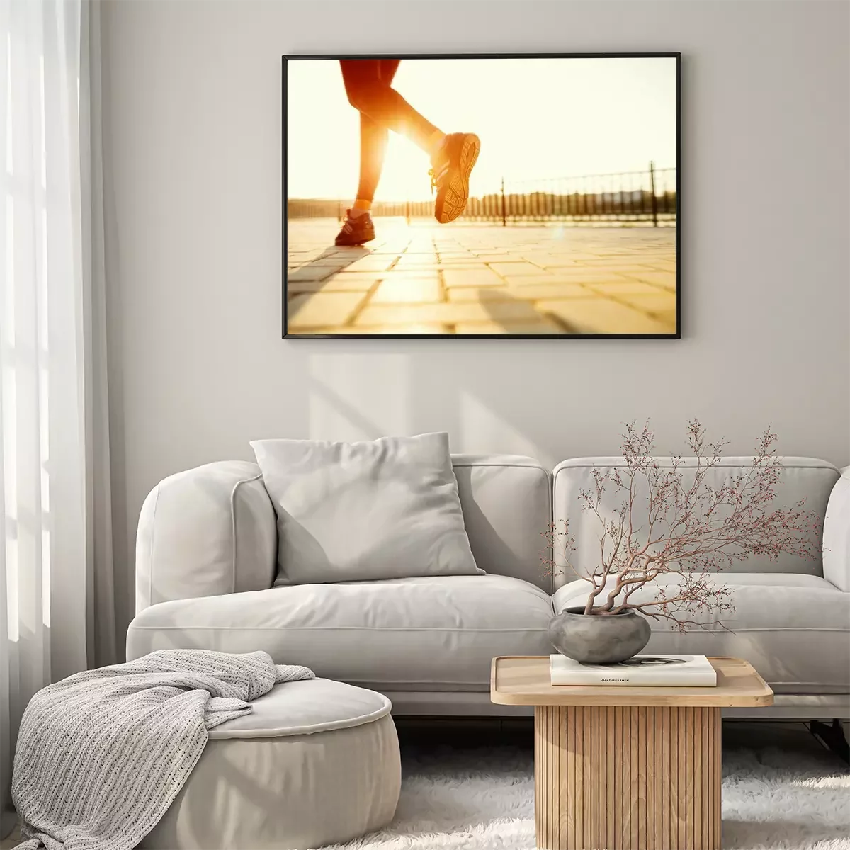 Poster : Runner pieds en cours d'exécution sur la route Gros plan sur la chaussure. femme de remise en forme sunri
