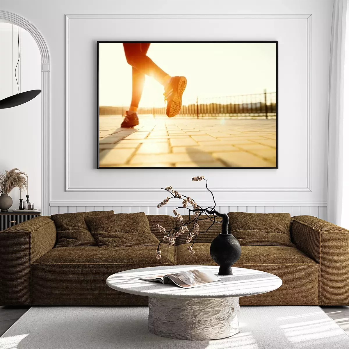 Poster  Runner pieds en cours d'exécution sur la route Gros plan sur la chaussure. femme de remise en forme sunri
