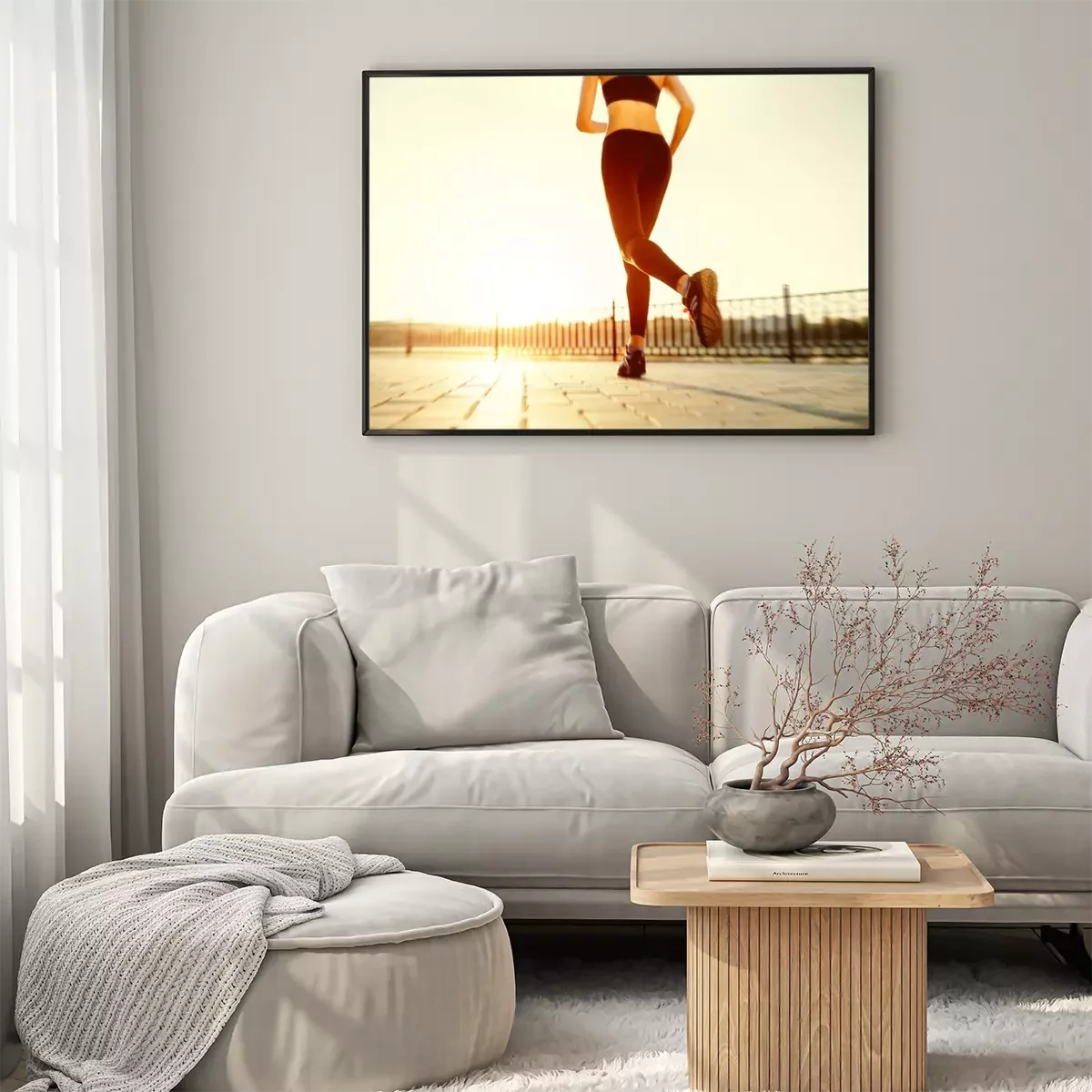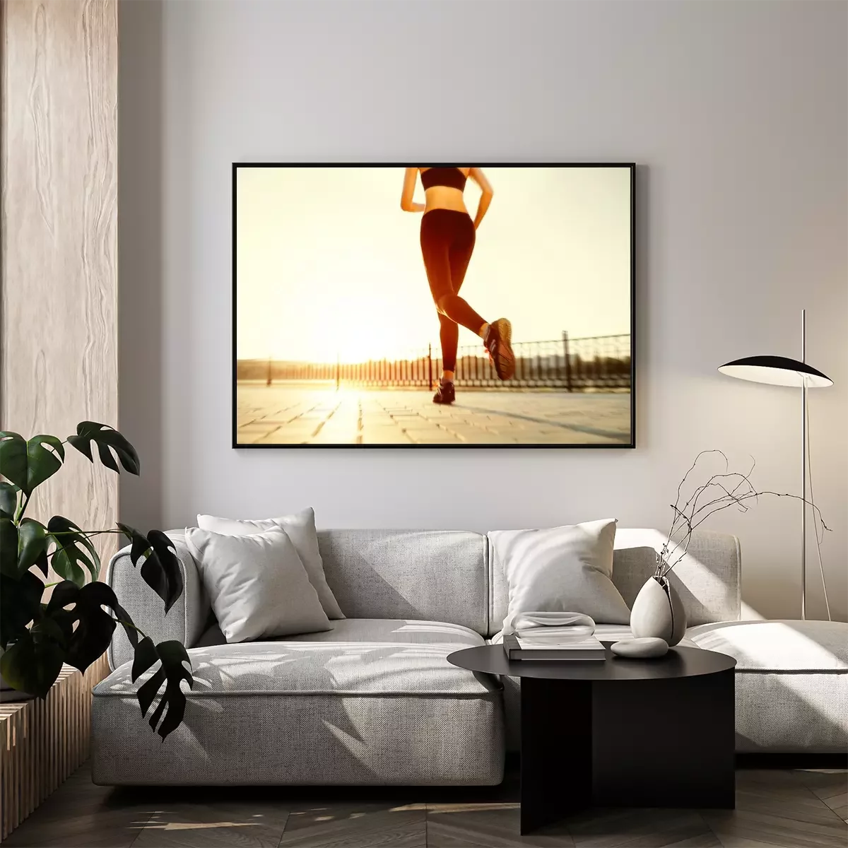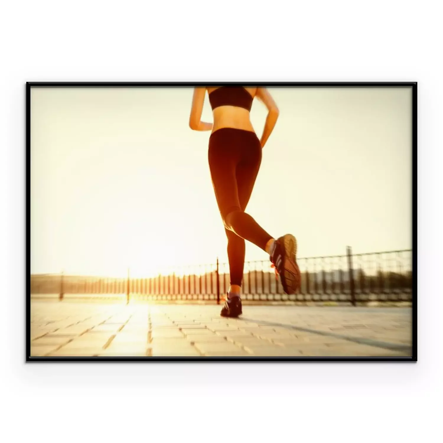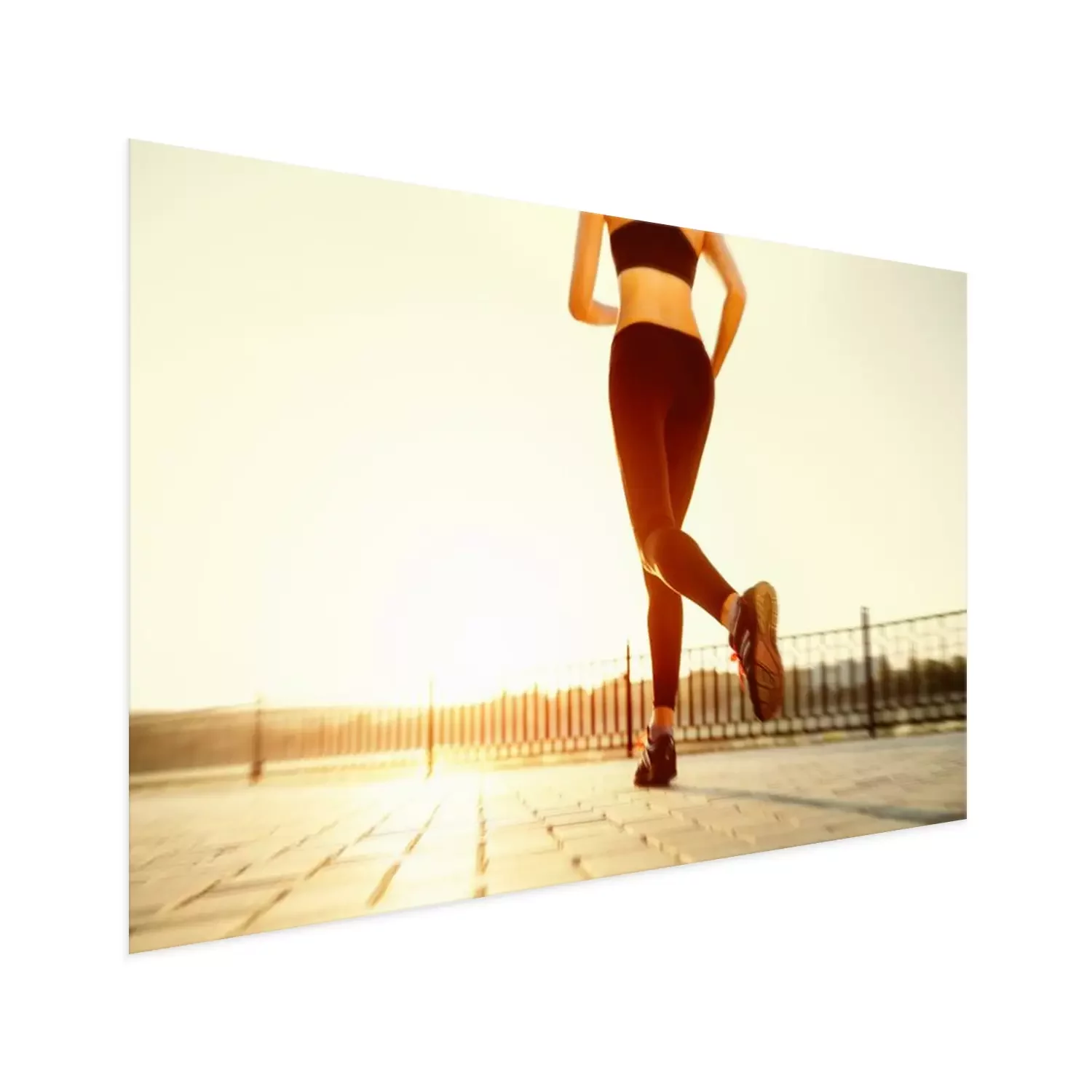 Poster  Runner pieds en cours d'exécution sur la route Gros plan sur la chaussure. femme de remise en forme sunri