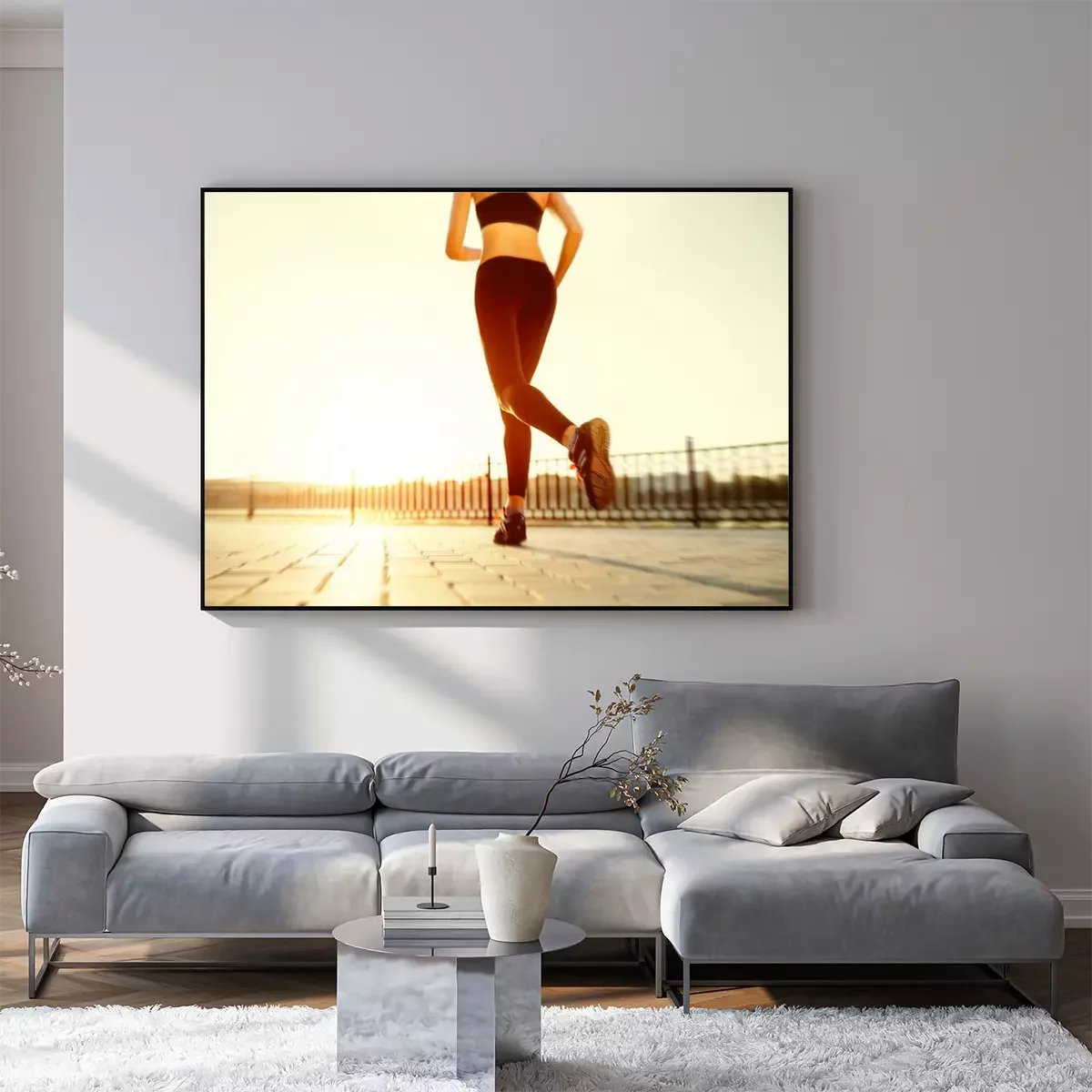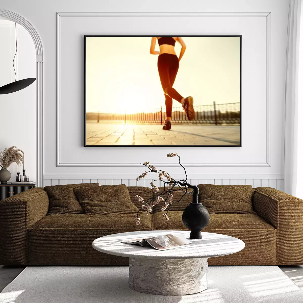 Poster : Runner pieds en cours d'exécution sur la route Gros plan sur la chaussure. femme de remise en forme sunri