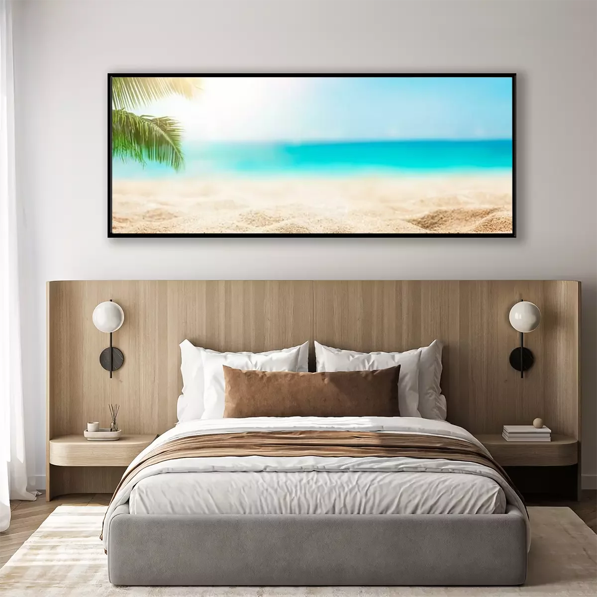 Sunny tropical beach with palm trees