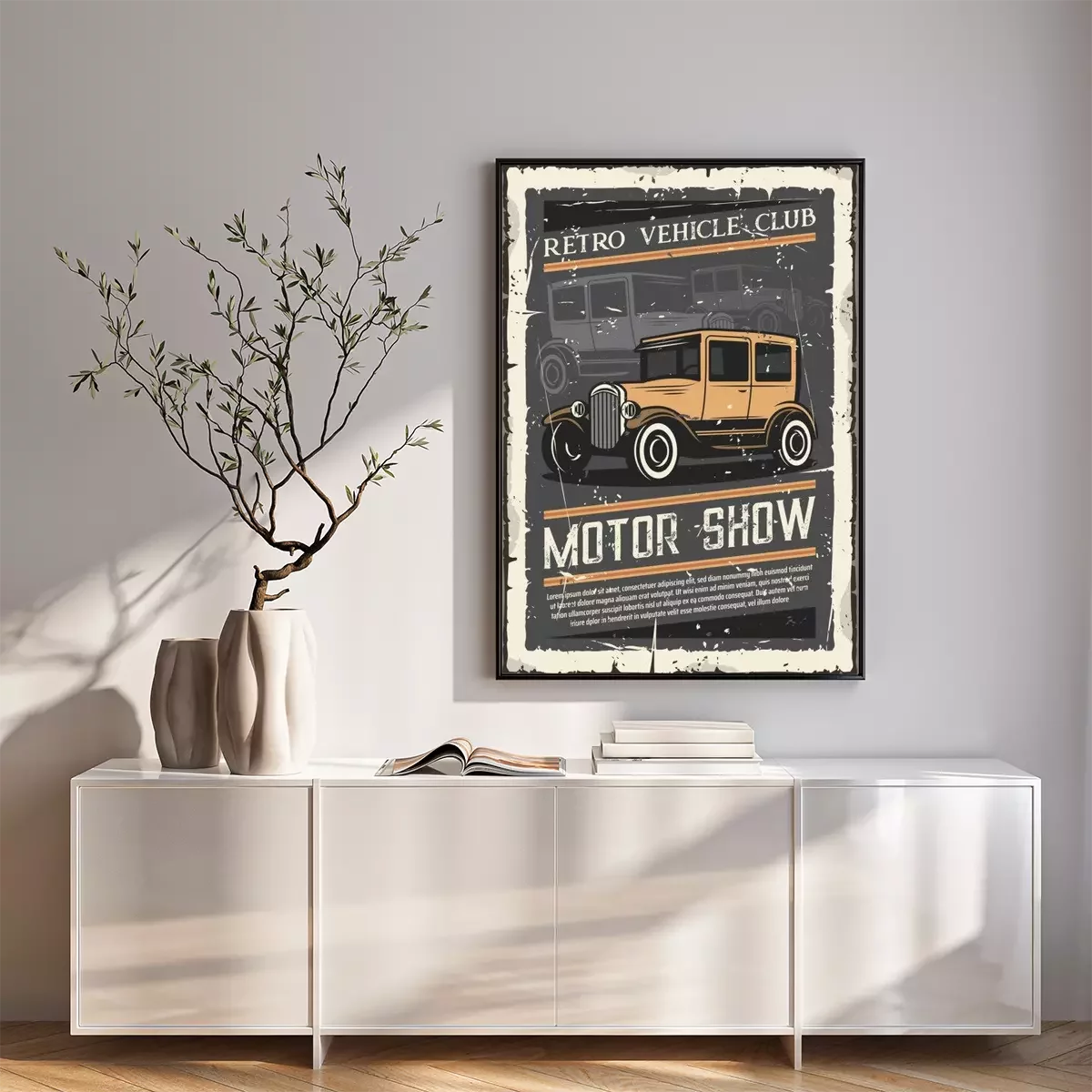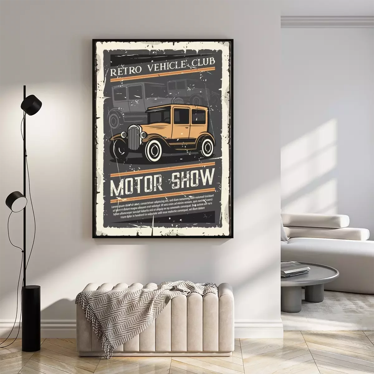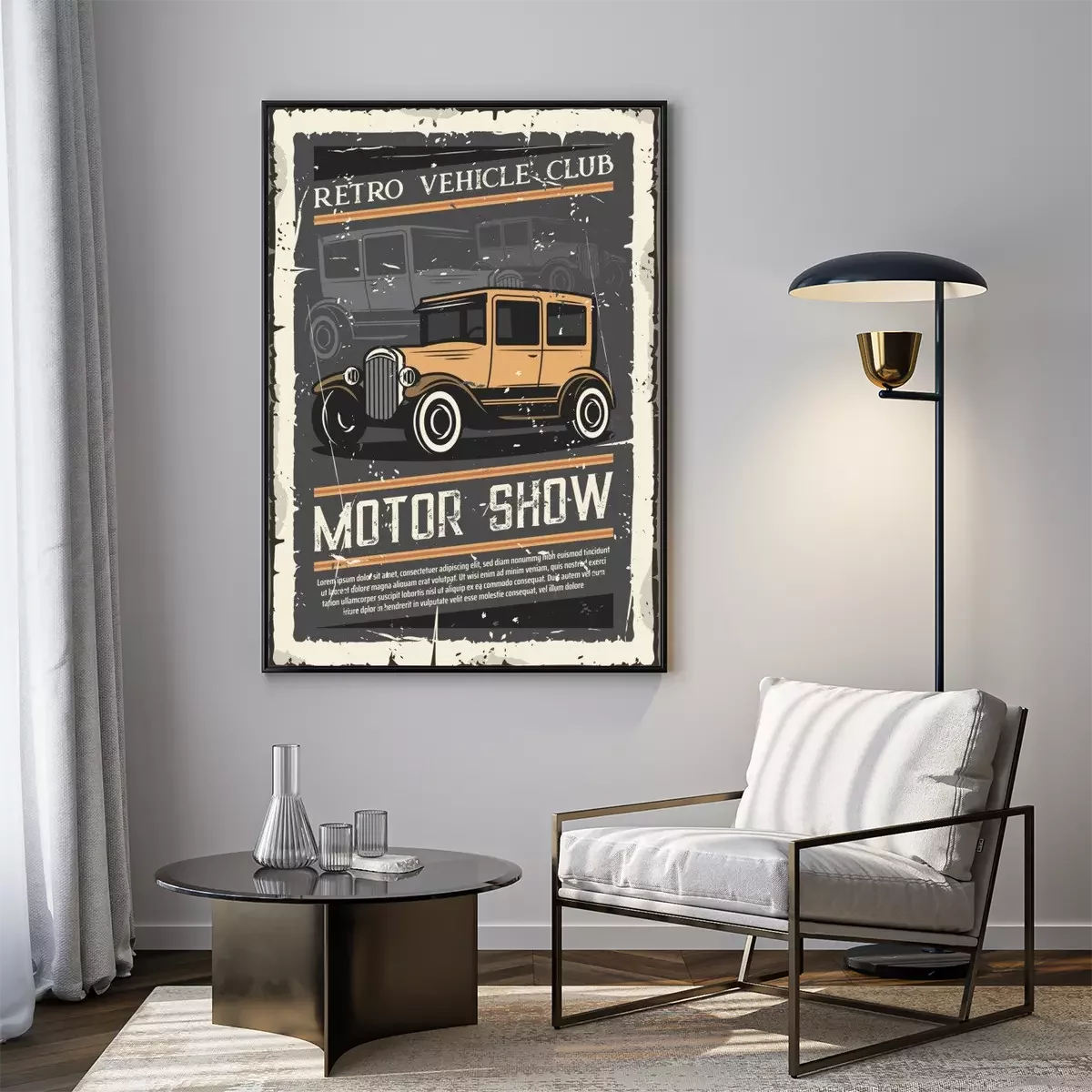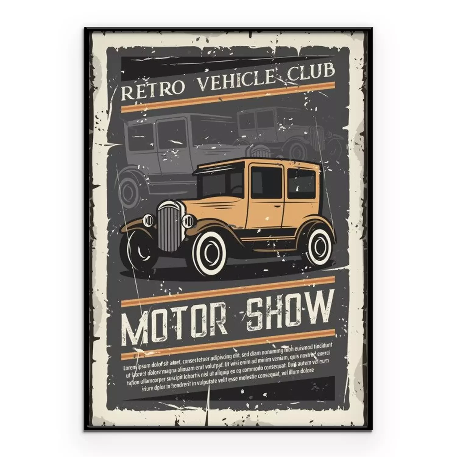 Poster : Salon de l'automobile et des voitures anciennes jaunes