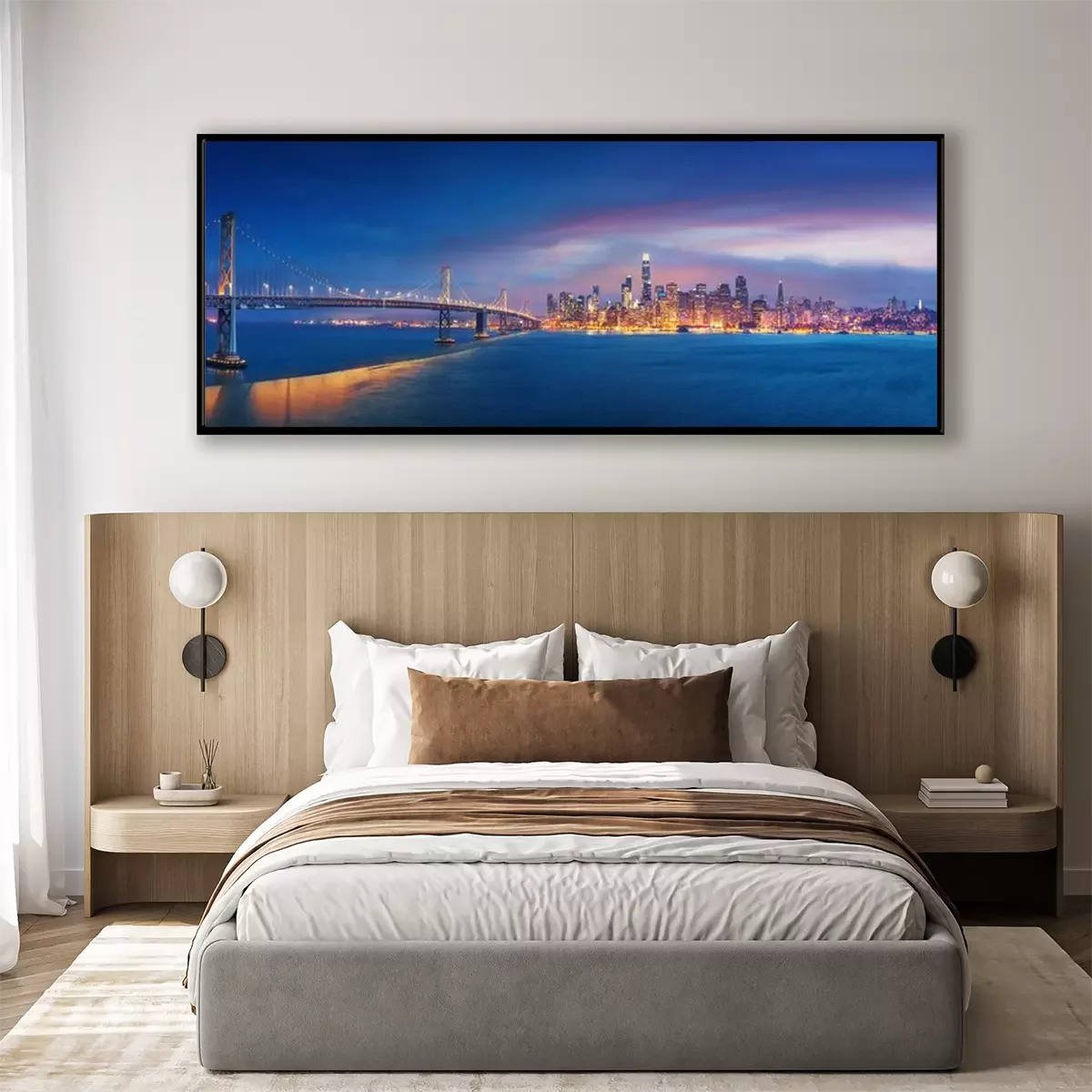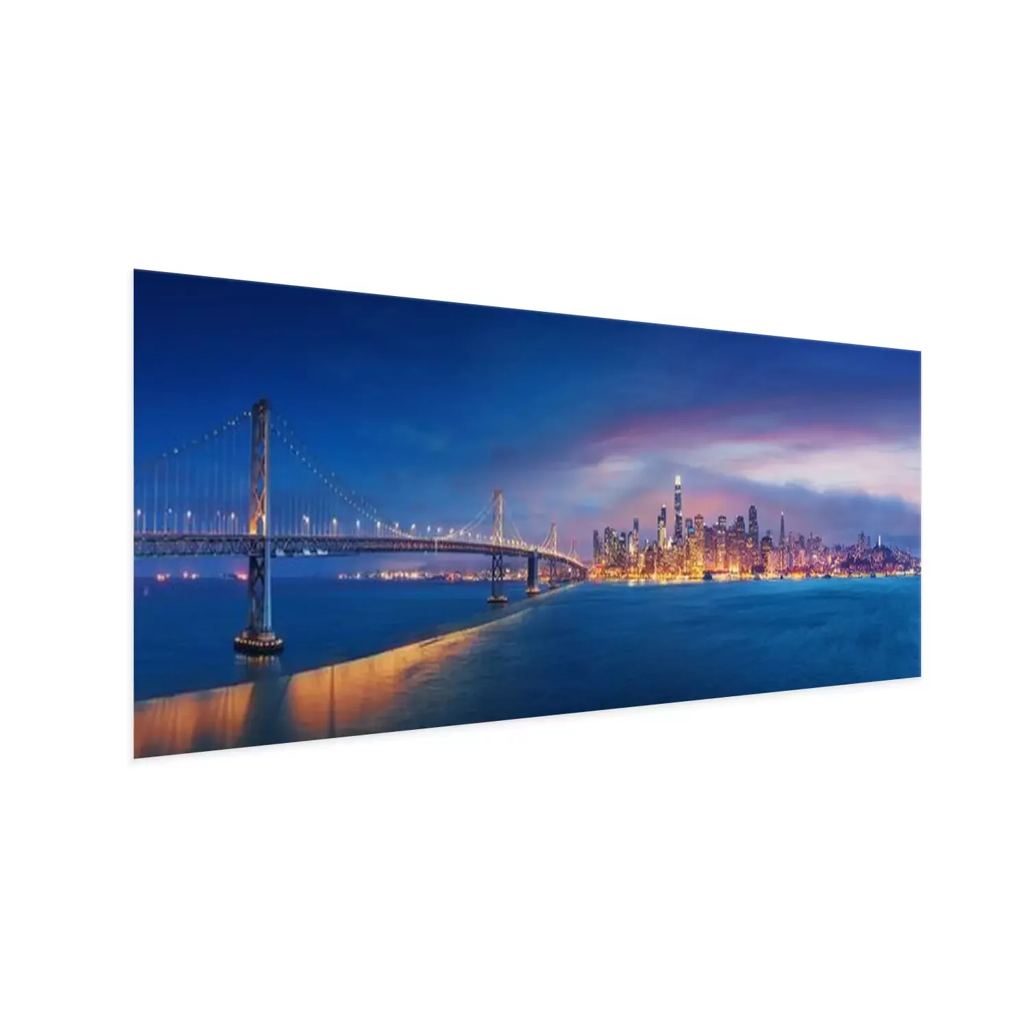 Poster  San Francisco Bay Bridge and San Francisco downtown in wide panorama photo