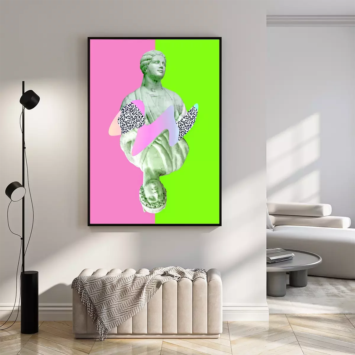 Poster : Sculpture de la Renaissance avec une bande abstraite