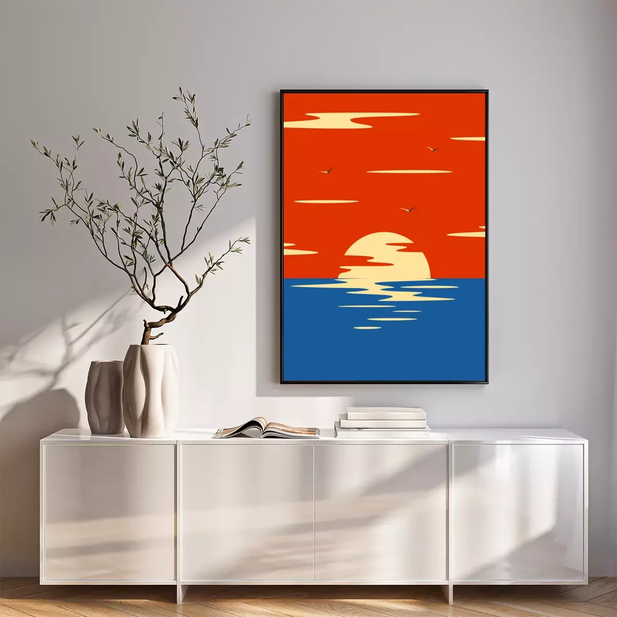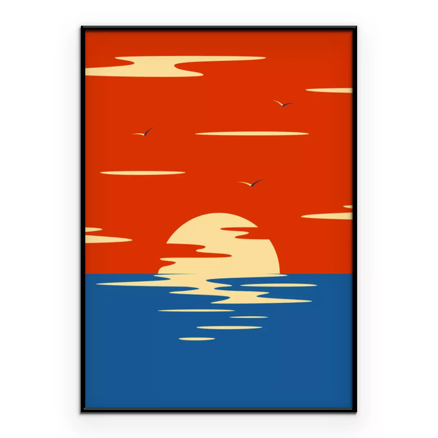 Poster  Sea sunset. Seascape with a bright crimson sky.