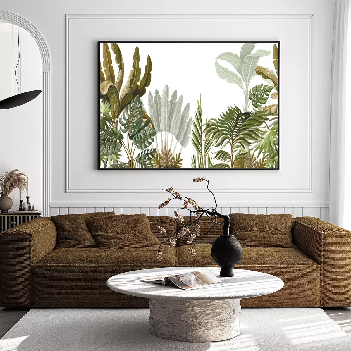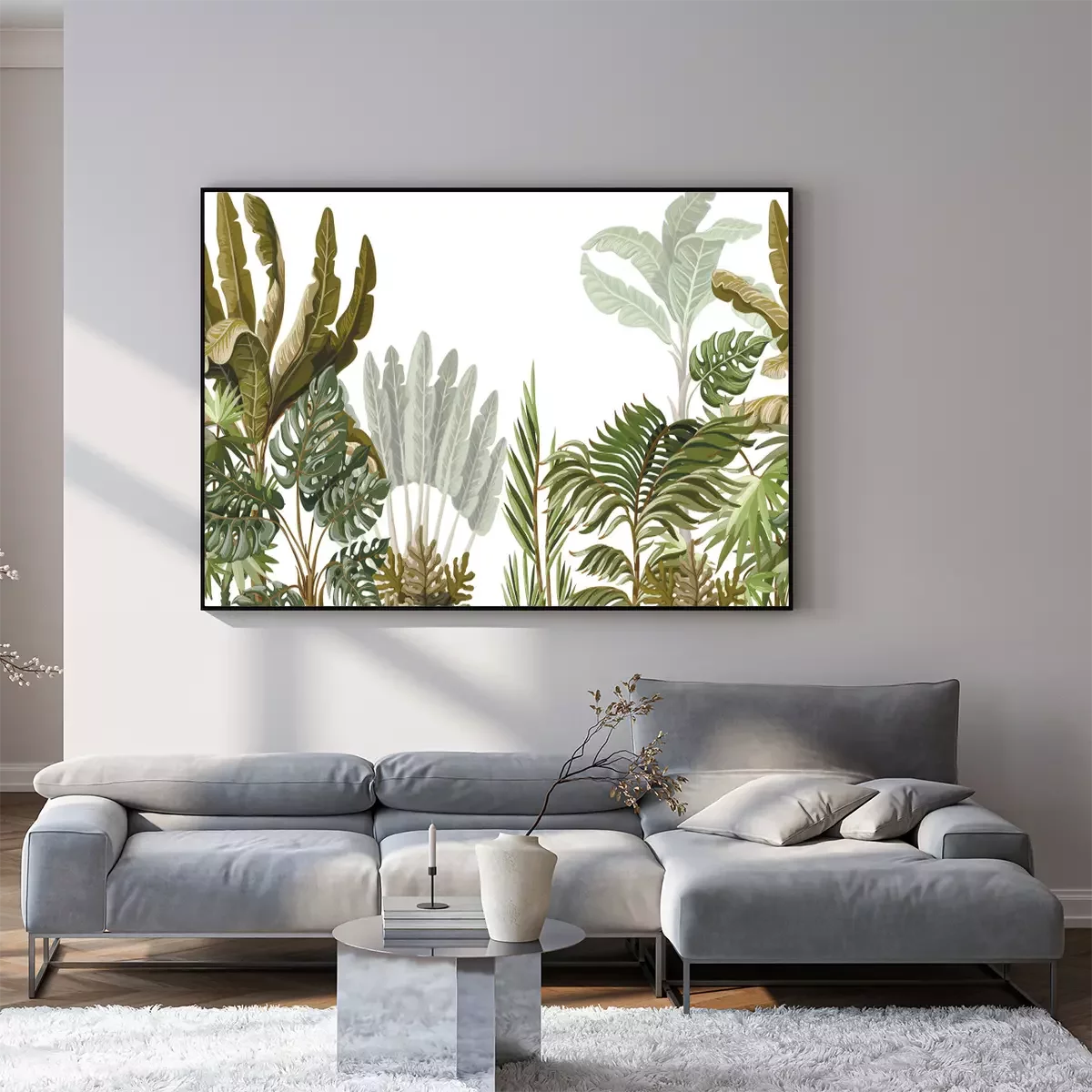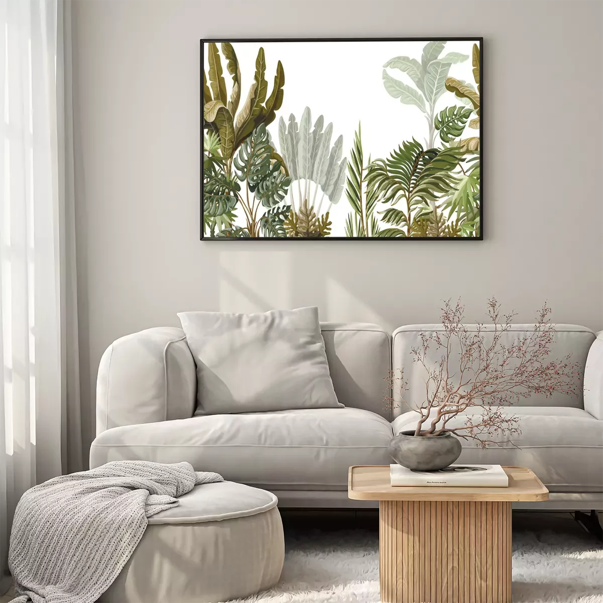 Poster : Seamless border with tropical tree such as palm, banana, monstera. .