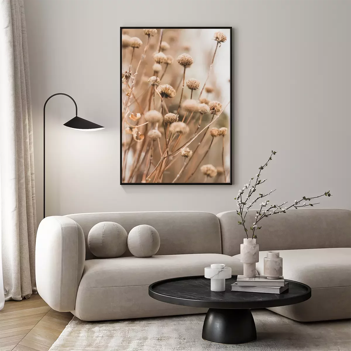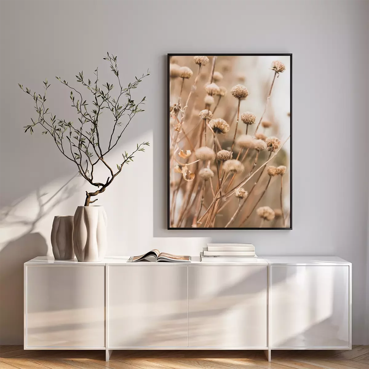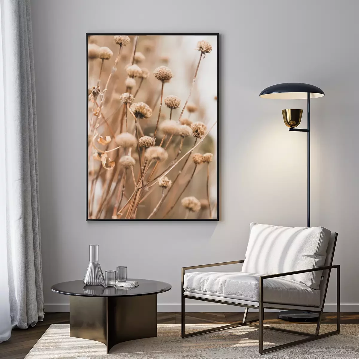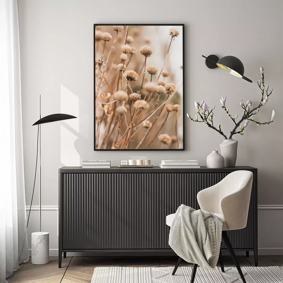Poster  Sensual delicate lilac and beige background: delicate dry flower in winter in February in Chicago