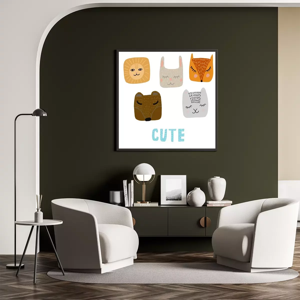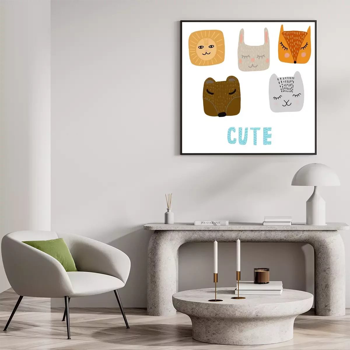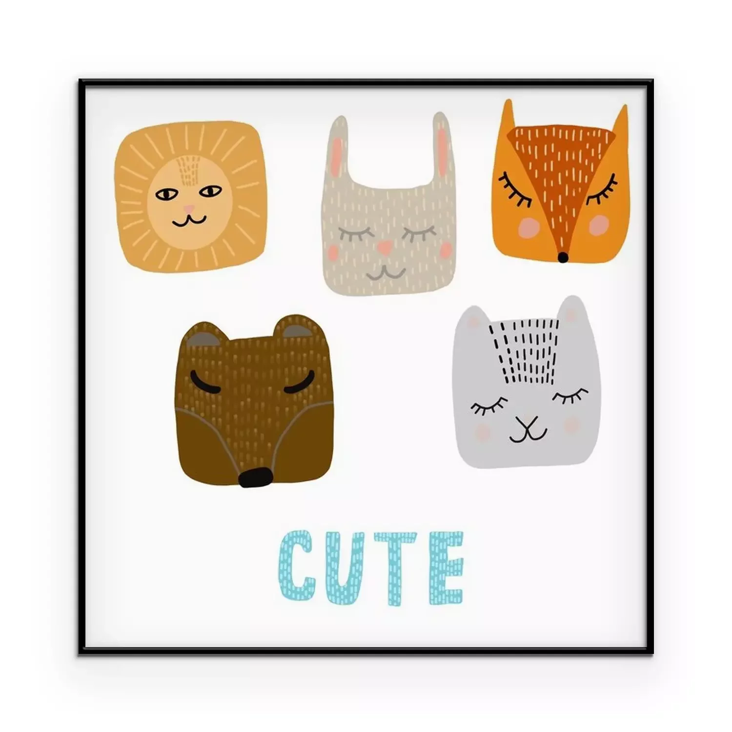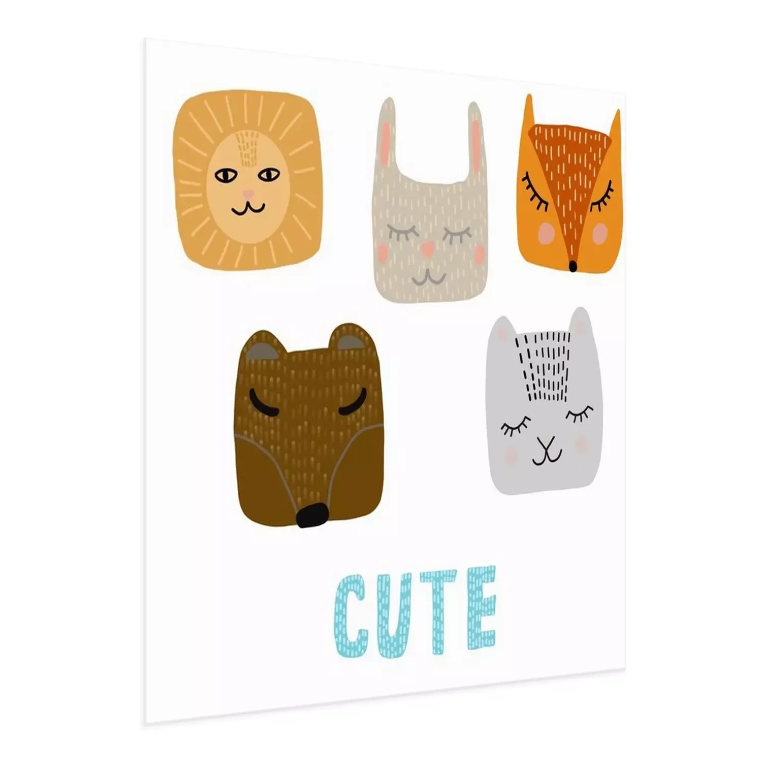 Poster  Set of animals in cartoon style. Cute smiley bear, rabbit, Fox,cat, lion. Scandinavian style. Funny illustration