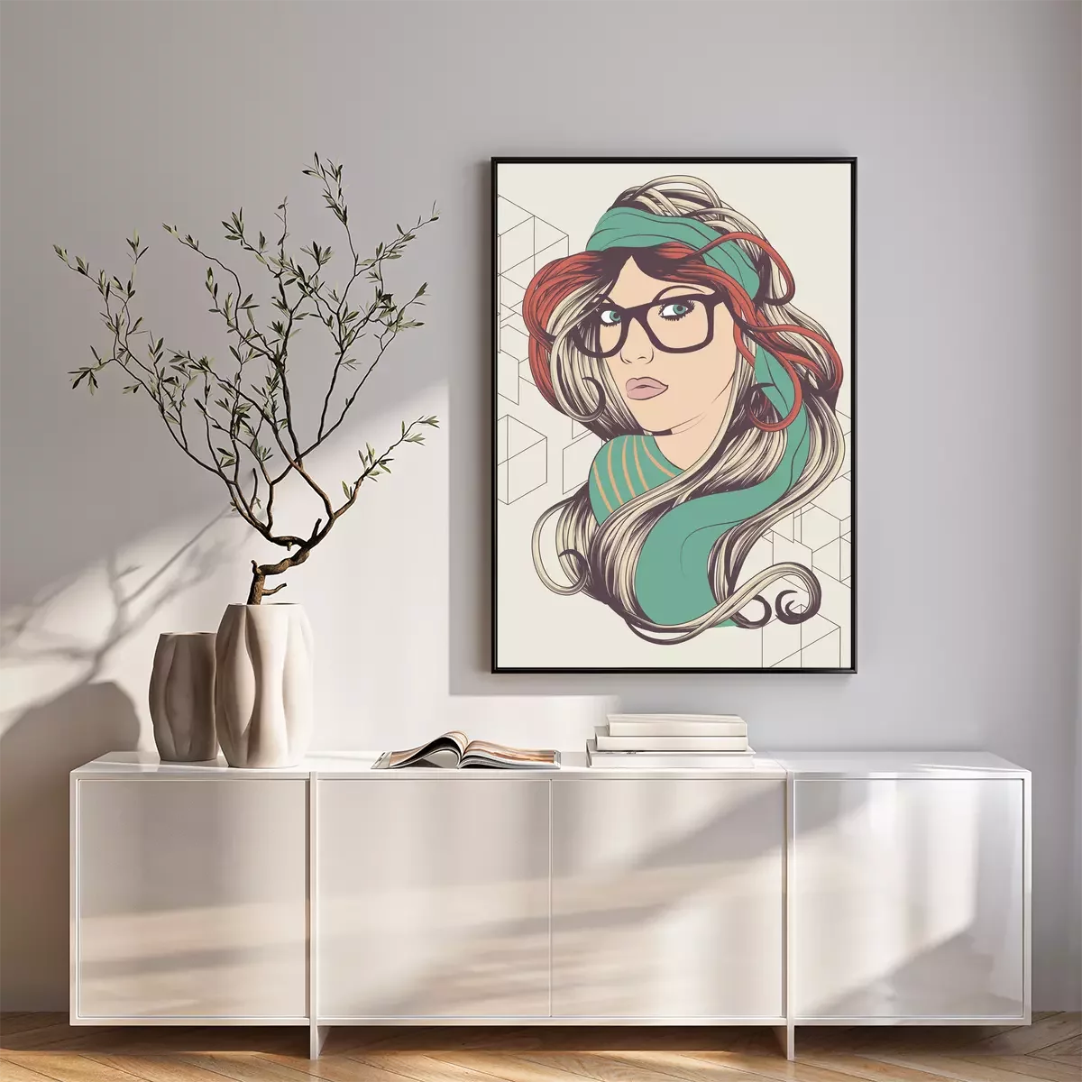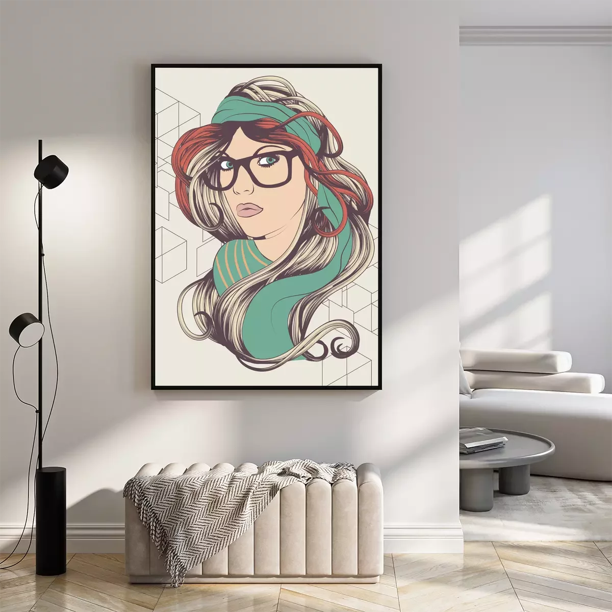 Poster : Sexy hipster girl avec des lunettes de mode illustration de mode