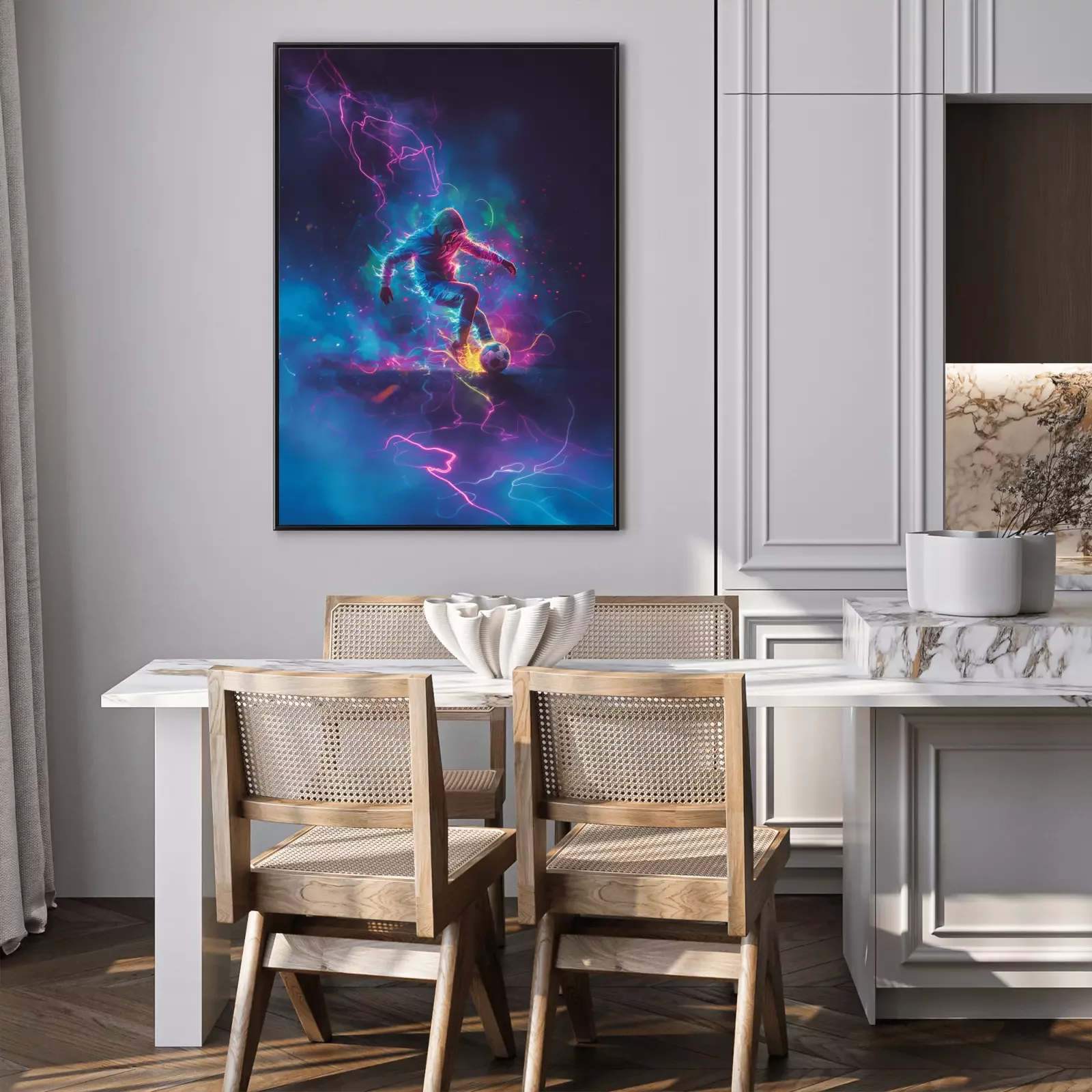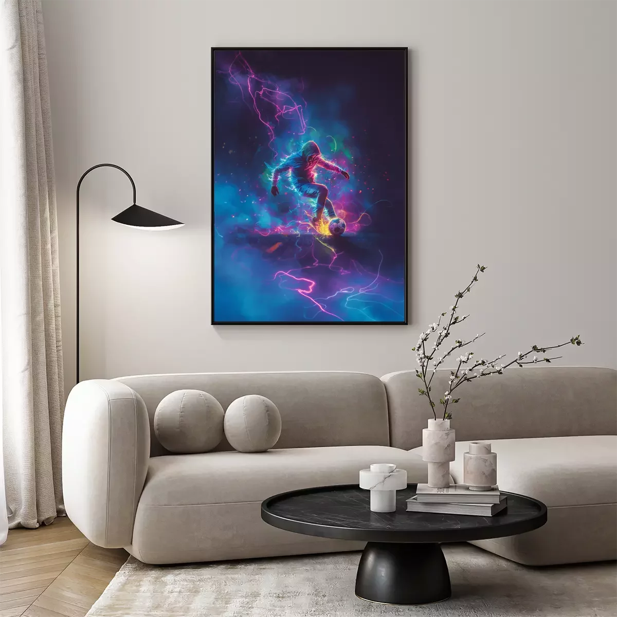 Silhouette colorée d'un joueur de football sur un fond abstrait