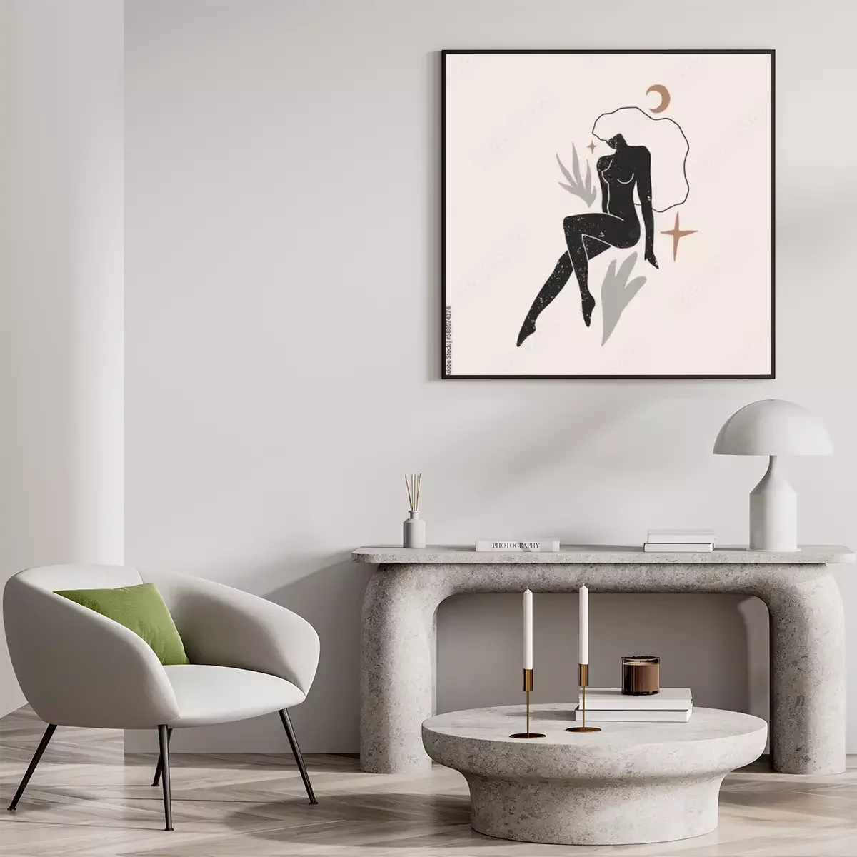 Poster : Silhouette d'une femme magique aux cheveux noirs