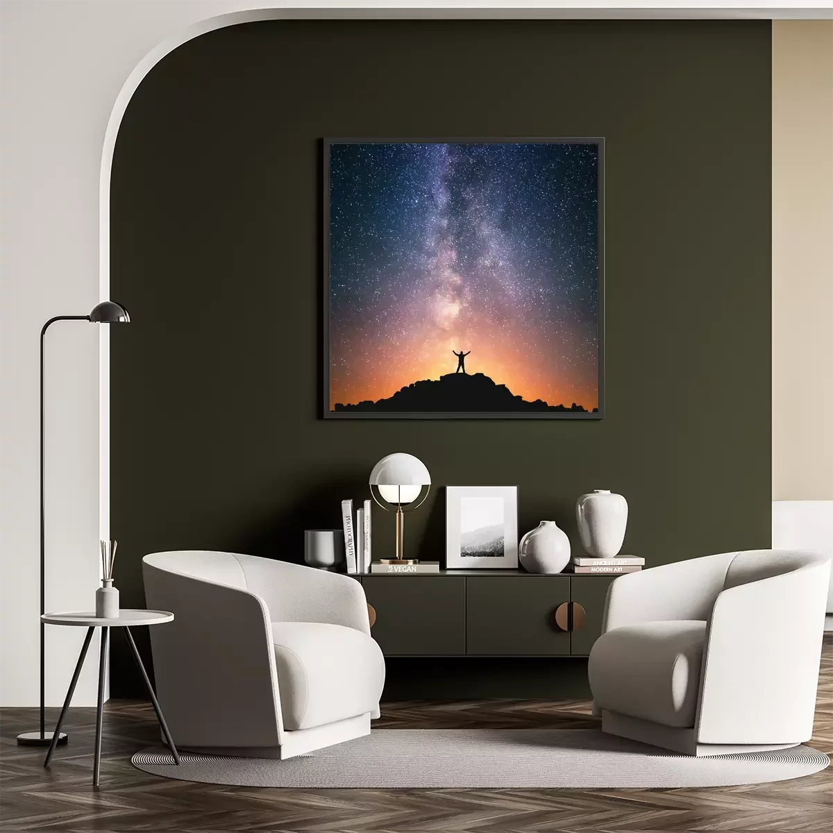 Poster : Silhouette d'une personne sur un fond spatial galactique
