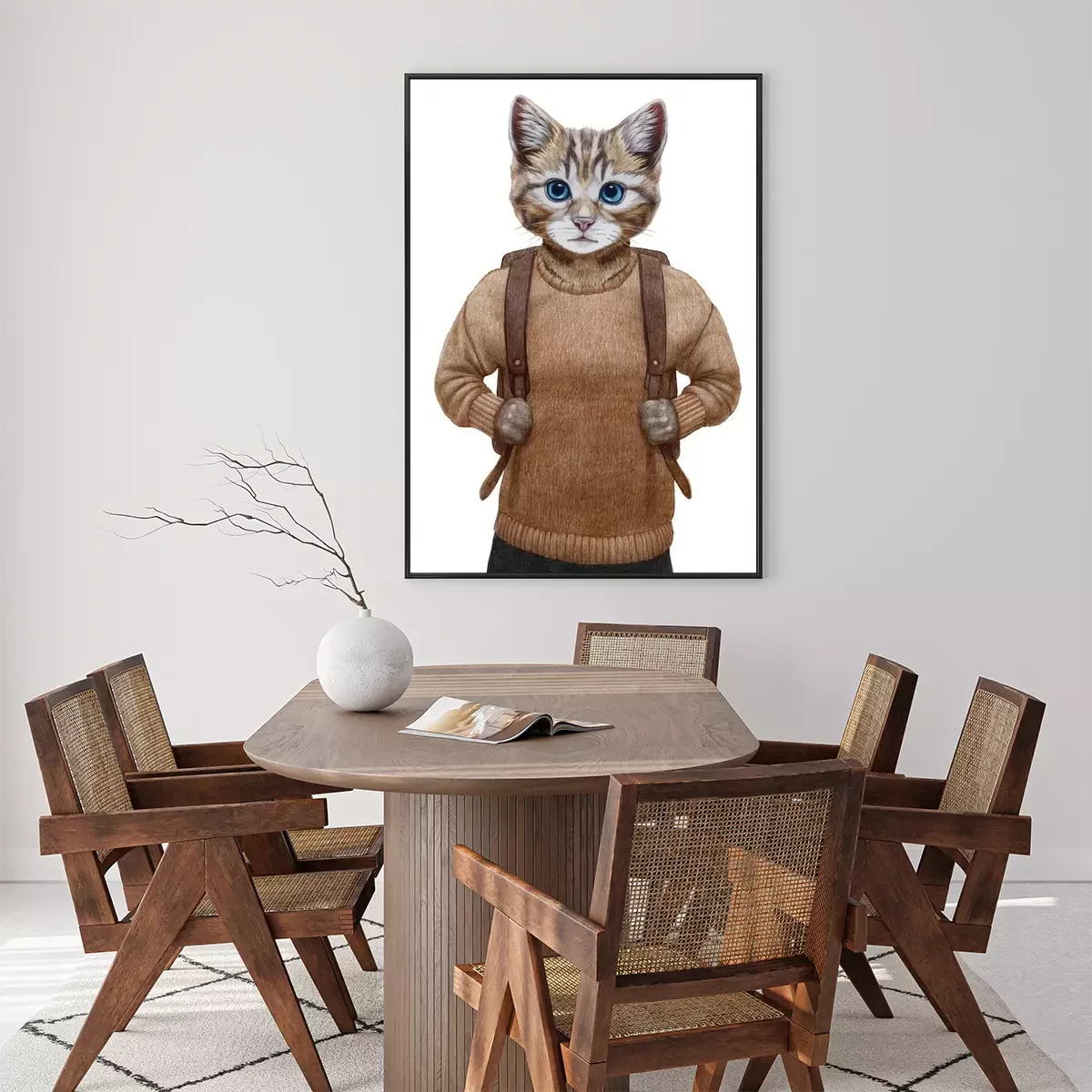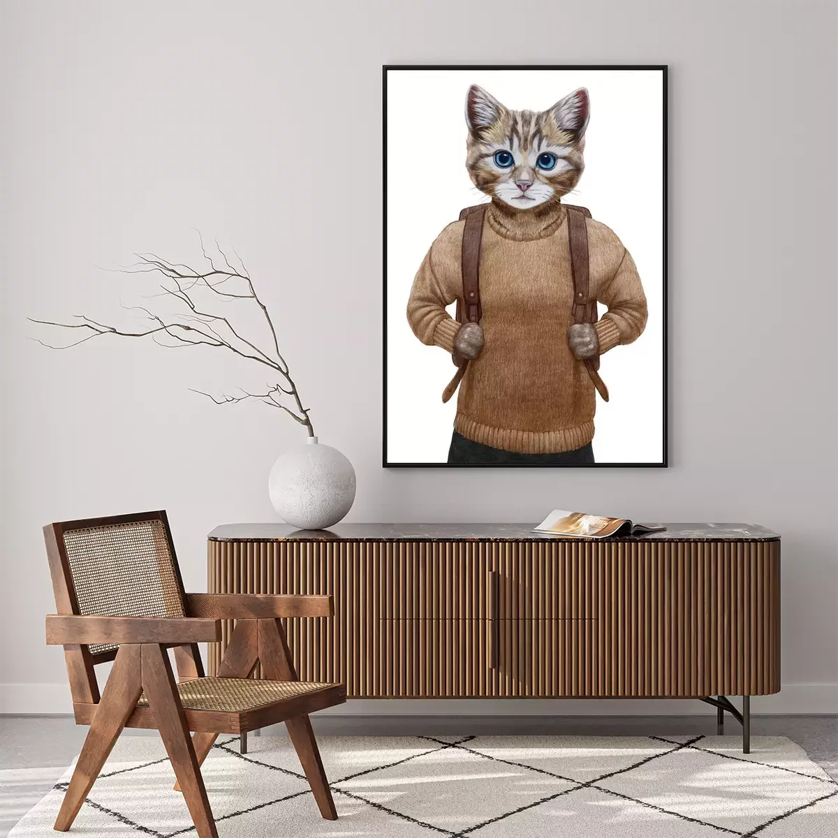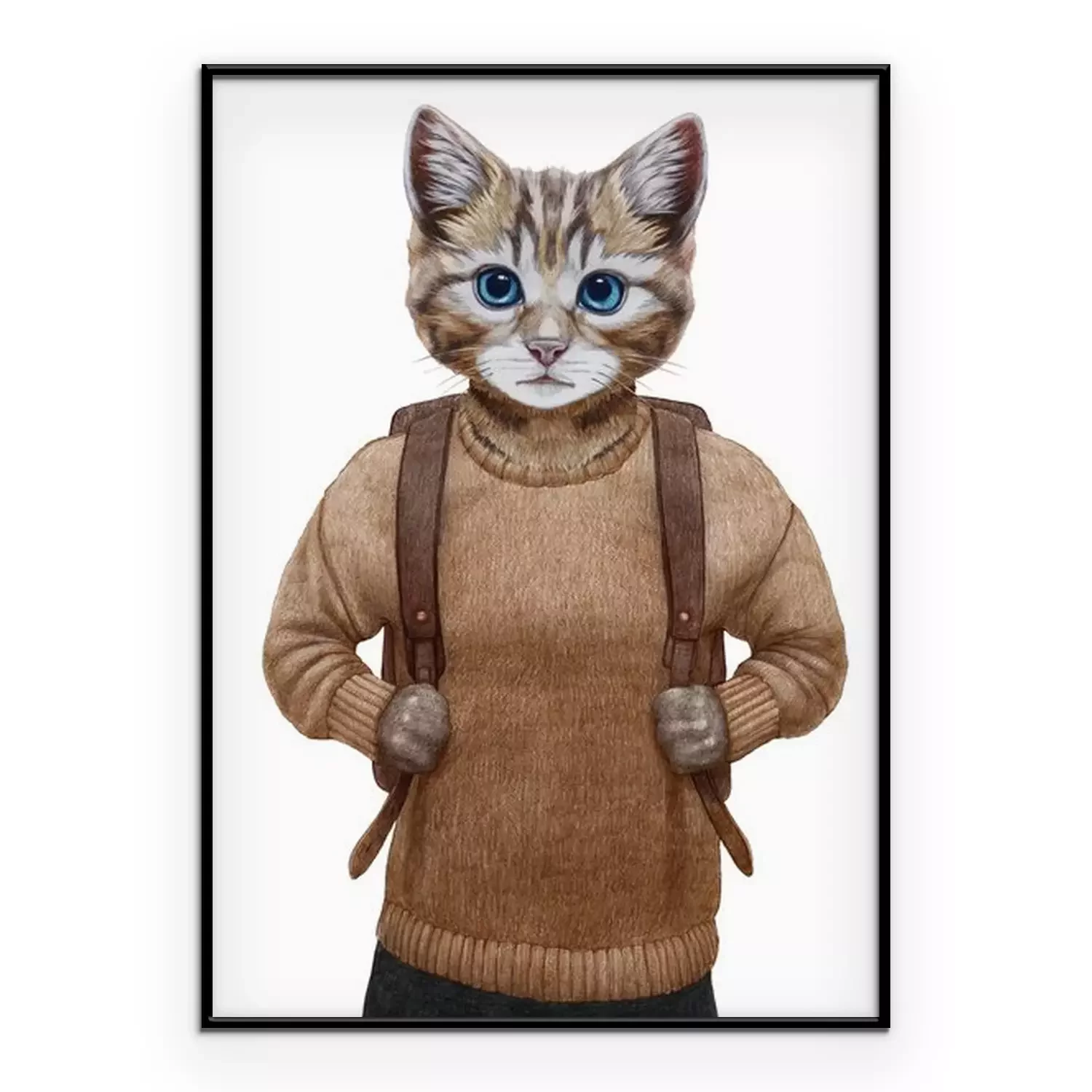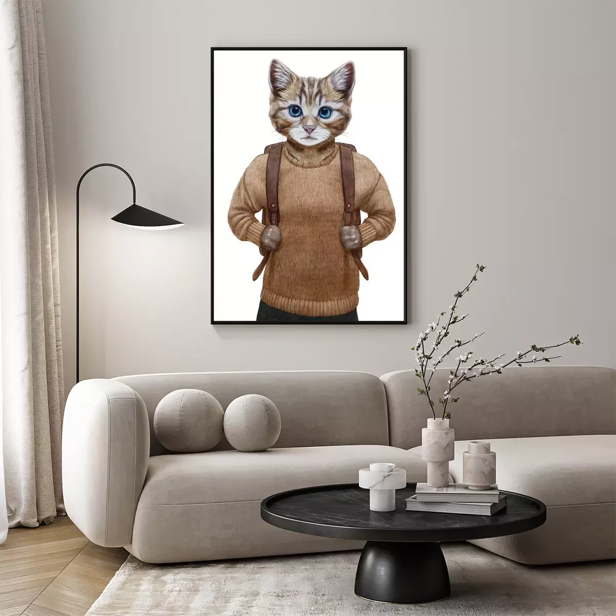 Poster  Silhouette humaine dans un chandail avec une tête et des pattes de chat