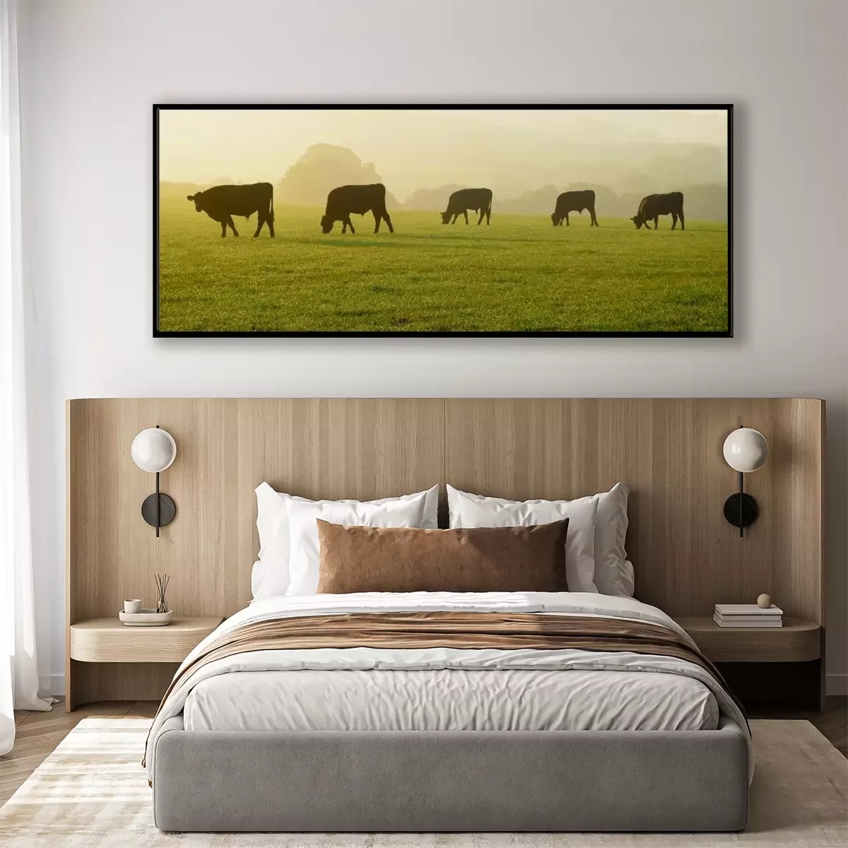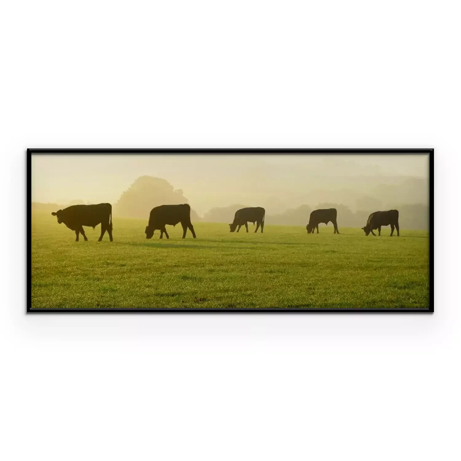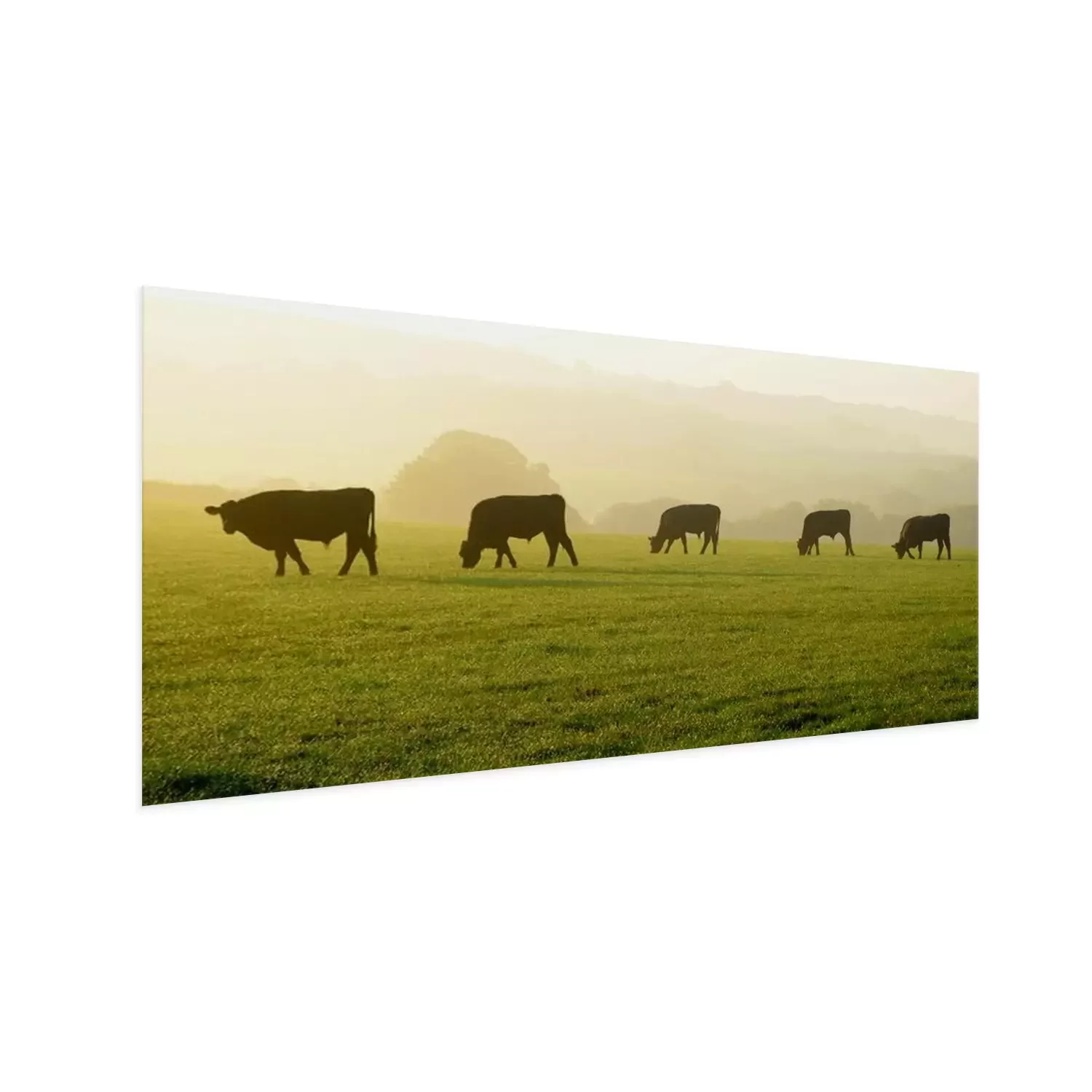 Poster : Silhouettes de vaches dans un pâturage vert à l'aube