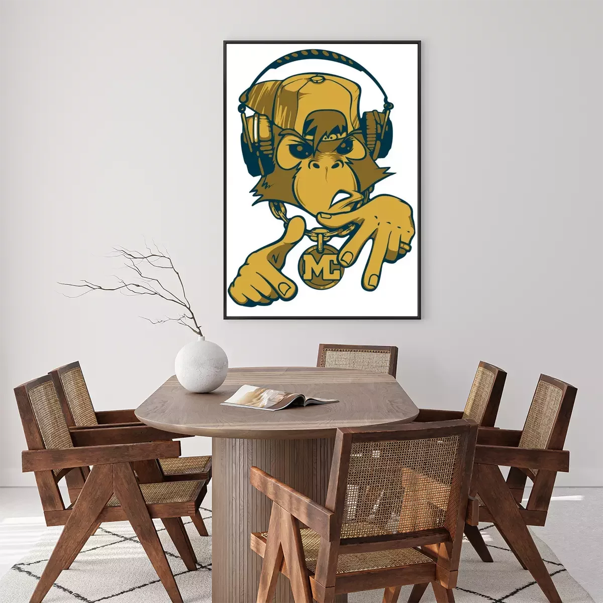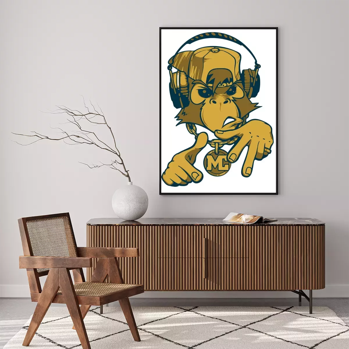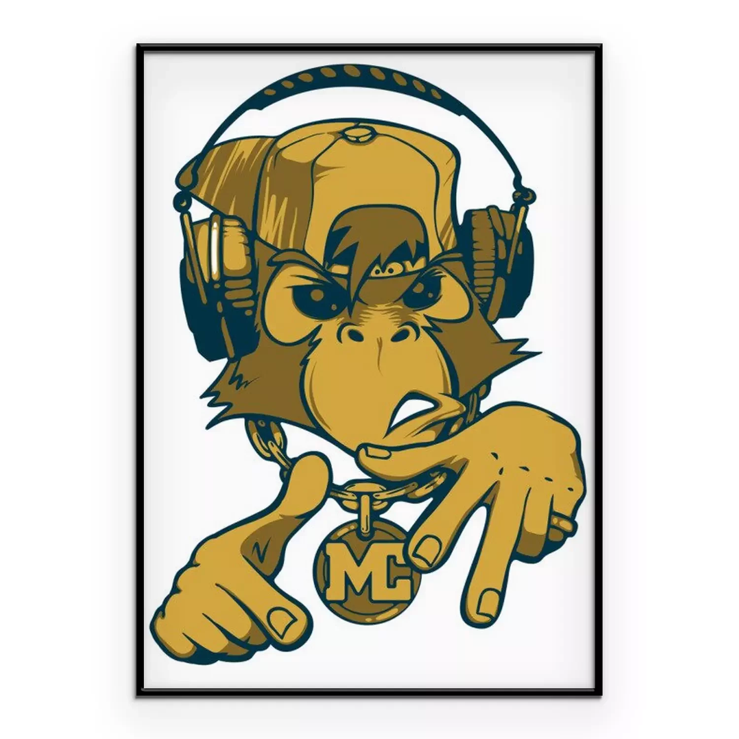 Poster  Singe rappeur. Singe MC. Chimpanzés avec des écouteurs