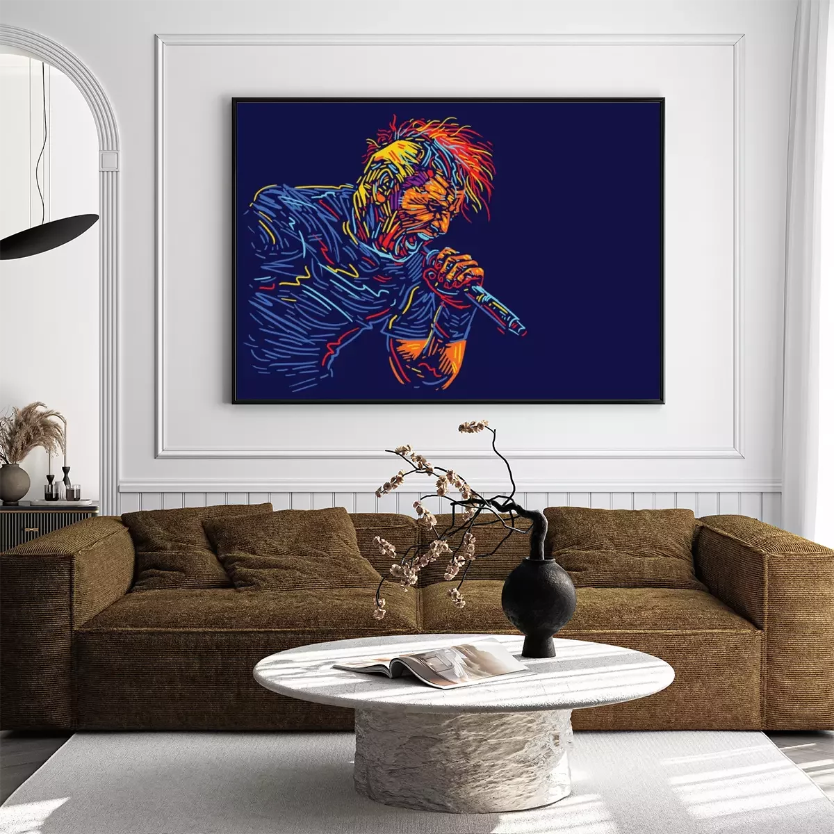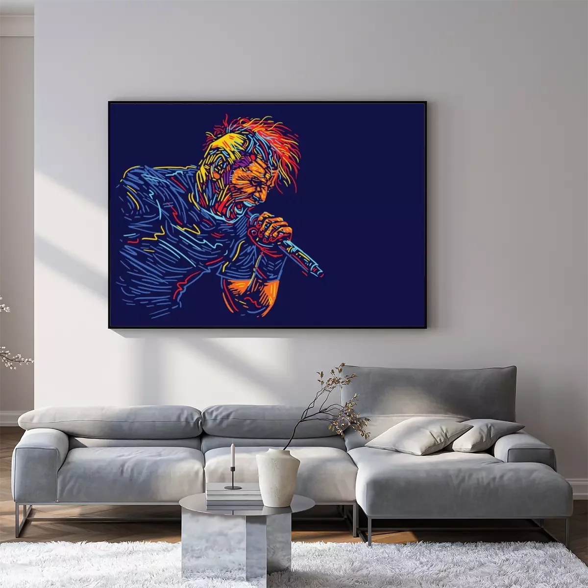 Poster : Singer man character. Rock vocalist. Abstract vector illustration