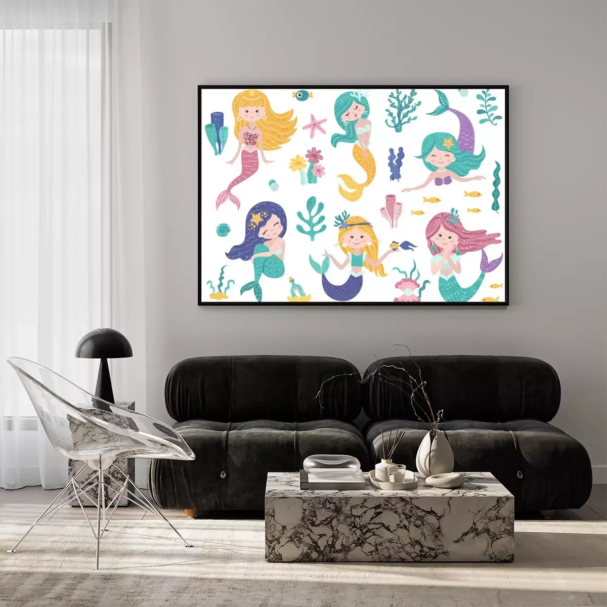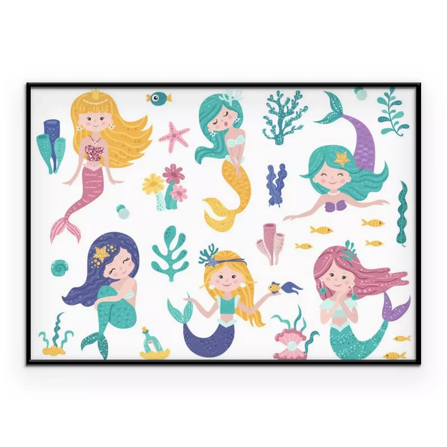Poster : Sirènes colorées dans différentes poses