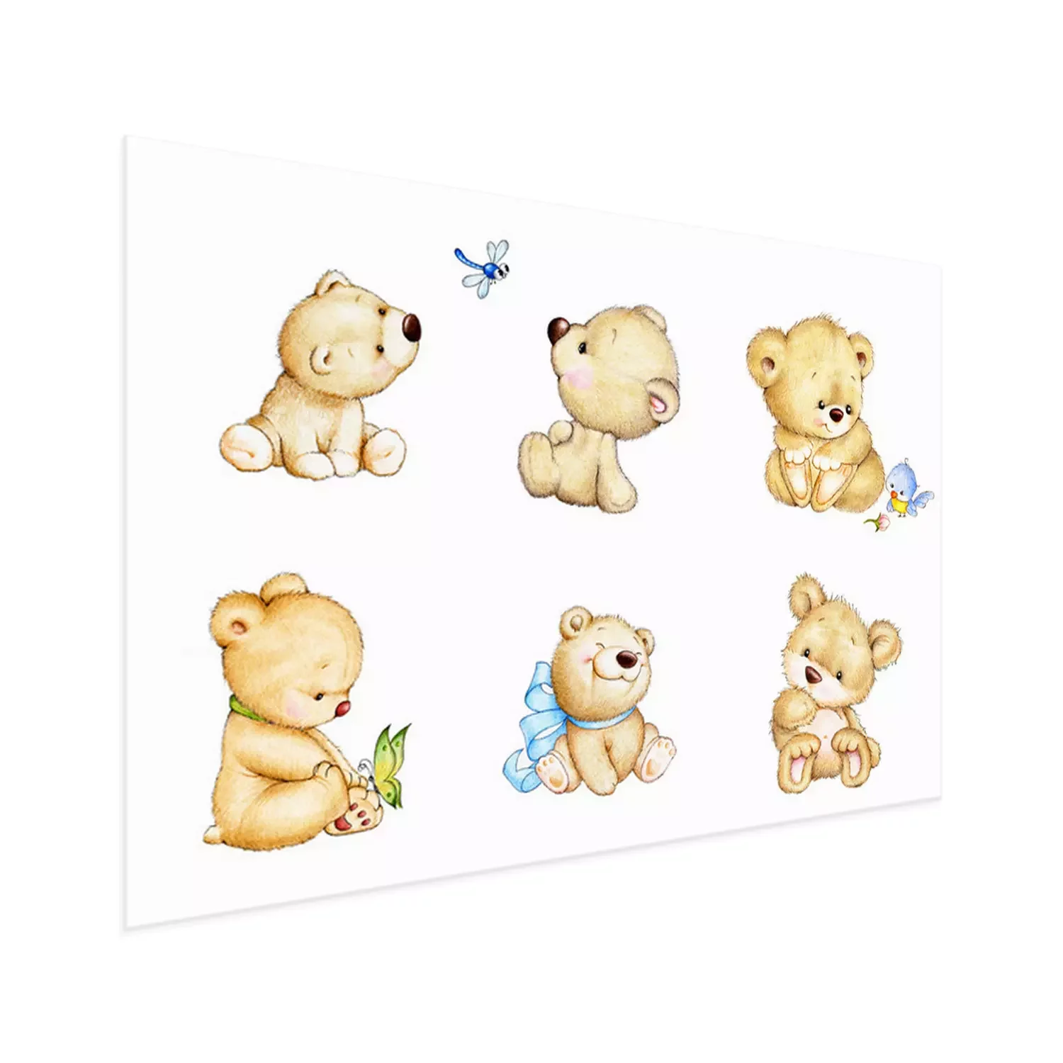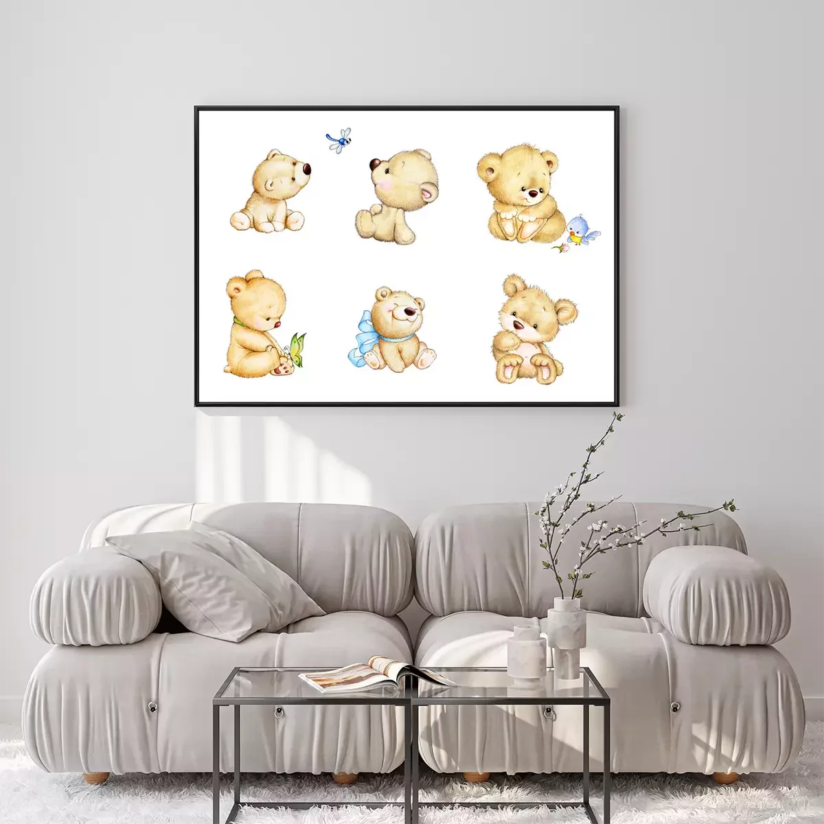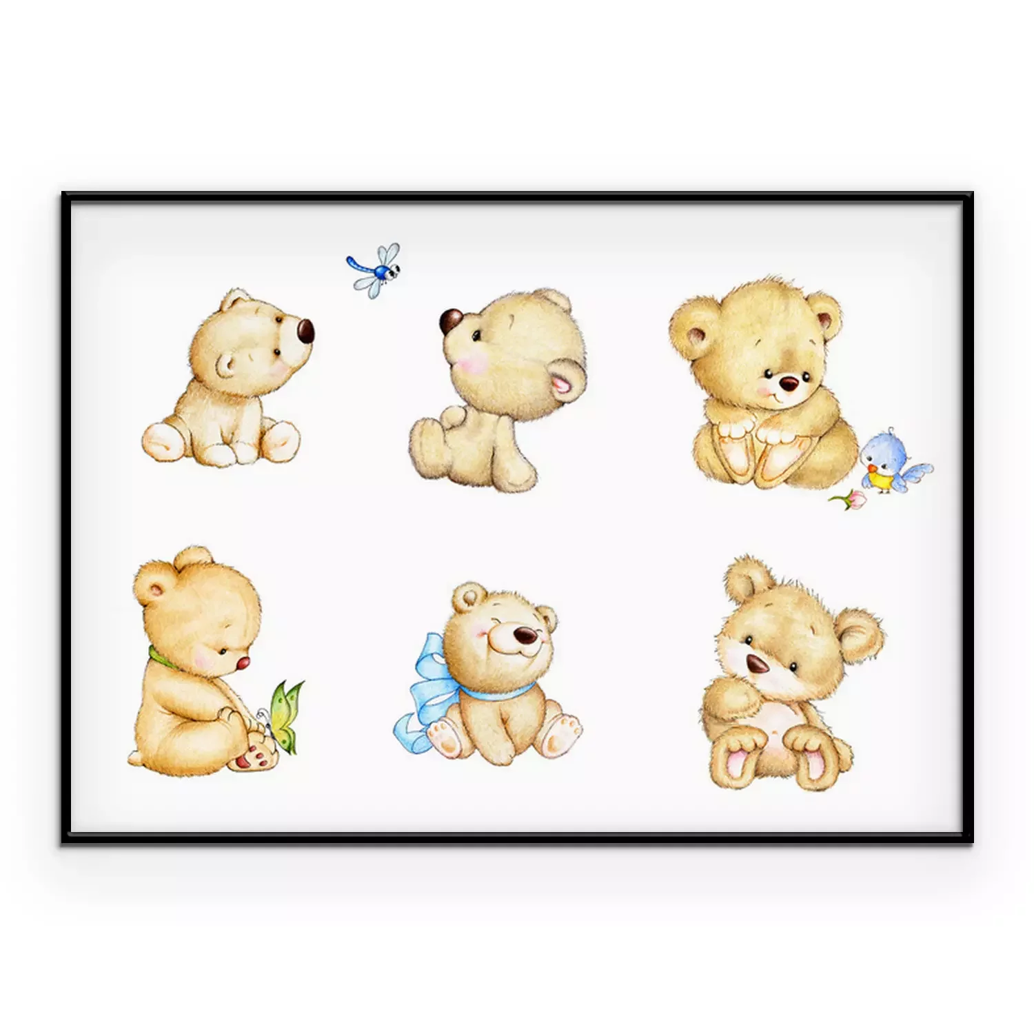 Poster  Six ours, un papillon, une libellule et un oiseau