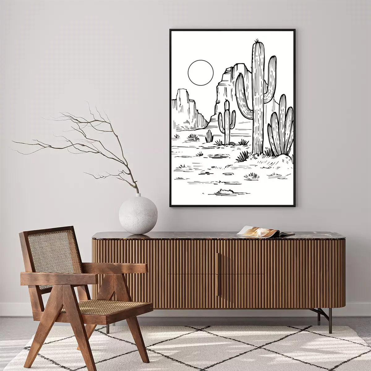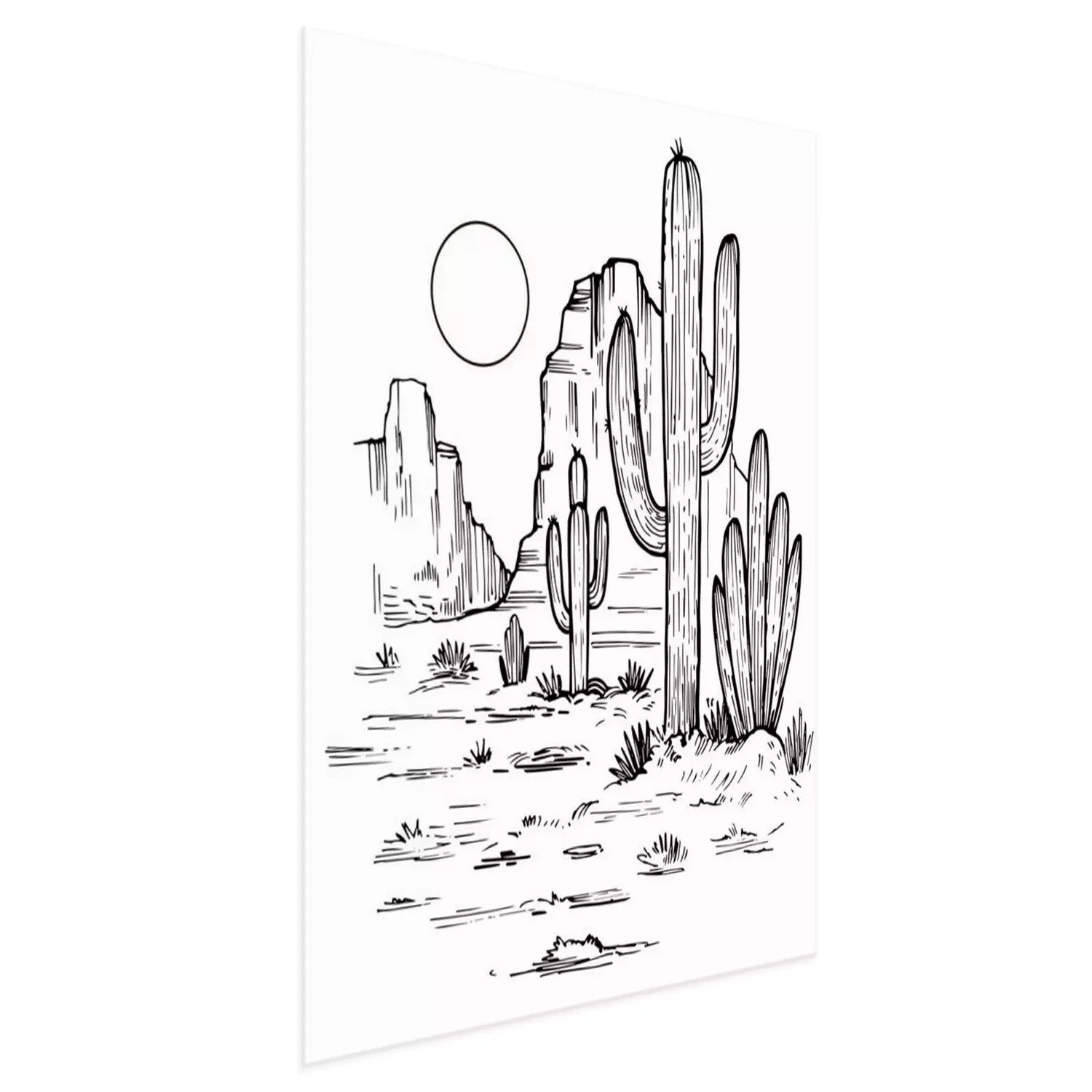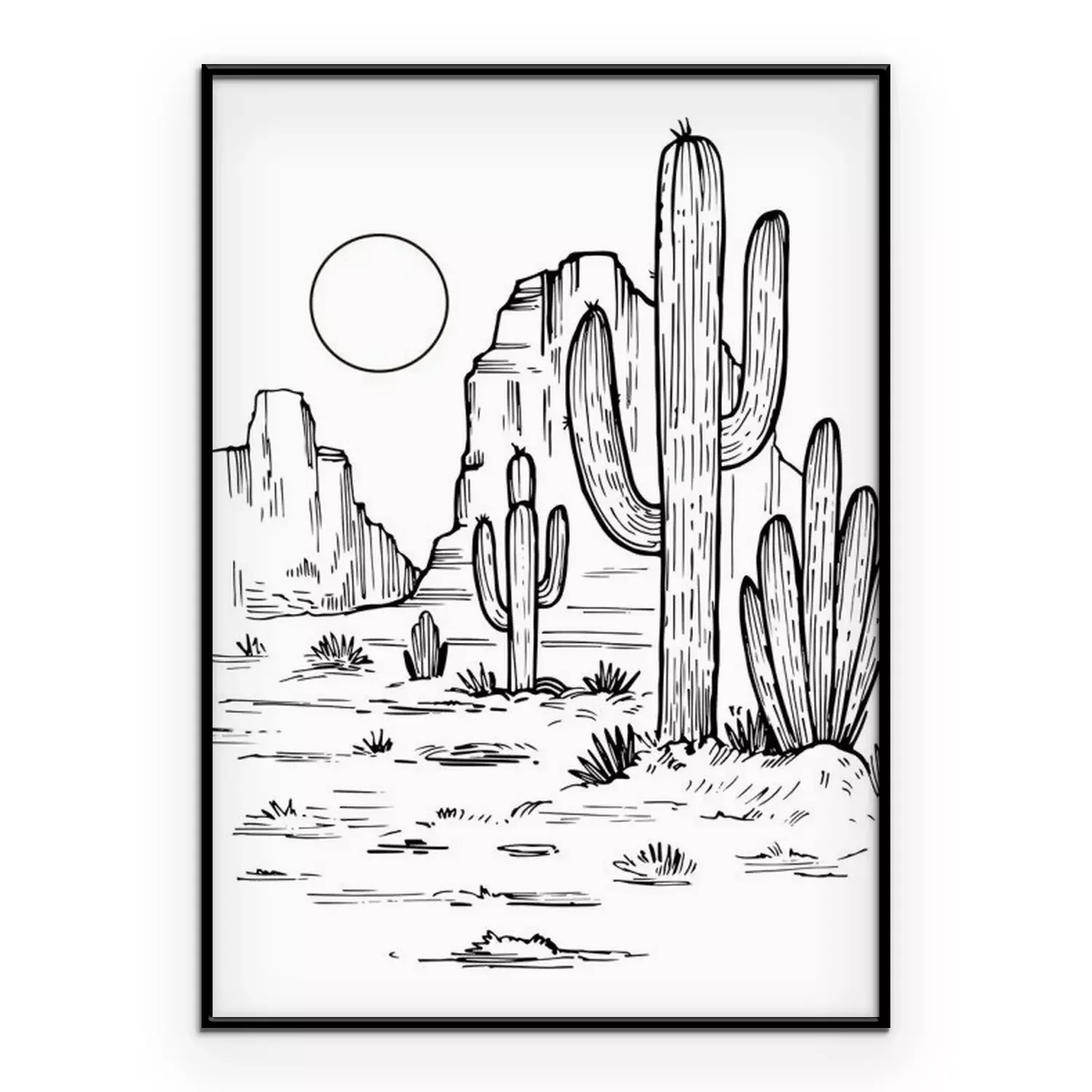 Poster : Sketch of the desert of America with cacti. Prairie landscape. Hand drawn vector illustration