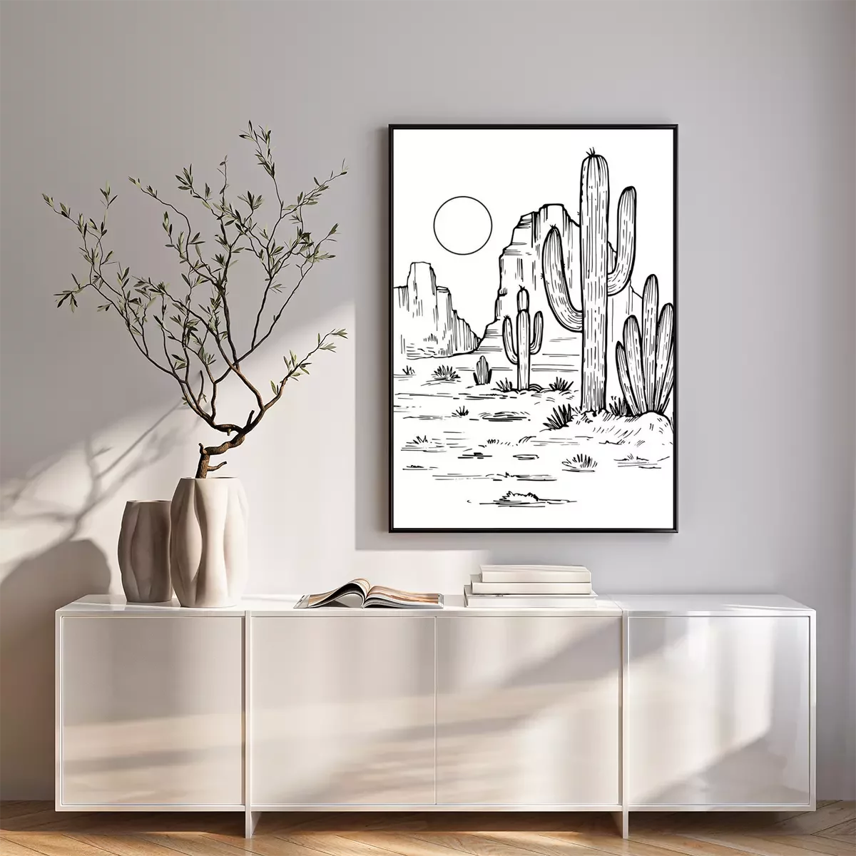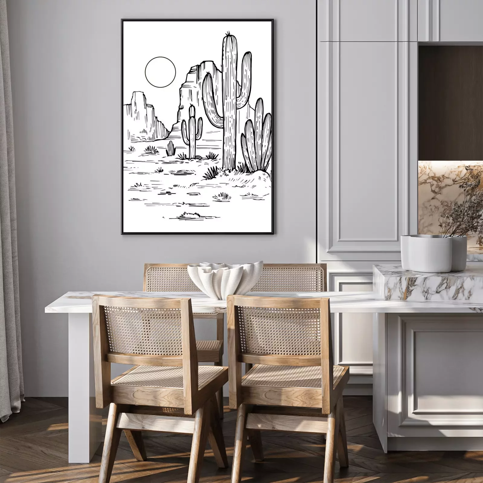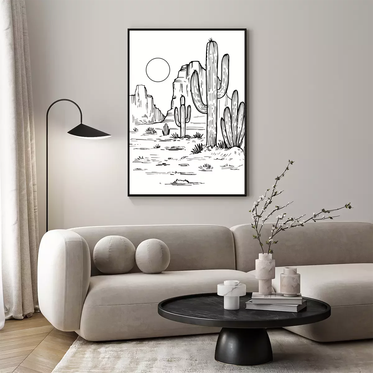 Poster : Sketch of the desert of America with cacti. Prairie landscape. Hand drawn vector illustration