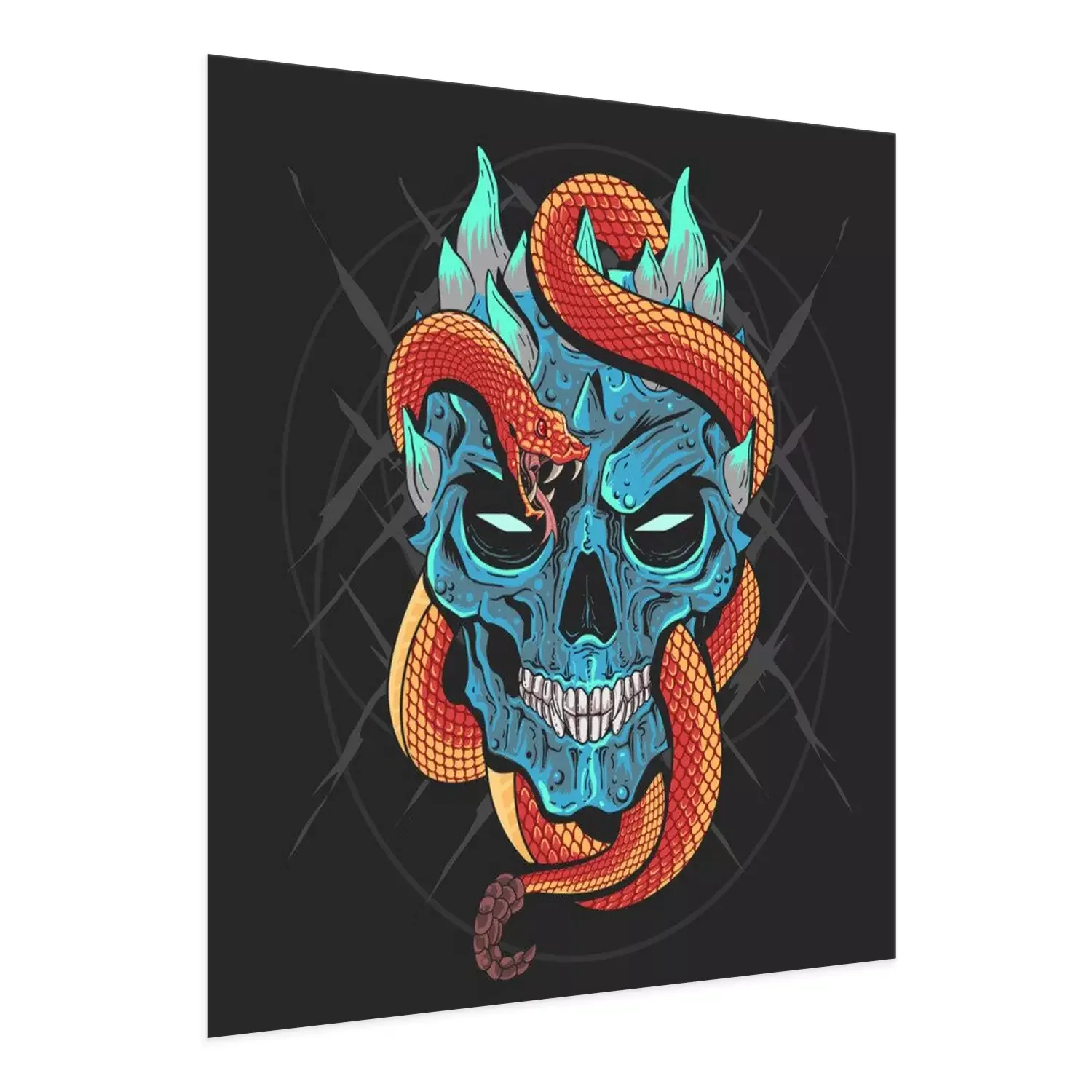 Poster  SKULL HEAD PUNK AND SNAKE ARTWORK DETAIL VECTOR WITH EDITABLE LAYERS GOOD FOR TSHIRT DESIGN AND ELEMENT HOROR AND