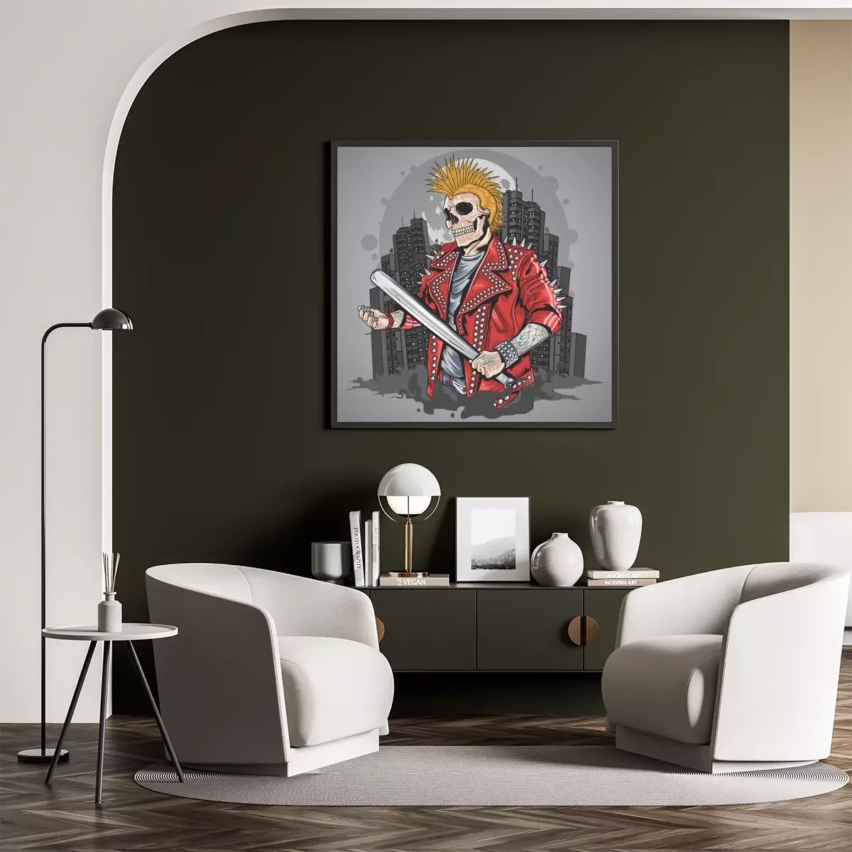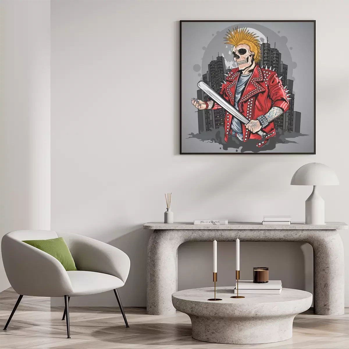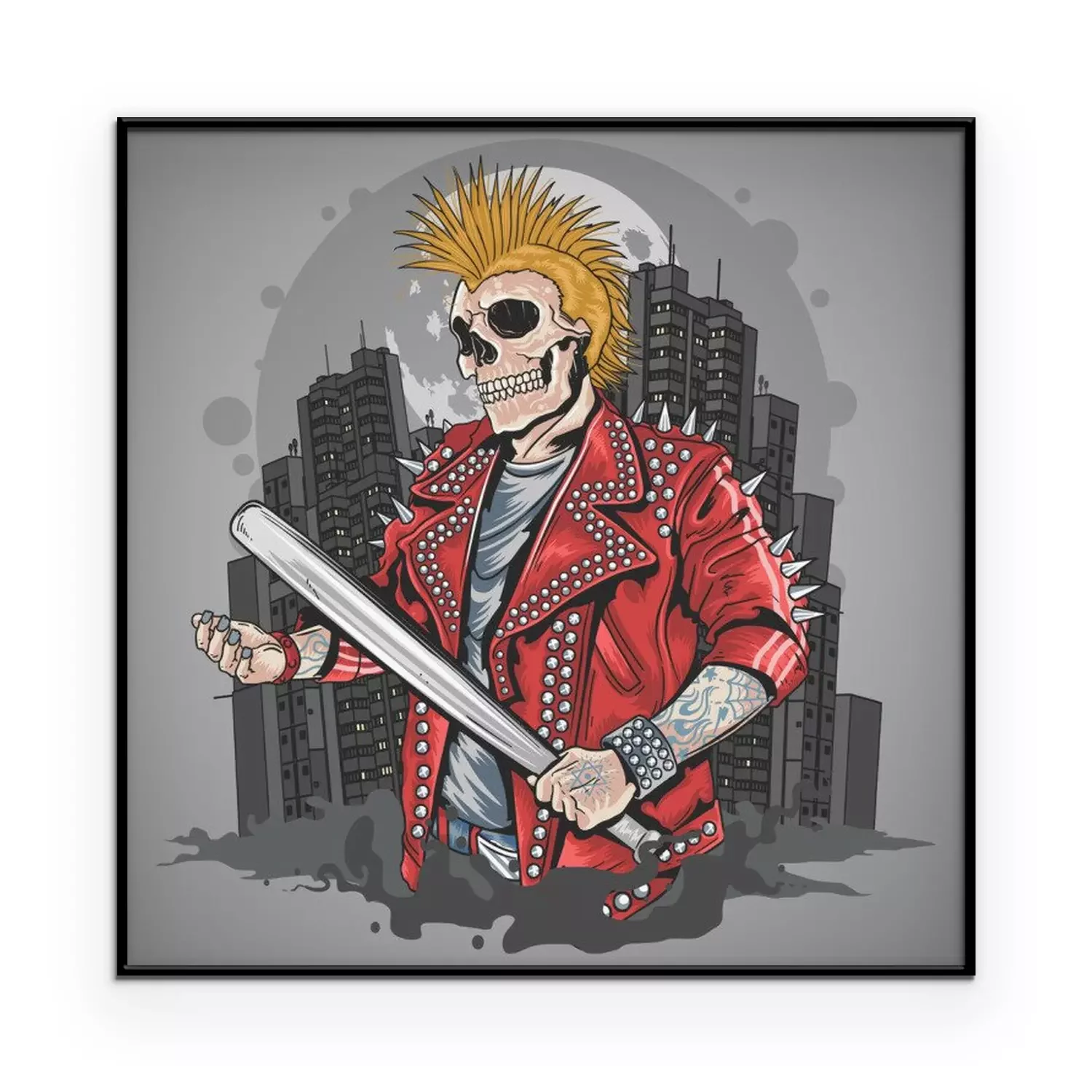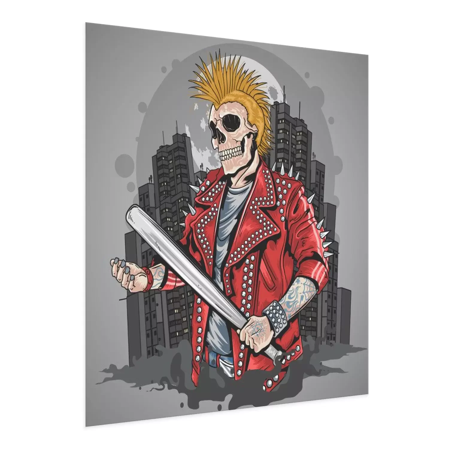 Poster  SKULL PUNK GANGSTER WITH MOHAWK HAIR ARTWORK