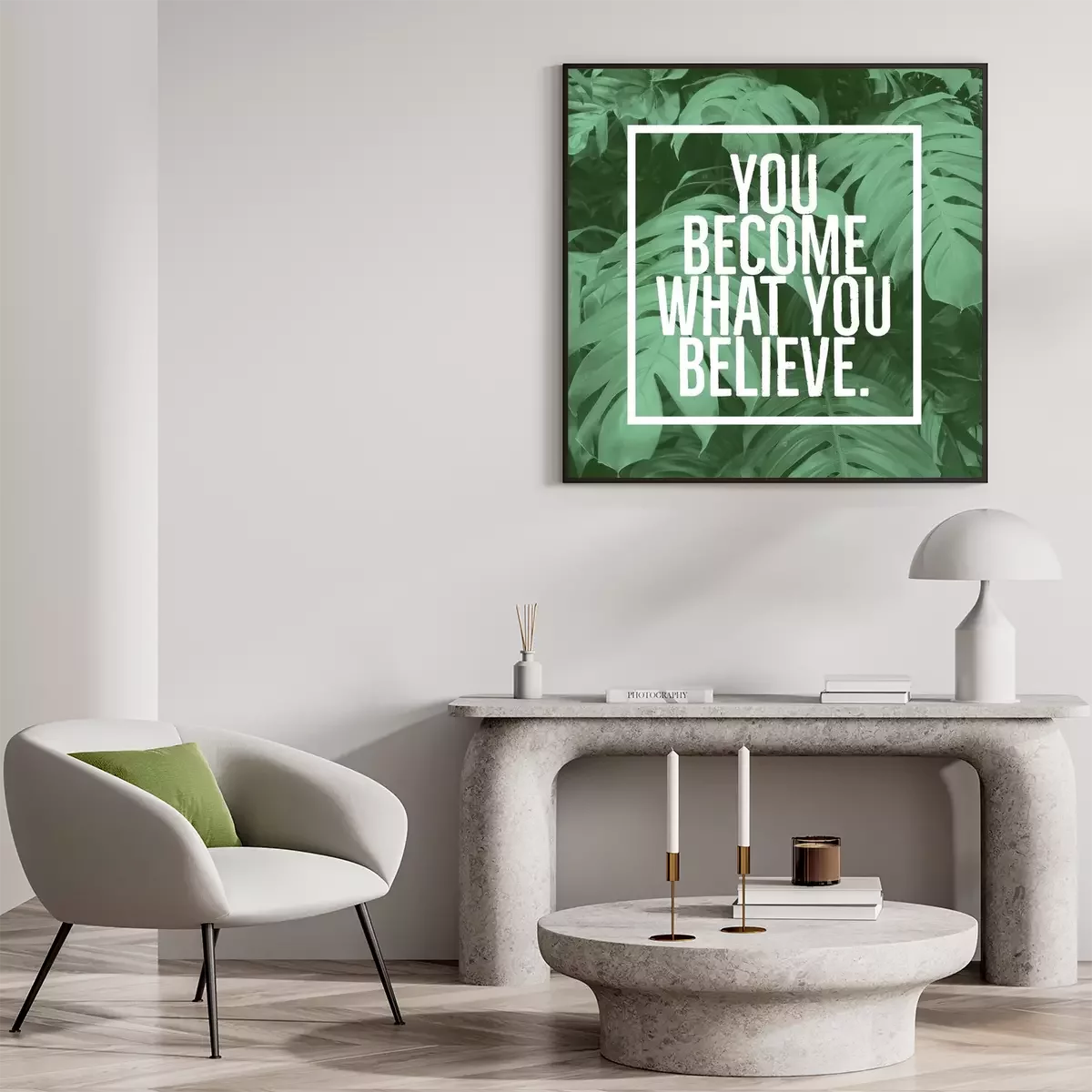 Poster : Slogan motivant sur le fond des feuilles
