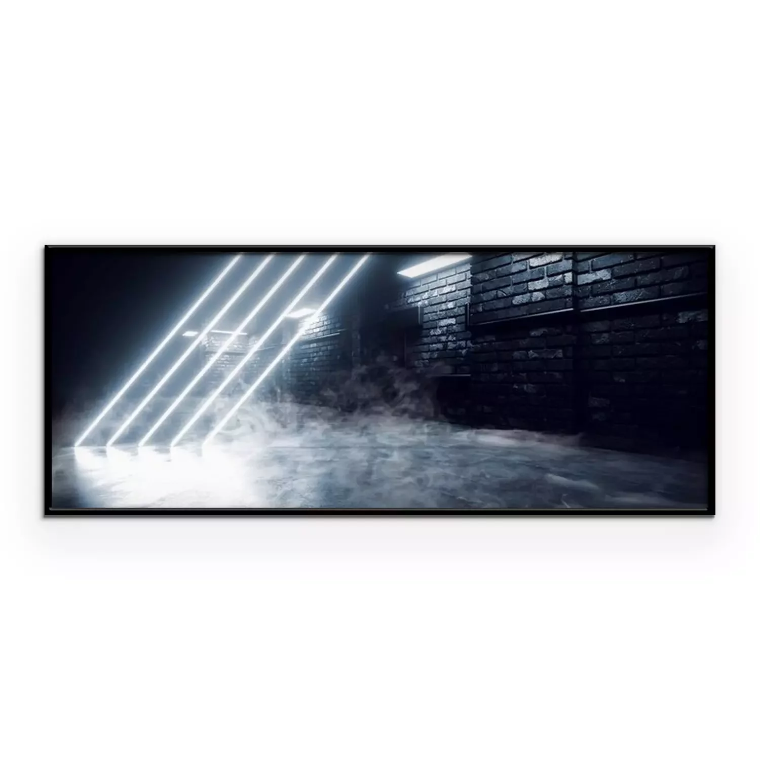 Poster  Smoke Modern Neon Laser Futuristic Sci Fi Brick Garage Grunge Concrete Cement Basement Tunnel Corridor Alien Parking Showroom Night Cyber 3D Rendering