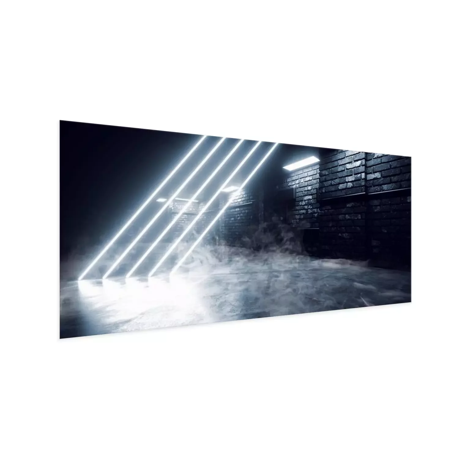 Poster : Smoke Modern Neon Laser Futuristic Sci Fi Brick Garage Grunge Concrete Cement Basement Tunnel Corridor Alien Parking Showroom Night Cyber 3D Rendering