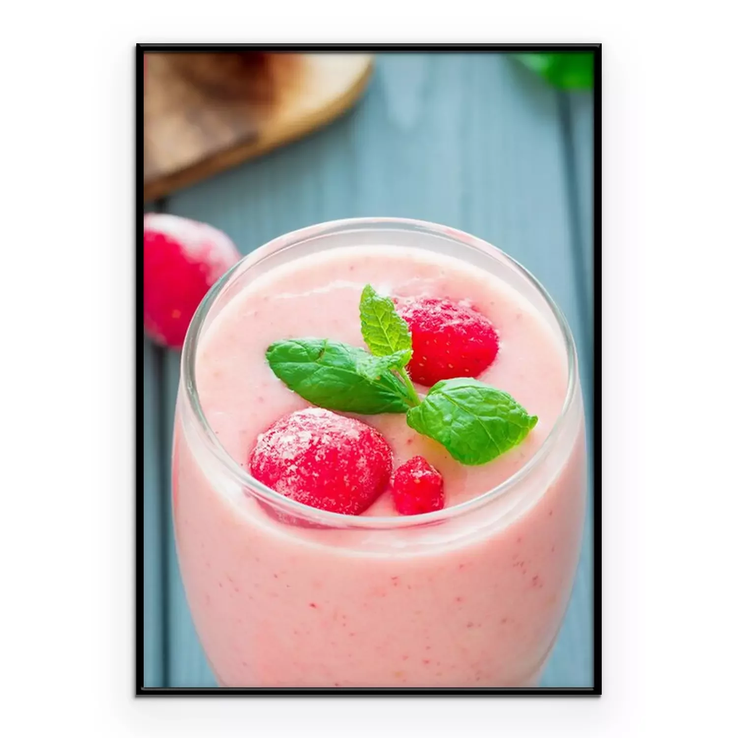 Poster : Smoothie de baies roses avec fraises et menthe surgelées