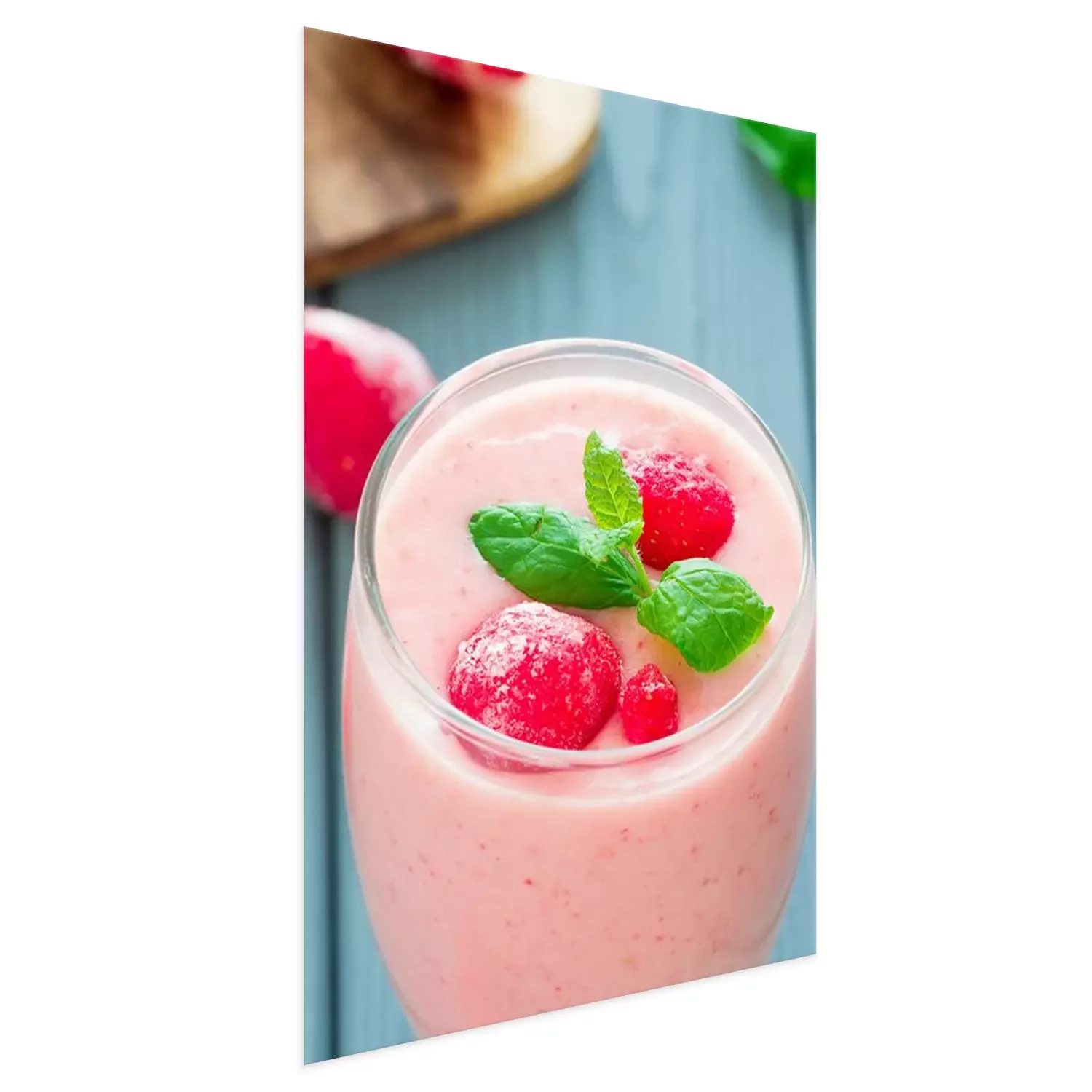 Poster  Smoothie de baies roses avec fraises et menthe surgelées