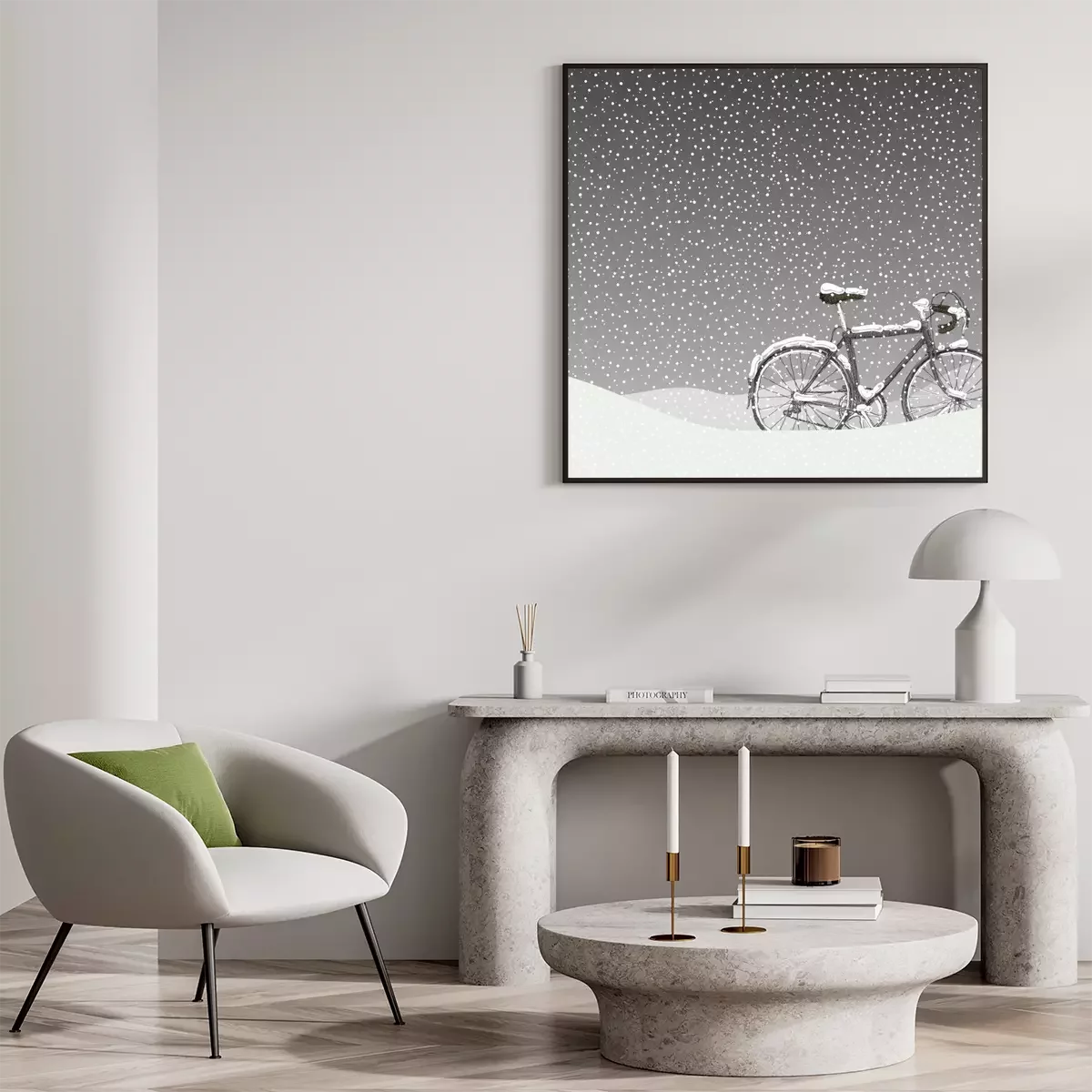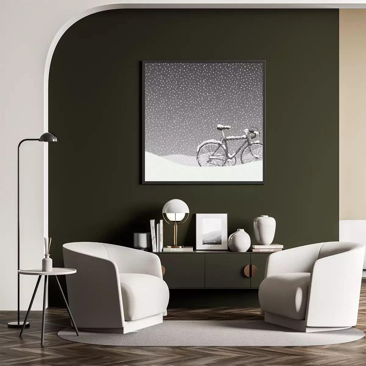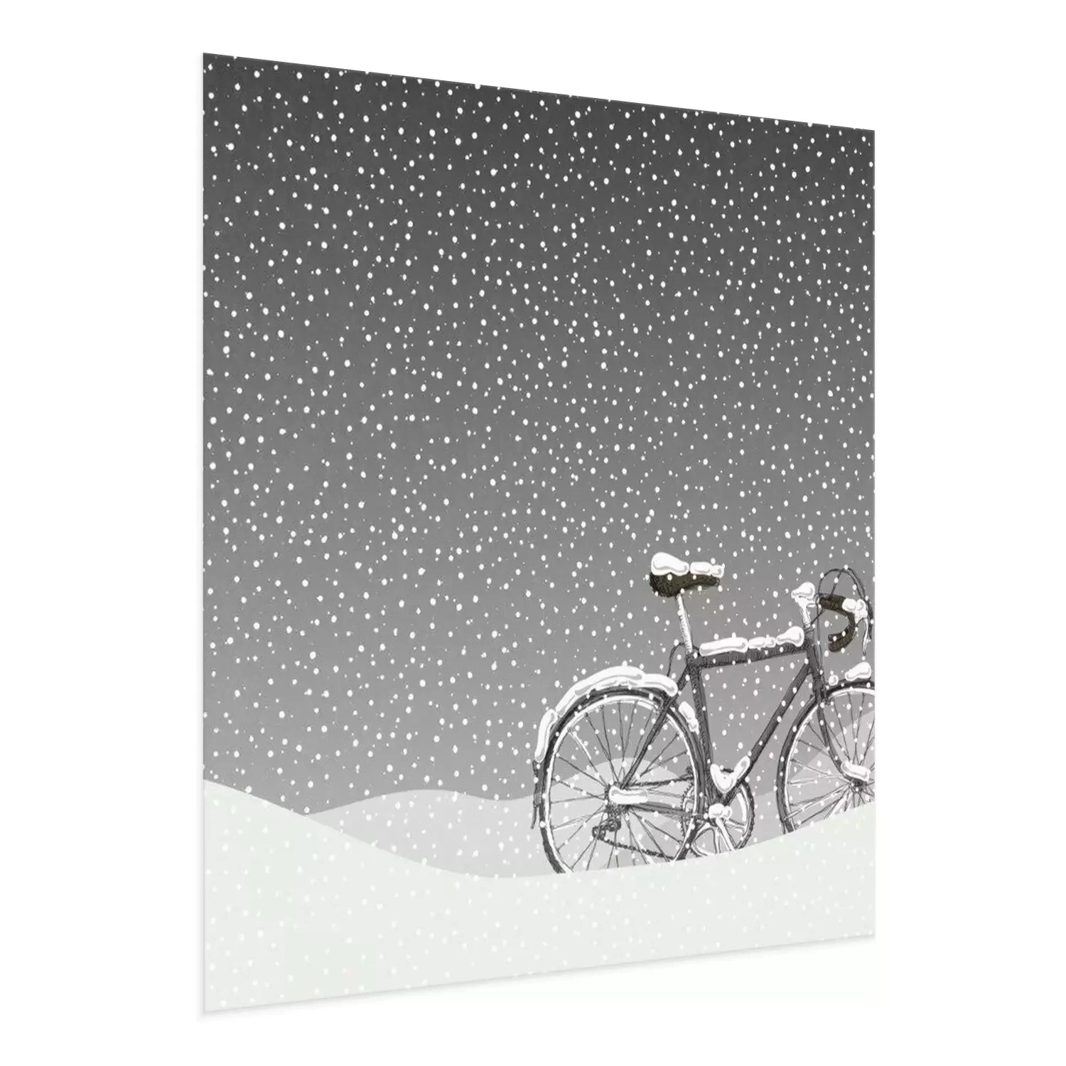 Poster  Snow Covered Bicycle Illustration, Calm Winter Scene