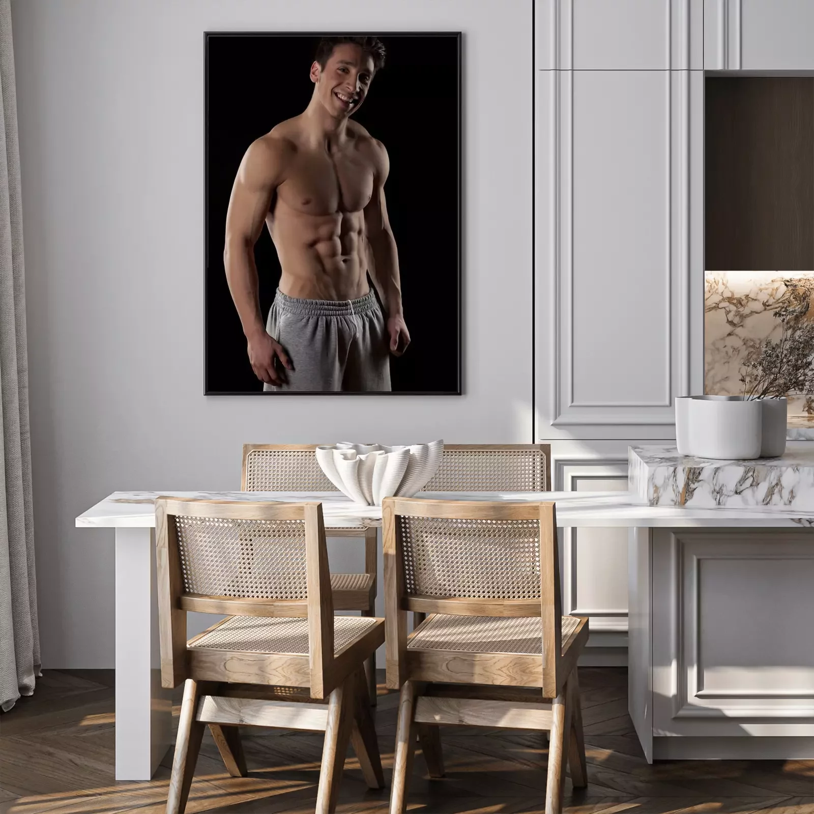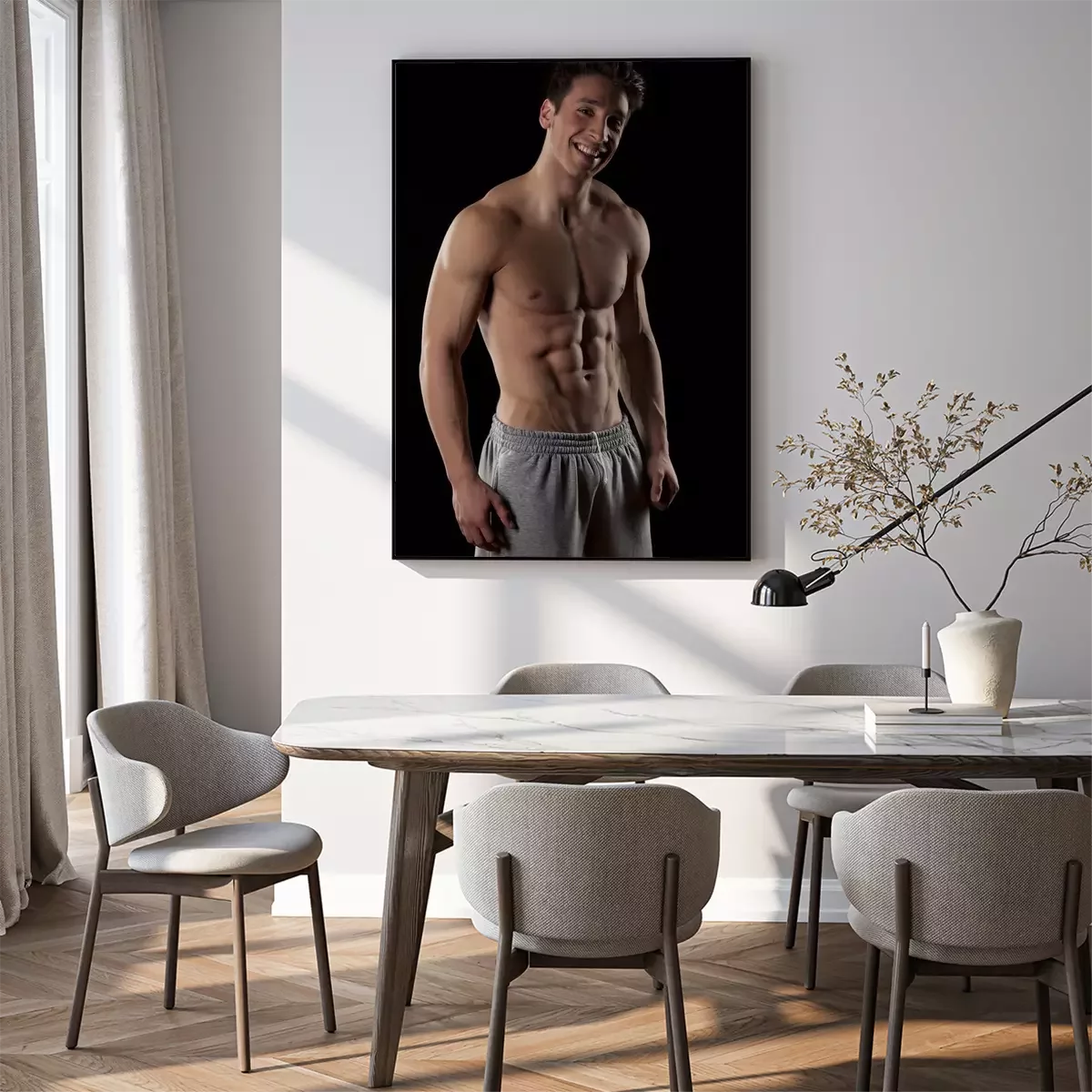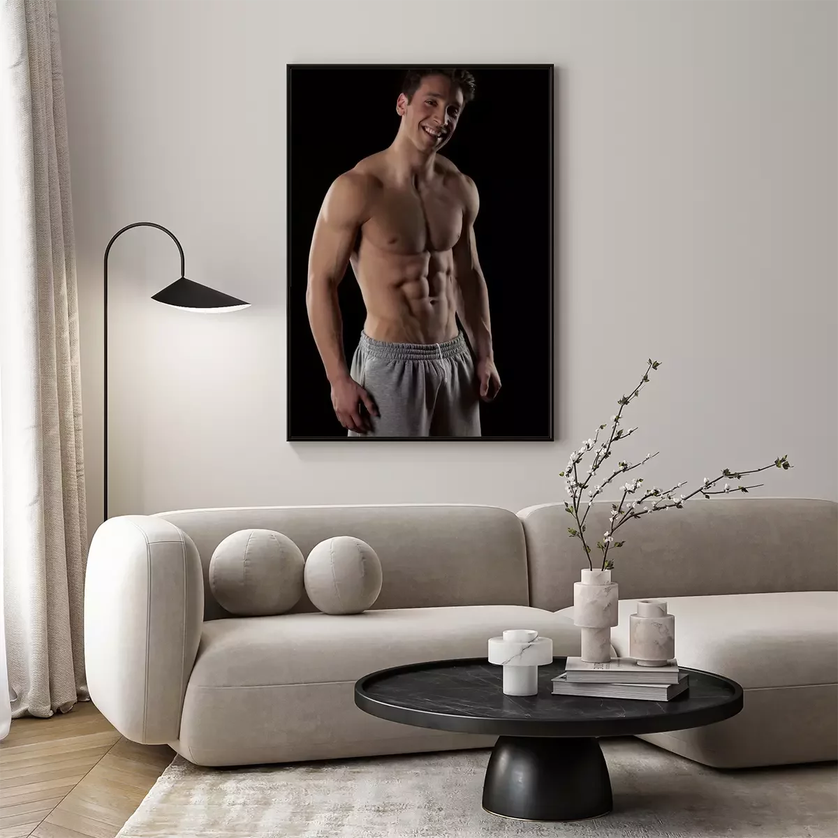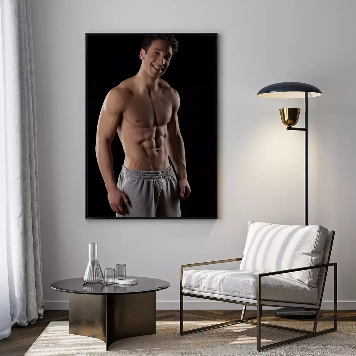 Poster  Sourire, moitié-nu, musculaire, homme, noir, fond