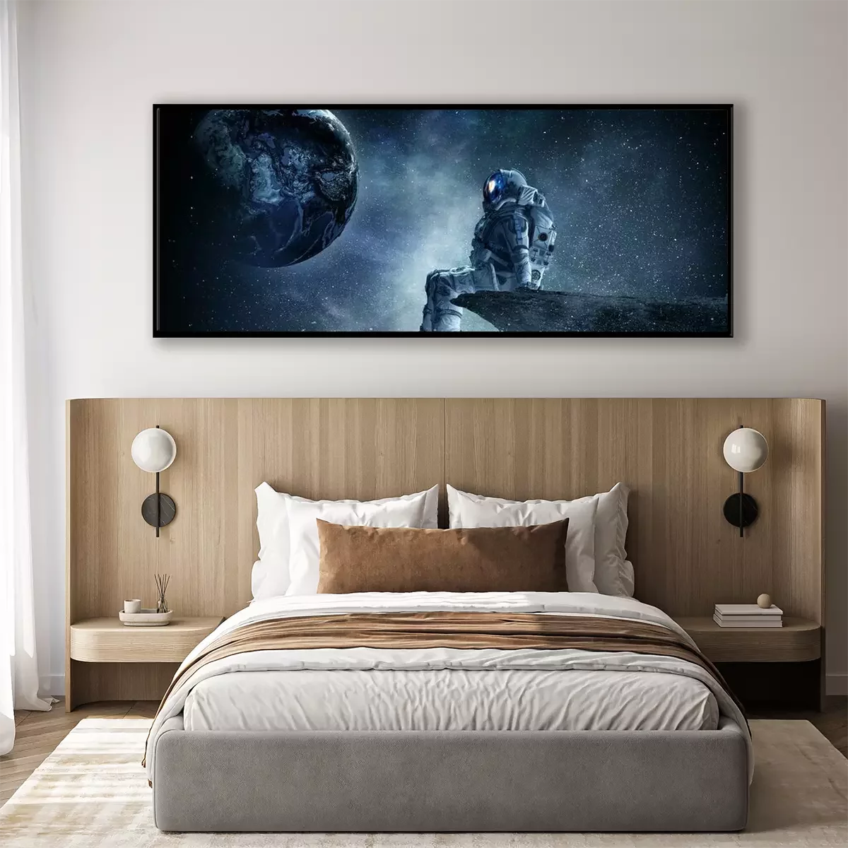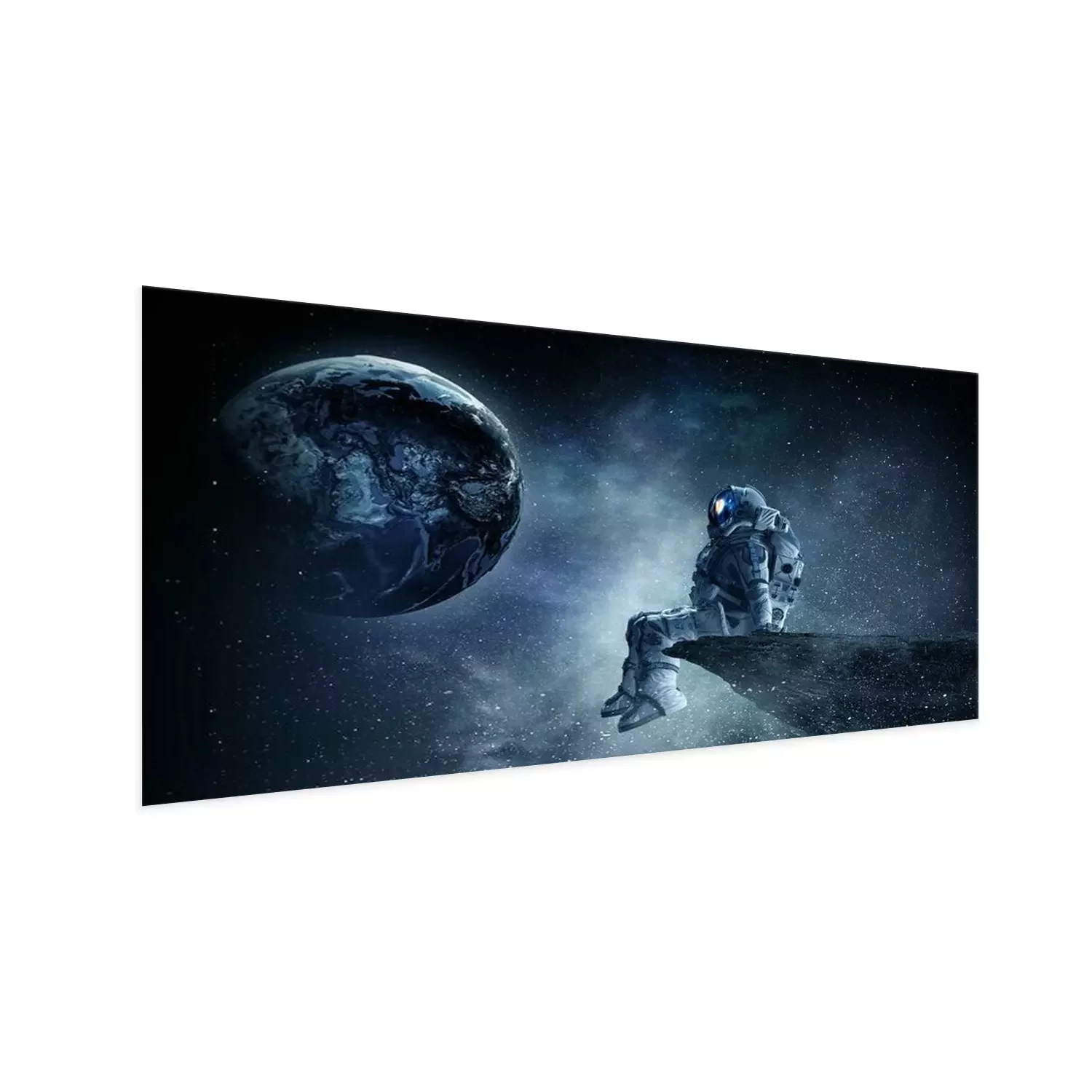Poster : Spaceman sur le bord de la roche. Technique mixte