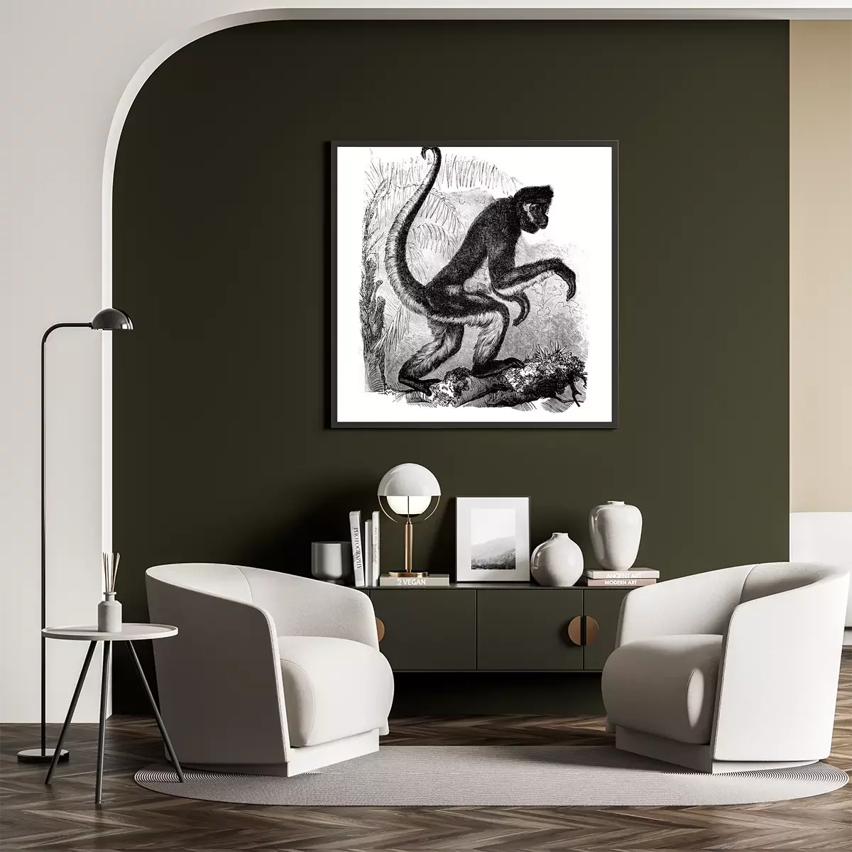 Poster  Spider monkey in the old book Encyclopedic dictionary by A. Granat, vol. 6, S. Petersburg, 1894