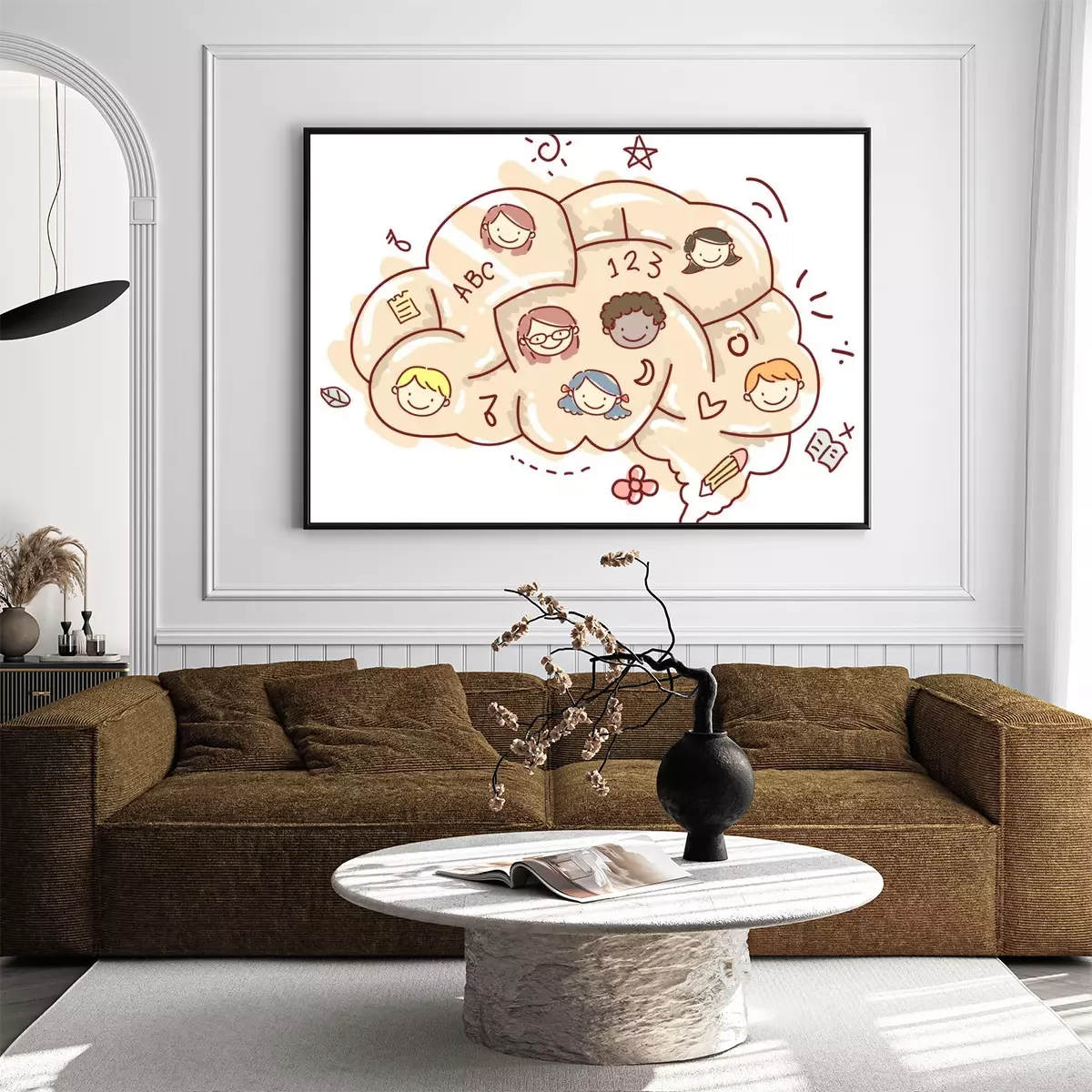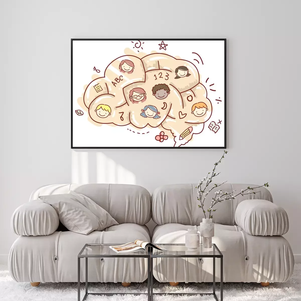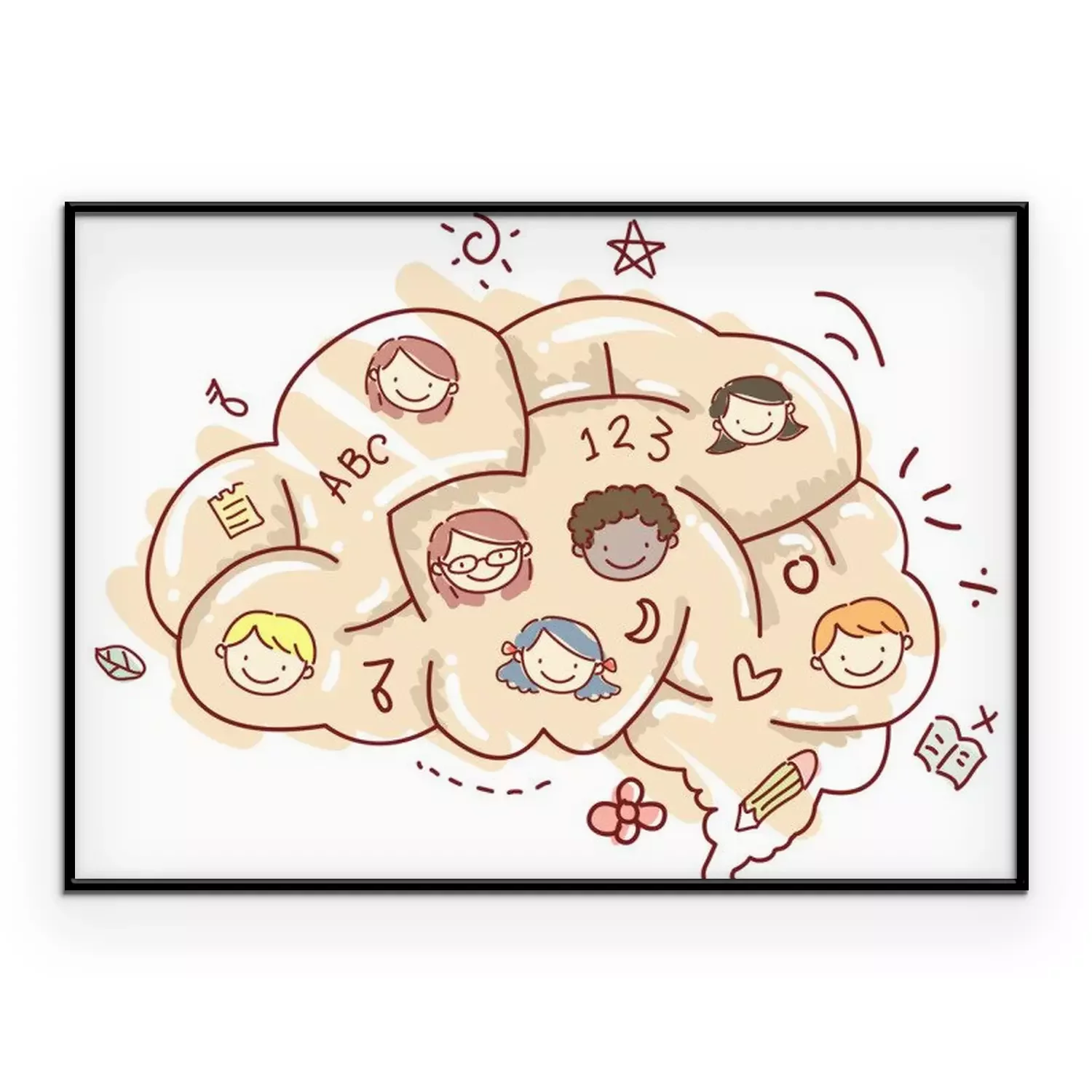 Poster : Stickman Kids Brain Maze Faces Illustration