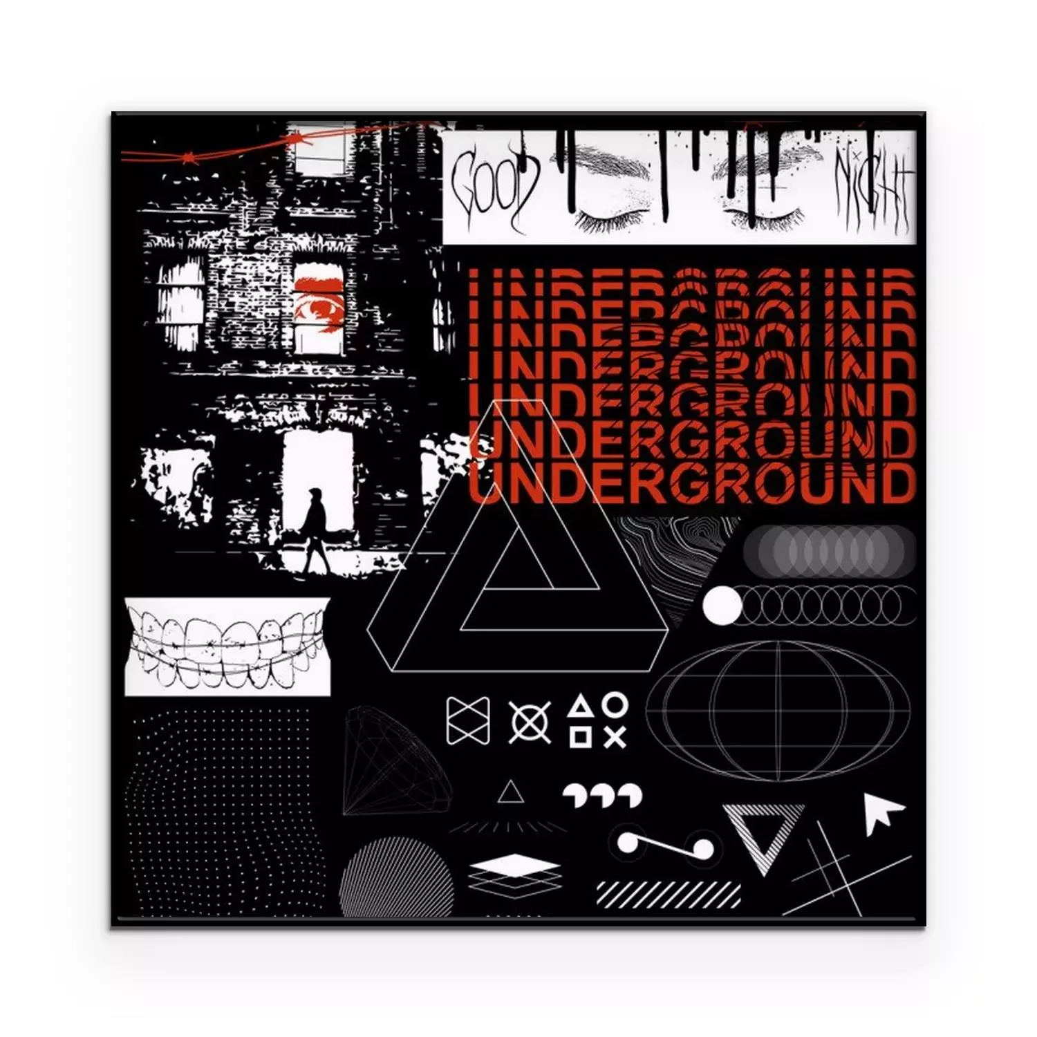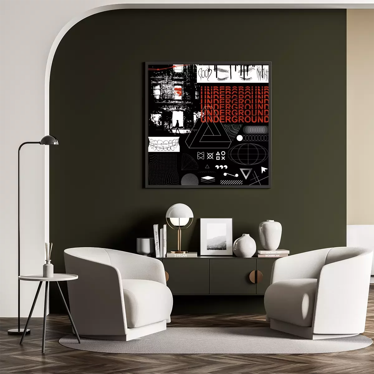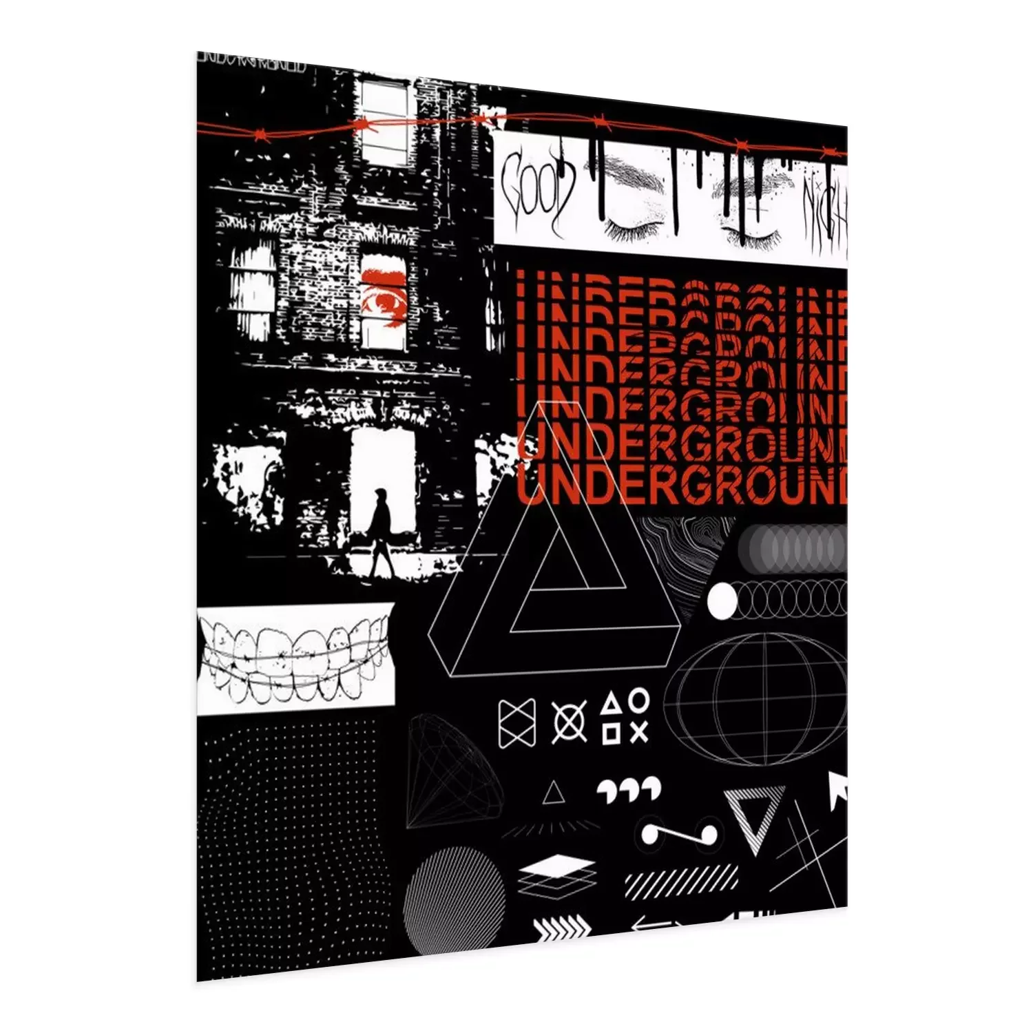 Poster  Stylish design elements, brutalism shapes for t-shirt and merch print. Trendy street design, graphic prints clothing ambigram. Aggressive hip hop elements for evil defiant design. Vector illustration