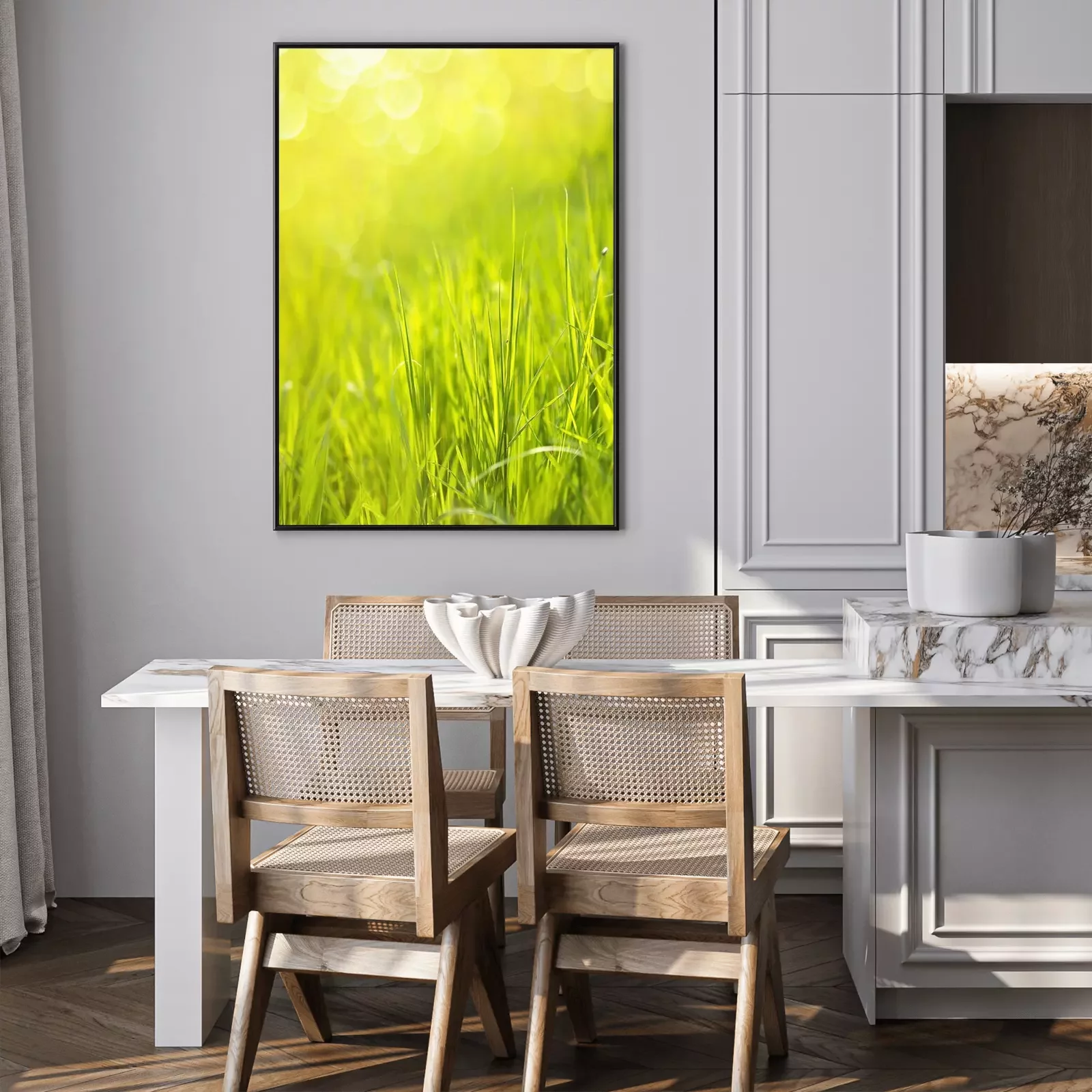 Poster : Sunny spring green grass background with bokeh