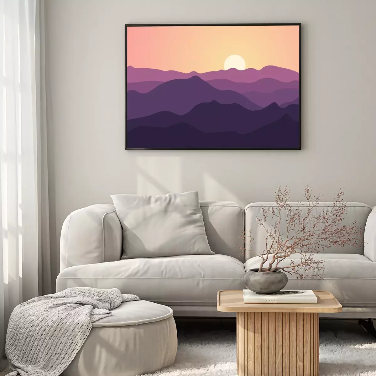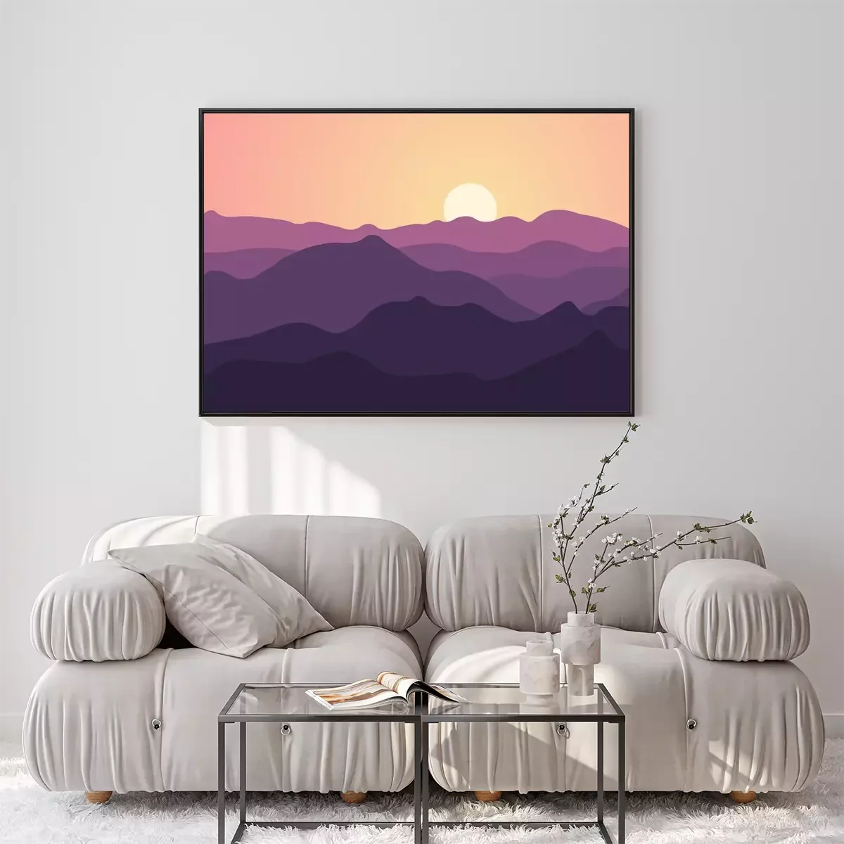 Poster : Sunset in the mountains - Purple mountains - illustration