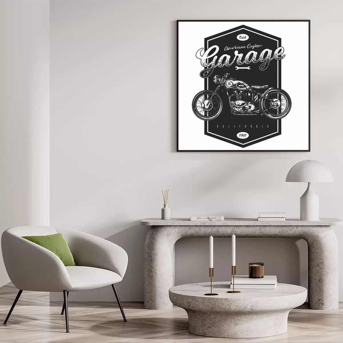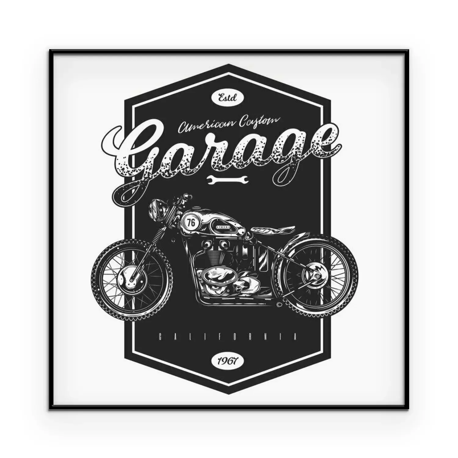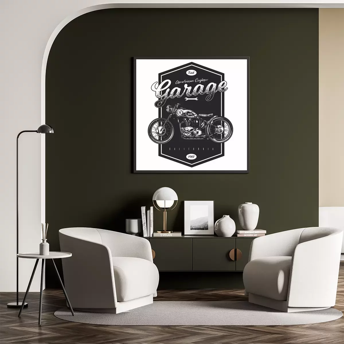 Poster : T-shirt or poster design with an illustration of an old motorcycle. Design with text composition on light and dark background.