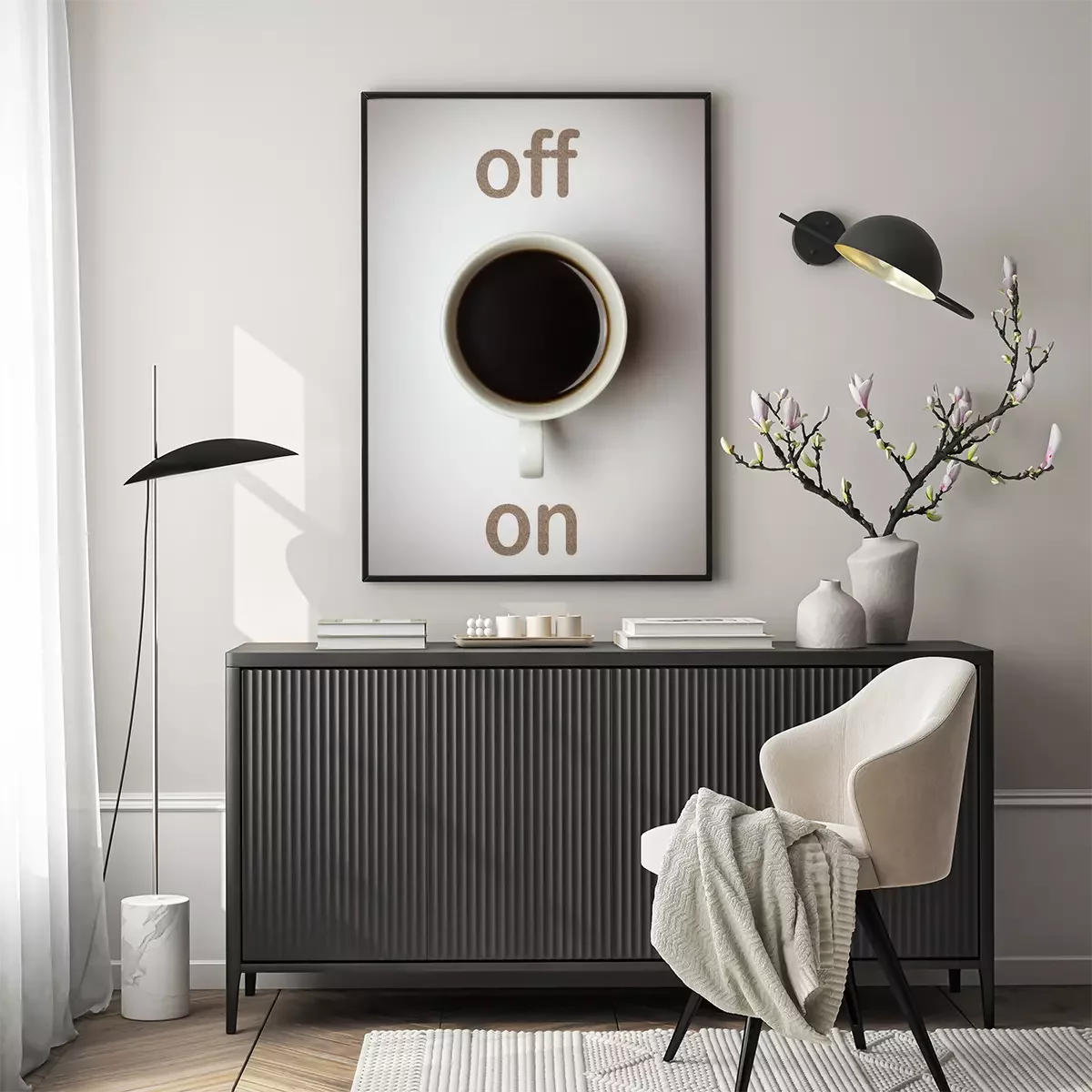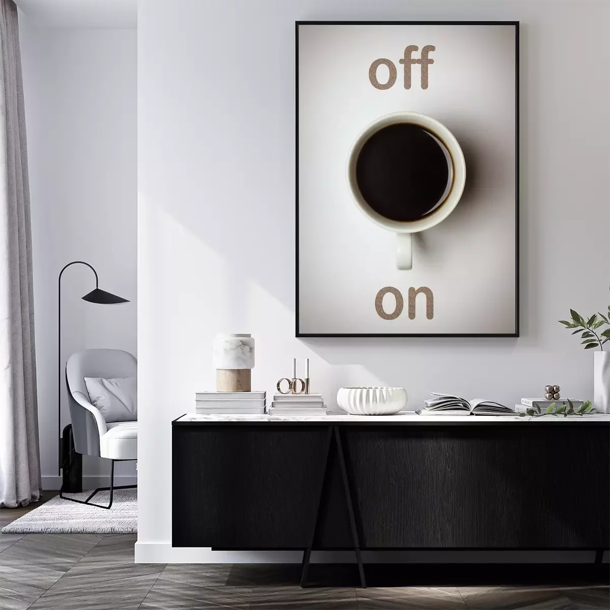 Poster : Tasse de café noir et texte
