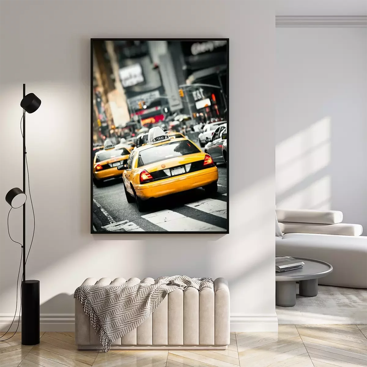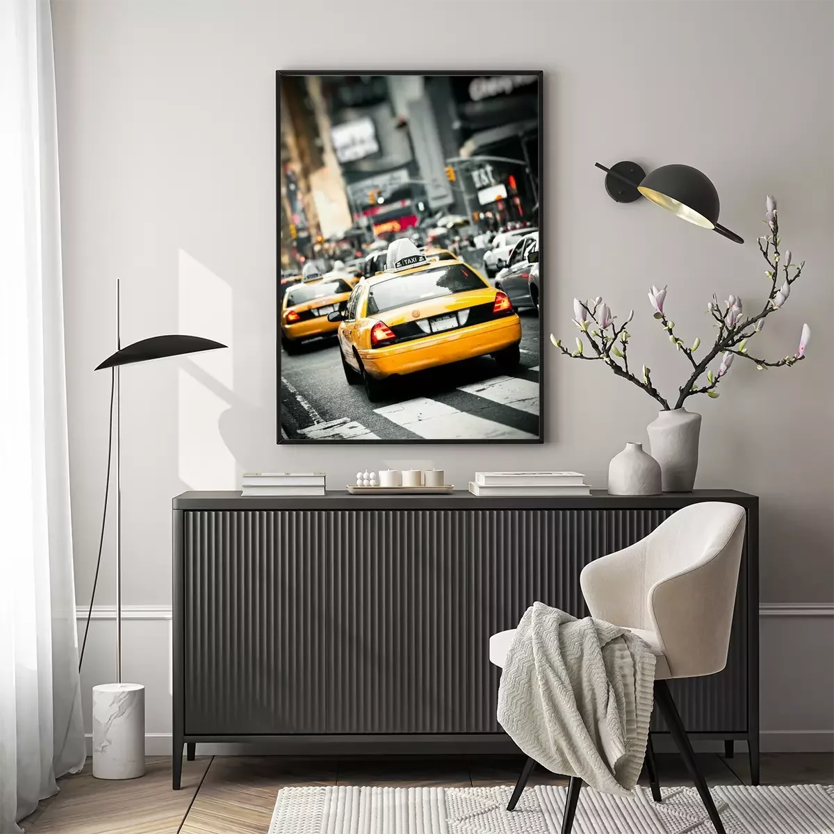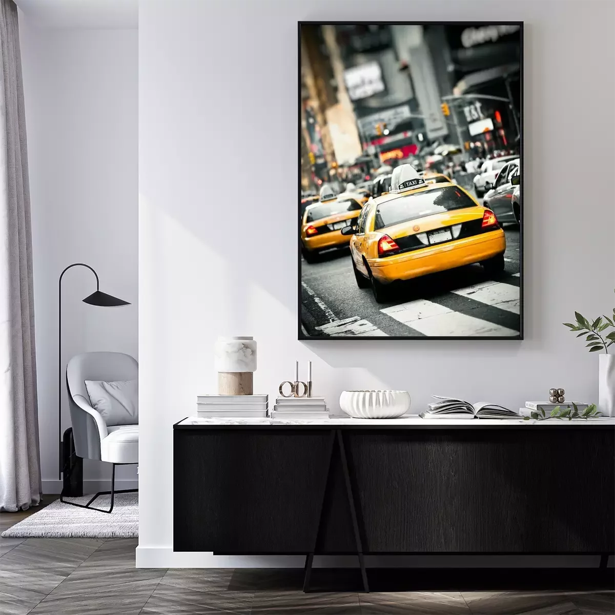 Poster : Taxis et publicités en arrière-plan